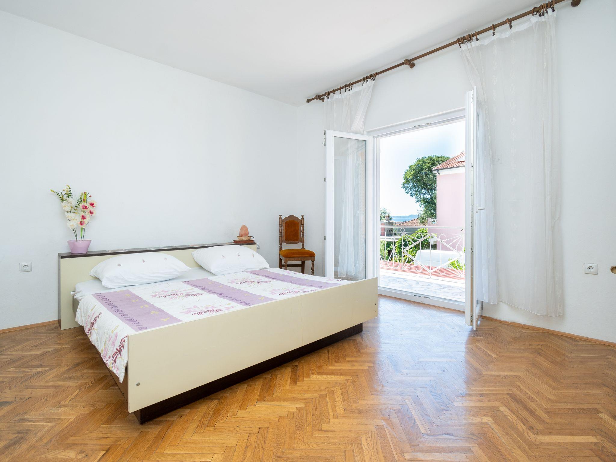 Ferienwohnung bietet Platz für 6 Gäste. Die Betten sind in Schlafzimmern, die es 3 gibt, innerhalb einer Gesamtfläche von 92m2, angeordnet. Die Gäste haben eine eigene Terrasse zur Verfügung, auf der sie in warmen Sommernächten genießen können. Das Apartment bietet Meerblick. Es ist erlaubt, Speisen auf dem Gemeinschafts-Grill vorzubereiten. IM PREIS INBEGRIFFEN: Kurtaxe, Endreinigung, Parkplatz, Internet, Bügeleisen, Bügelbrett, Föhn. Die Verfügbarkeit zusätzlicher Dienstleistungen in Ihrem reservierten Termin und die Preise derselben (falls nicht aufgeführt) müssen im Voraus überprüft werden. Zusätzliche Dienstleistungen die in der Zahlungsaufforderung nicht aufgeführt sind werden direkt beim Vermieter bezahlt, angenommen der Gast nutzt auch diese. Ermäßigung auf den Grundpreis: Gratistag 14=13 (bei einem Aufenthalt von 14 Tagen oder mehr erhalten Sie einen Gratistag für den Aufenthalt bis 31.12.26).