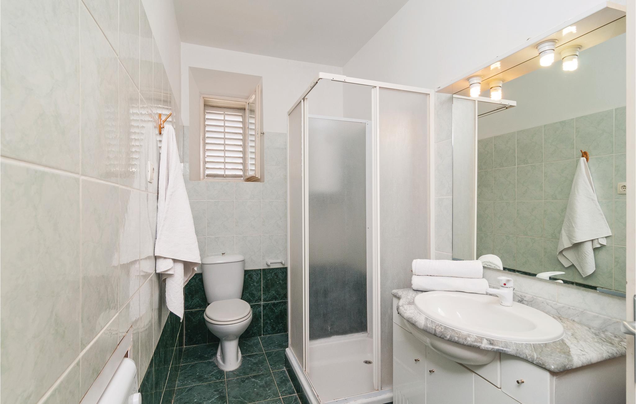 Badrum (nr. 1) - WC: Varmt och kallt vatten. Dusch
