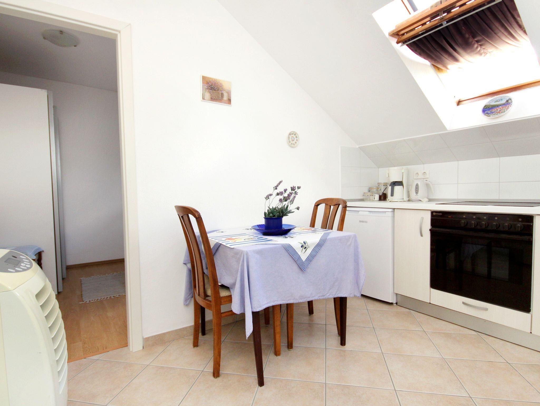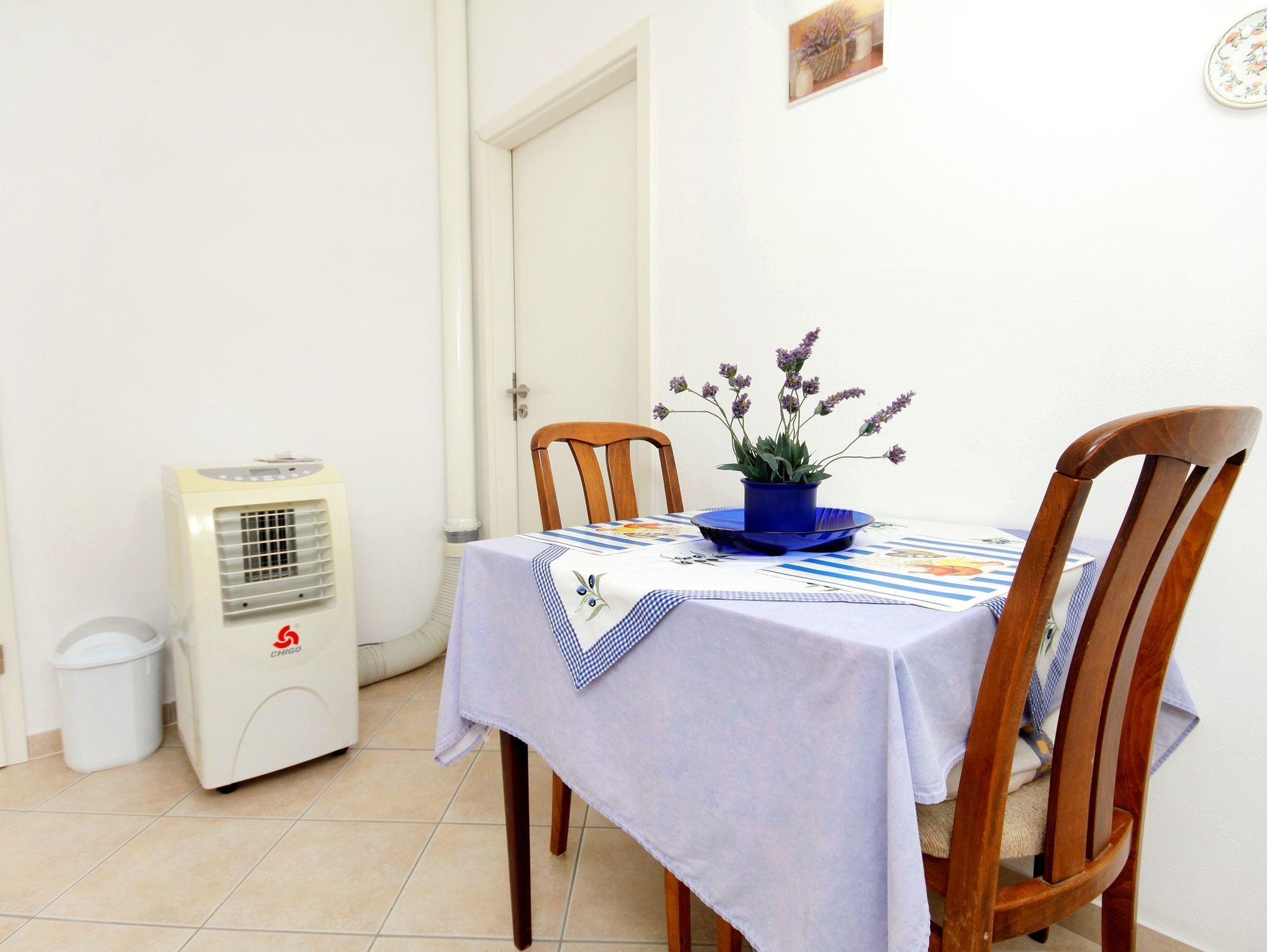 Ferienwohnung bietet Platz für 2 Gäste. Die Betten sind in Schlafzimmern, die es 1 gibt, innerhalb einer Gesamtfläche von 27m2, angeordnet. Die Gäste haben eine eigene Terrasse zur Verfügung, auf der sie in warmen Sommernächten genießen können. Das Apartment bietet Meerblick. Es ist erlaubt, Speisen auf dem Gemeinschafts-Grill vorzubereiten. Durch die Terrasse der gebuchten Unterkunftseinheit gehen auch andere Gäste oder Vermieter. Unterkunftseinheit hat Räume, die von dem Rest der Einheit abgetrennt werden. IM PREIS INBEGRIFFEN: Kurtaxe, Endreinigung, Klimatisierung, Parkplatz, Internet, Bootsanlegeplatz, Kinderbett, Bügeleisen, Bügelbrett, Föhn, Sonnenschirm, Liegestühle. UNVERBINDLICHE ZUSÄTZLICHE KOSTEN: Wäschewaschen (5,00 € Waschen). Die Verfügbarkeit zusätzlicher Dienstleistungen in Ihrem reservierten Termin und die Preise derselben (falls nicht aufgeführt) müssen im Voraus überprüft werden. Zusätzliche Dienstleistungen die in der Zahlungsaufforderung nicht aufgeführt sind werden direkt beim Vermieter bezahlt, angenommen der Gast nutzt auch diese.