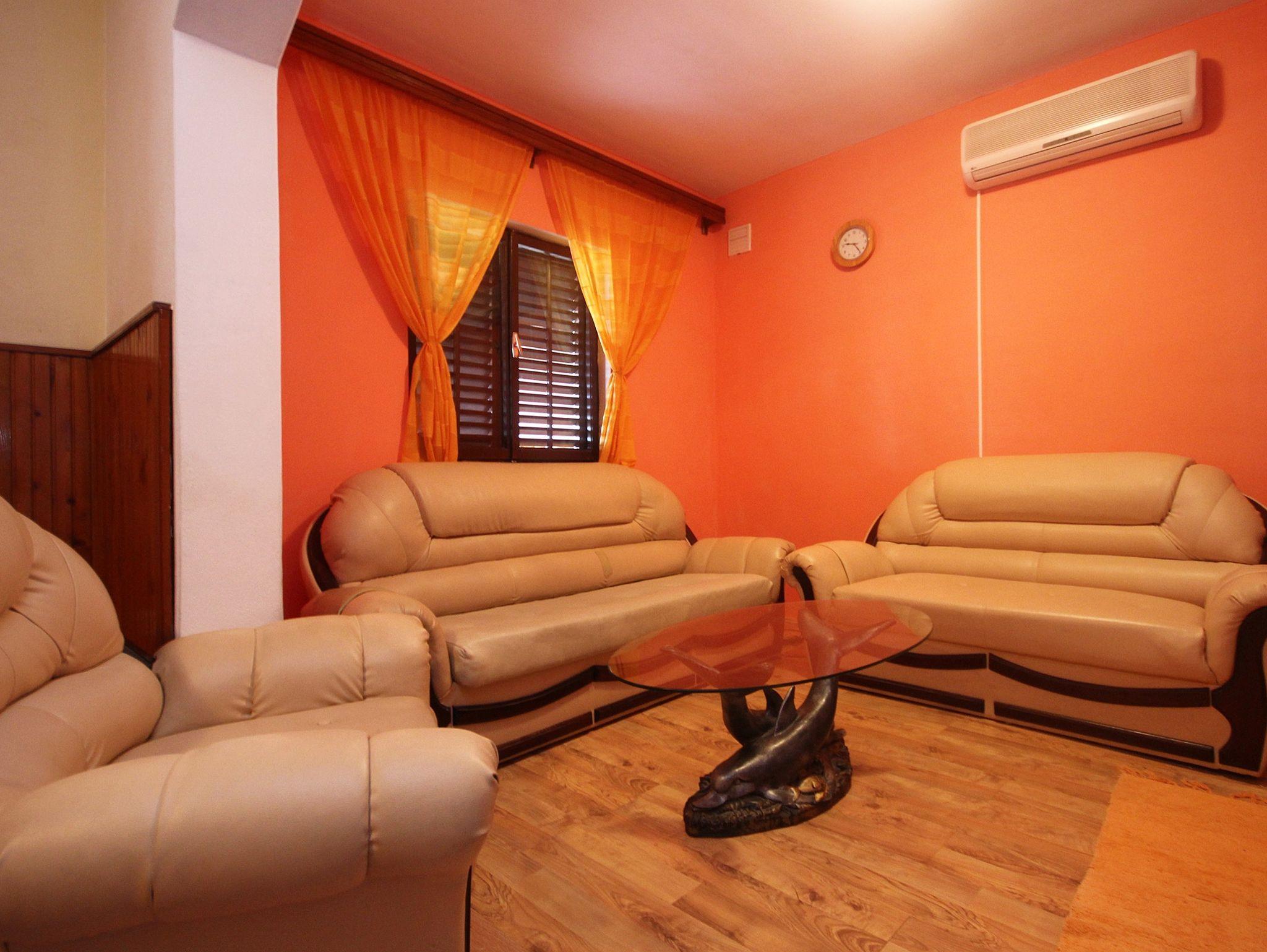 Ferienwohnung bietet Platz für 7 Gäste. Die Betten sind in Schlafzimmern, die es 3 gibt, und in Wohnzimmer, innerhalb einer Gesamtfläche von 85m2, angeordnet. Die Gäste haben eine eigene Terrasse zur Verfügung, auf der sie in warmen Sommernächten genießen können. Das Apartment bietet Meerblick. Es ist erlaubt, Speisen auf dem Gemeinschafts-Grill vorzubereiten. IM PREIS INBEGRIFFEN: Kurtaxe, Endreinigung, Klimatisierung, Parkplatz, Internet, Bootsanlegeplatz, Bügeleisen, Bügelbrett, Föhn, tragbarer Grill. VERBINDLICHE ZUSÄTZLICHE KOSTEN: Aufzahlung für Kurzaufenthalte (prozentualer Zuschlag pro Nächtigungsanzahl: 30% - 1, 20% - 2, 10% - 3). UNVERBINDLICHE ZUSÄTZLICHE KOSTEN: Boot (50,00 € pro Nacht). Die Verfügbarkeit zusätzlicher Dienstleistungen in Ihrem reservierten Termin und die Preise derselben (falls nicht aufgeführt) müssen im Voraus überprüft werden. Zusätzliche Dienstleistungen die in der Zahlungsaufforderung nicht aufgeführt sind werden direkt beim Vermieter bezahlt, angenommen der Gast nutzt auch diese.