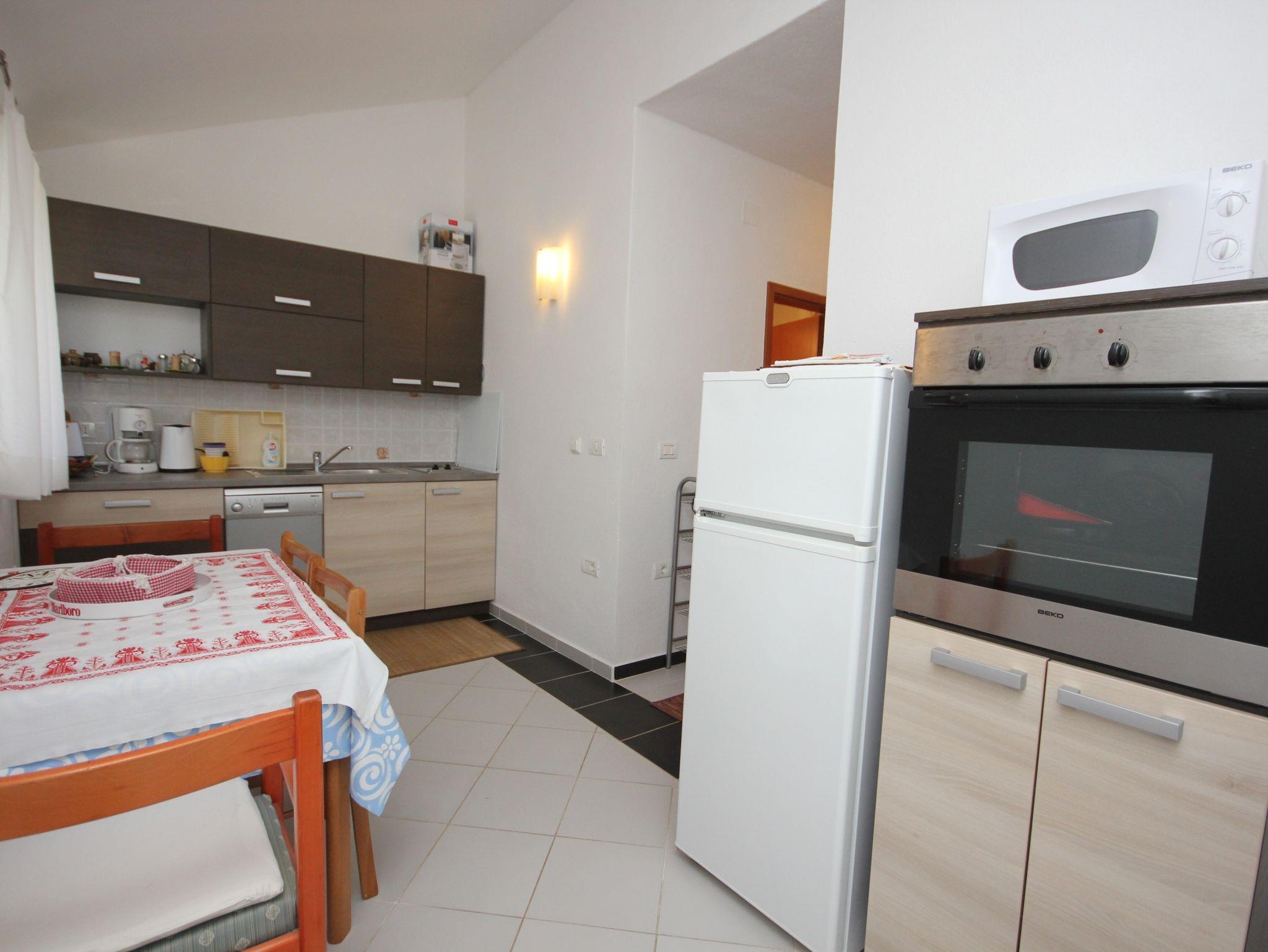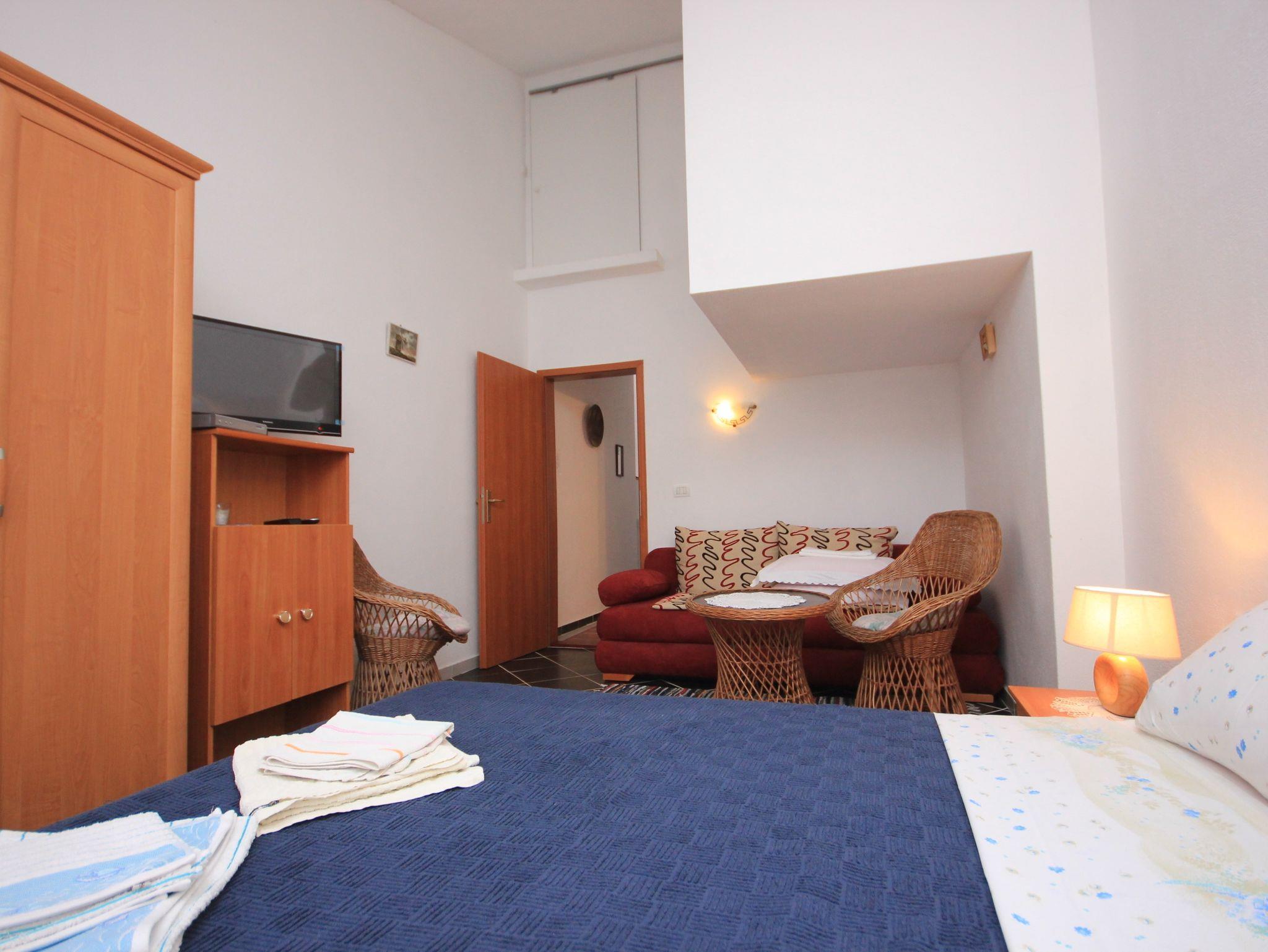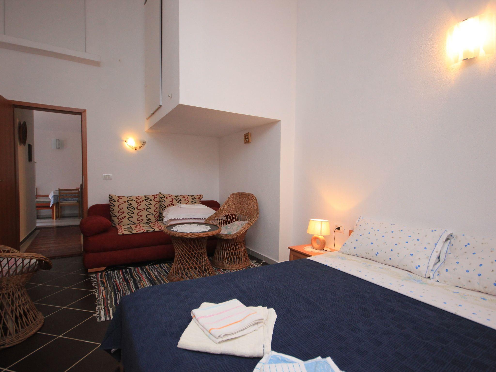 Ferienwohnung bietet Platz für 3 Gäste. Die Betten sind in Schlafzimmern, die es 1 gibt, innerhalb einer Gesamtfläche von 32m2, angeordnet. Die Gäste haben einen eigenen Balkon zur Verfügung, auf der sie in warmen Sommernächten genießen können. Das Apartment bietet Meerblick. Es ist erlaubt, Speisen auf dem Gemeinschafts-Grill vorzubereiten. In der Unterkunftseinheit besteht die Möglichkeit des Mitbringens von Haustieren gegen Aufpreis. IM PREIS INBEGRIFFEN: Kurtaxe, Endreinigung, Klimatisierung, Parkplatz, Internet, Kinderbett, Bügeleisen, Bügelbrett, Föhn. UNVERBINDLICHE ZUSÄTZLICHE KOSTEN: Zentralheizung (10,00 € pro Nacht), Wäschewaschen (8,00 € Waschen), Bootsanlegeplatz (10,00 € pro Nacht), Haustiere (10,00 € pro Nacht), Zusatzbett (5,00 € pro Nacht). Die Verfügbarkeit zusätzlicher Dienstleistungen in Ihrem reservierten Termin und die Preise derselben (falls nicht aufgeführt) müssen im Voraus überprüft werden. Zusätzliche Dienstleistungen die in der Zahlungsaufforderung nicht aufgeführt sind werden direkt beim Vermieter bezahlt, angenommen der Gast nutzt auch diese.