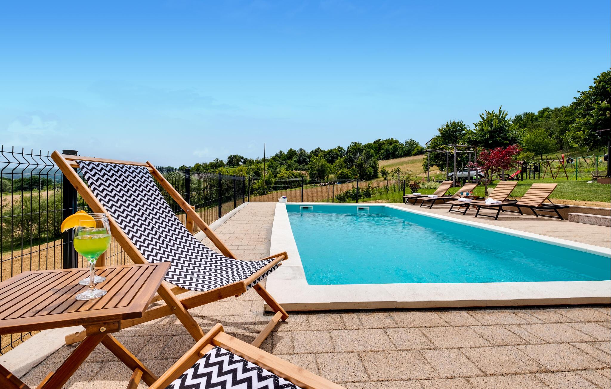 Du kan också njuta av den stora trädgården, som inte bara ger dig en fantastisk utsikt över landskapet, utan också har många underhållnings- och barnfaciliteter för dig, förutom en privat pool.