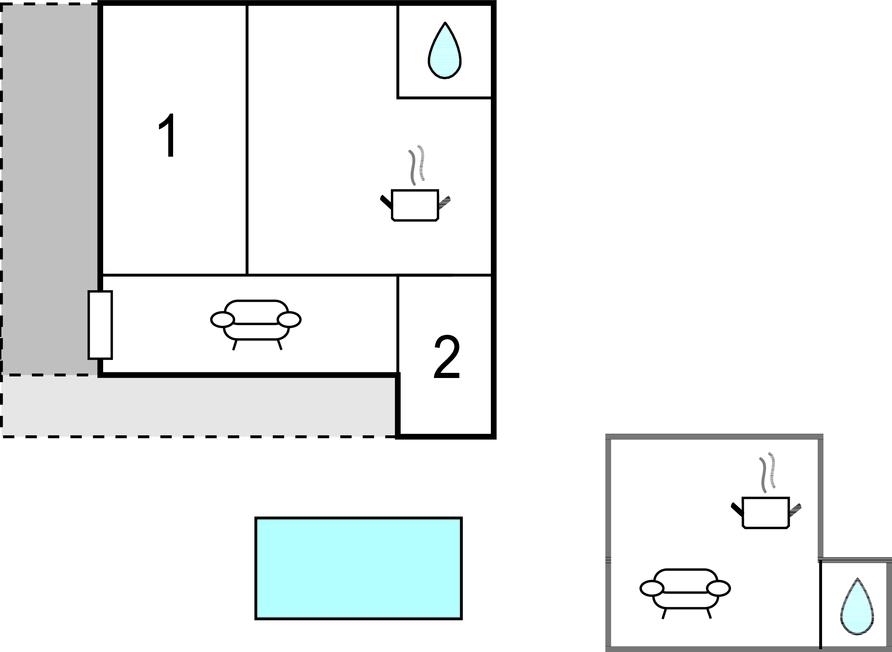 Vardagsrum 9m2 - 2 Sovplats. (Soffa, sovplats).