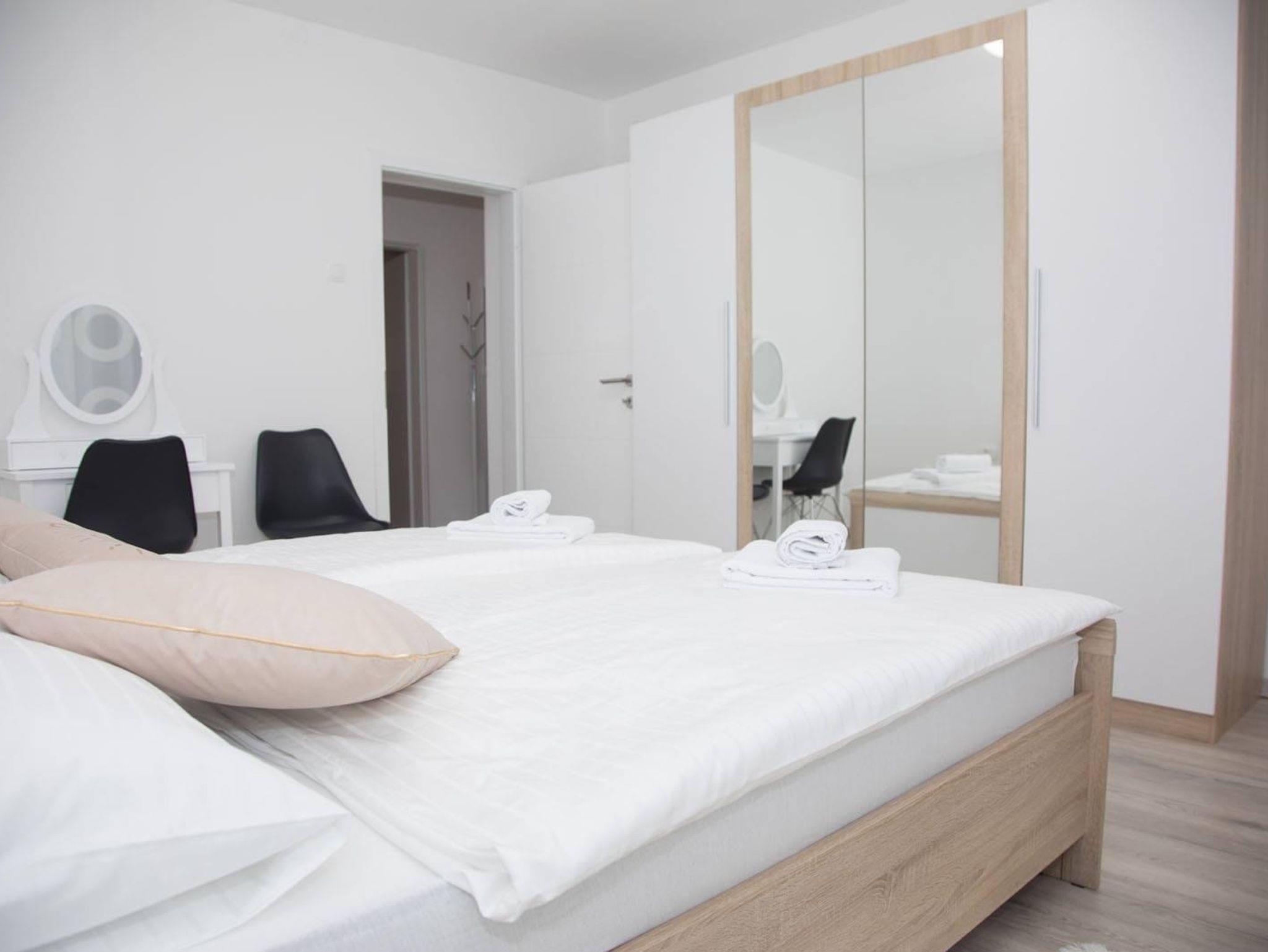 Ferienwohnung bietet Platz für 4 Gäste. Die Betten sind in Schlafzimmern, die es 1 gibt, und in Wohnzimmer, innerhalb einer Gesamtfläche von 59m2, angeordnet. Die reservierte Unterkunftseinheit hat keinen Balkon und keine Terrasse. IM PREIS INBEGRIFFEN: Kurtaxe, Endreinigung, Zentralheizung, Parkplatz, Internet, Kinderbett, Föhn. Die Verfügbarkeit zusätzlicher Dienstleistungen in Ihrem reservierten Termin und die Preise derselben (falls nicht aufgeführt) müssen im Voraus überprüft werden. Zusätzliche Dienstleistungen die in der Zahlungsaufforderung nicht aufgeführt sind werden direkt beim Vermieter bezahlt, angenommen der Gast nutzt auch diese. Ermäßigung auf den Grundpreis: Gratistag 14=13 (bei einem Aufenthalt von 14 Tagen oder mehr erhalten Sie einen Gratistag für den Aufenthalt bis 31.12.26).
