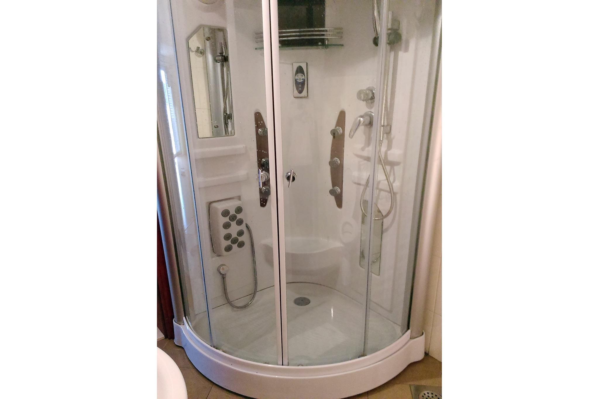 På våning 2: (Vardagsrum(bäddsoffa, TV, radio), Kök, sovrum(2x enkelsäng), sovrum(dubbelsäng), badrum(badkar med dusch, handfat, toalett , tvättmaskin), badrum(massagedusch, handfat, toalett ), balkong eller terrass, luftkonditionering, trädgårdsmöbler, solstolar, Parasoll) trädgård, grill