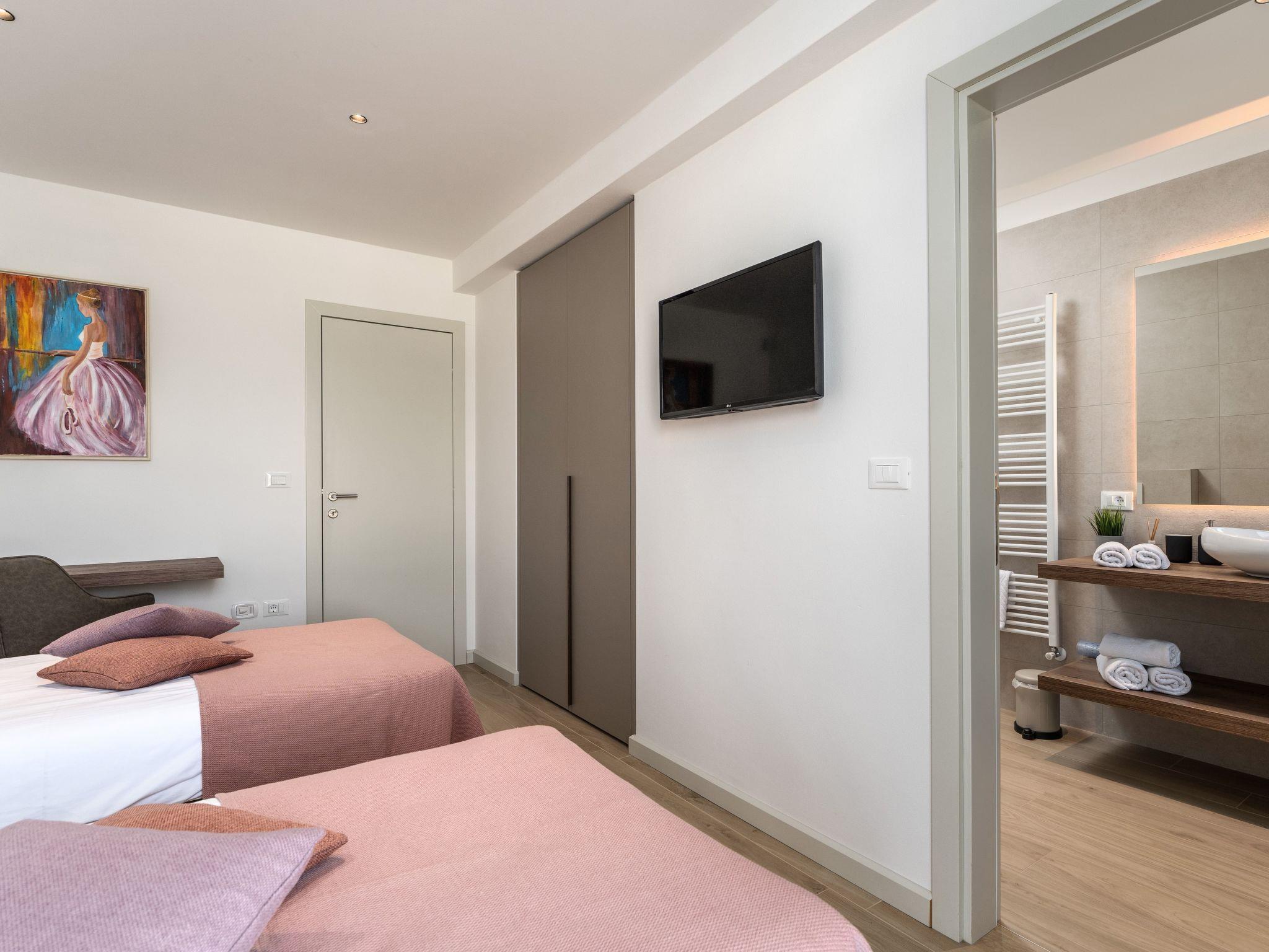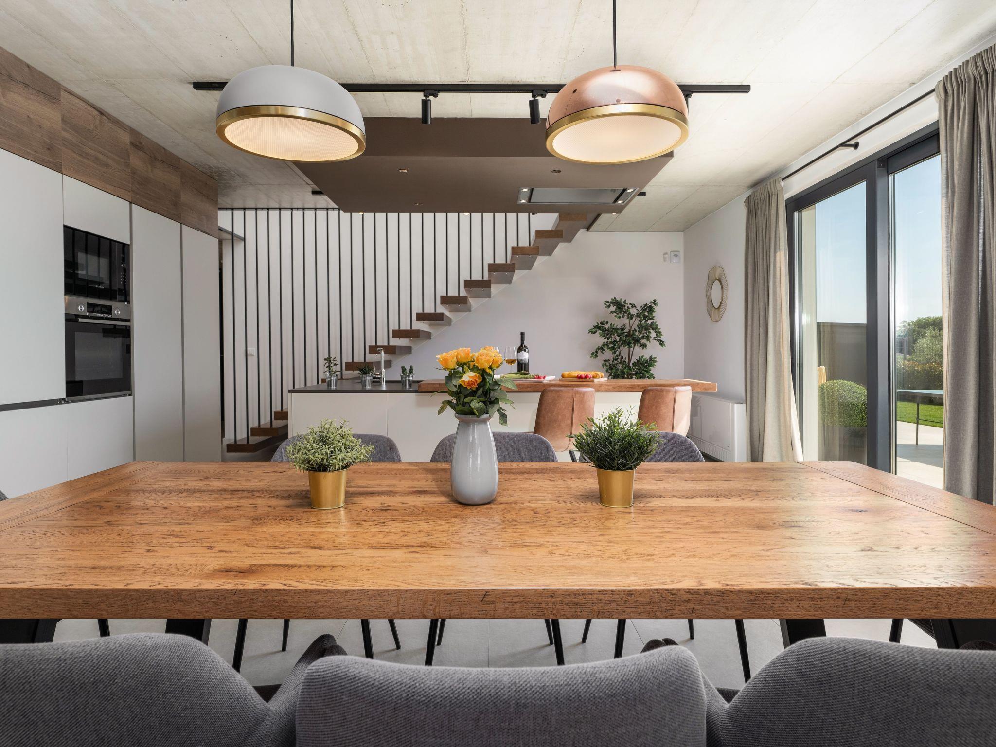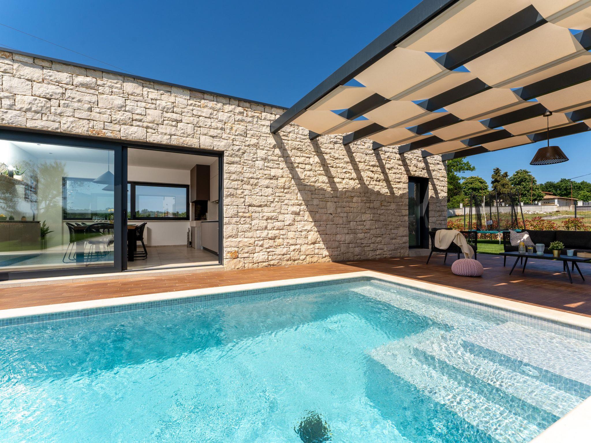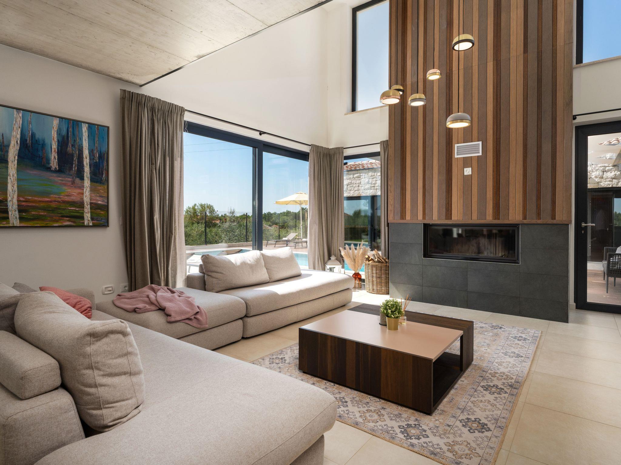 Villa Ansi Exclusive is a luxurious modern holiday home in small village Anzici near charming hill town Višnjan in central Istria. Numerous sights in Porec, Novigrad, Motovun, Pazin are nearby. The house is situated on a fenced 1580 square metre plot and offers guests the following outdoor facilities: 30 square metre pool, sun loungers, well-kept lawn, summer kitchen with barbecue fireplace, covered spacious terrace by the pool and several parking spaces. In the large outdoor area you will also find play facilities for the little ones, a table tennis table and 6 bicycles. The wonderful wellness area with Finnish sauna and indoor whirlpool are also there for relaxation and for those who prefer to spend their holidays in the not too hot months before or after the season, the pool can be heated on request.
