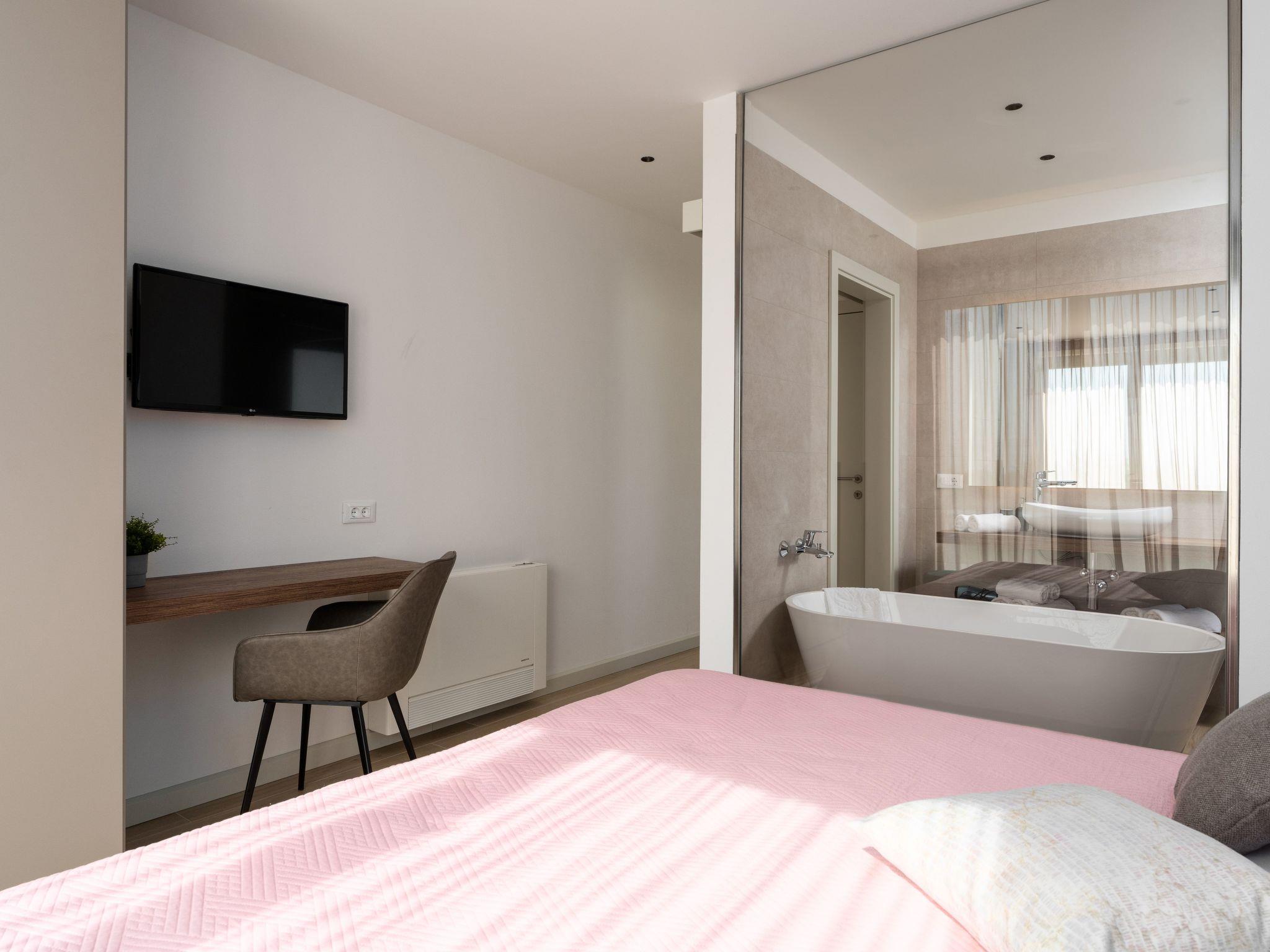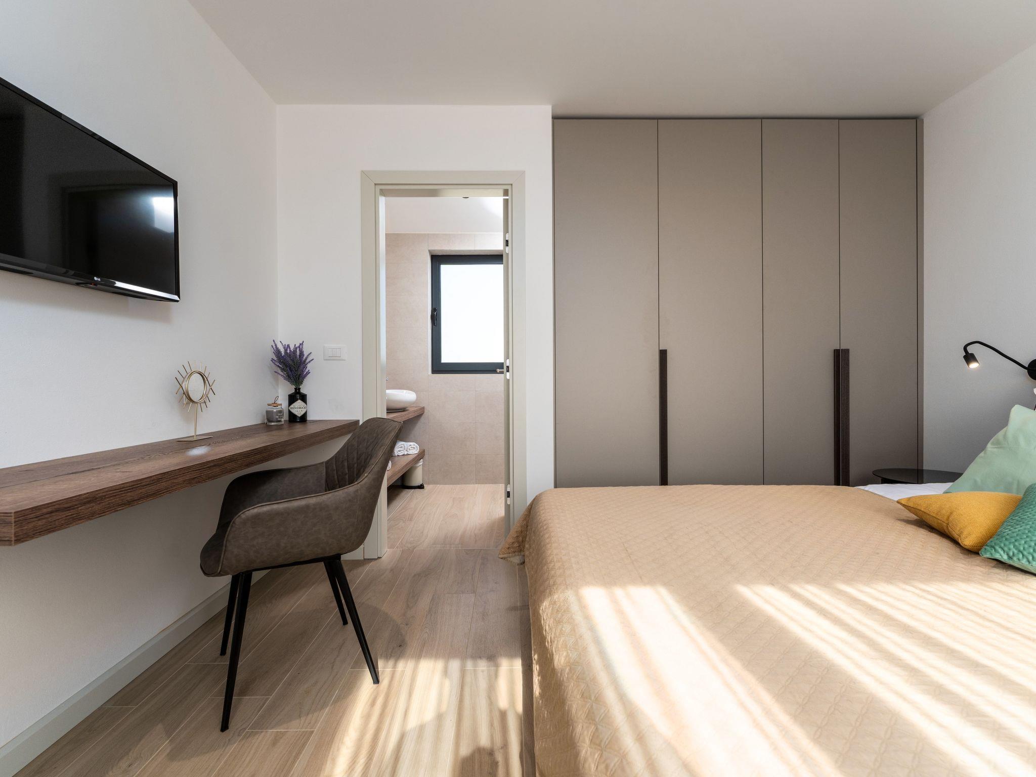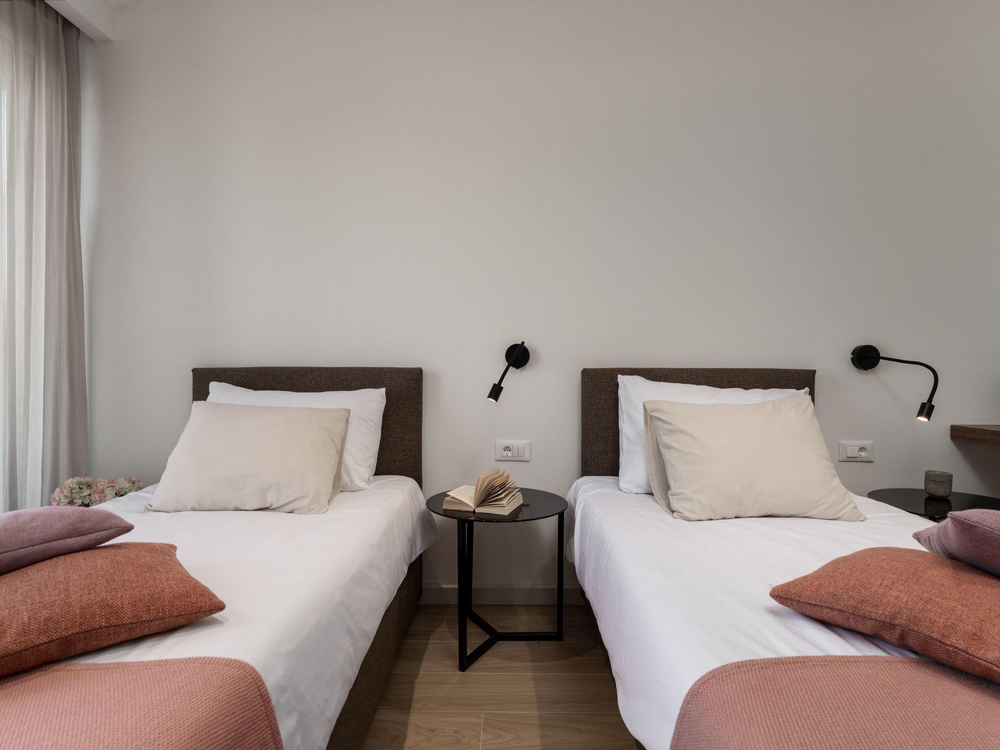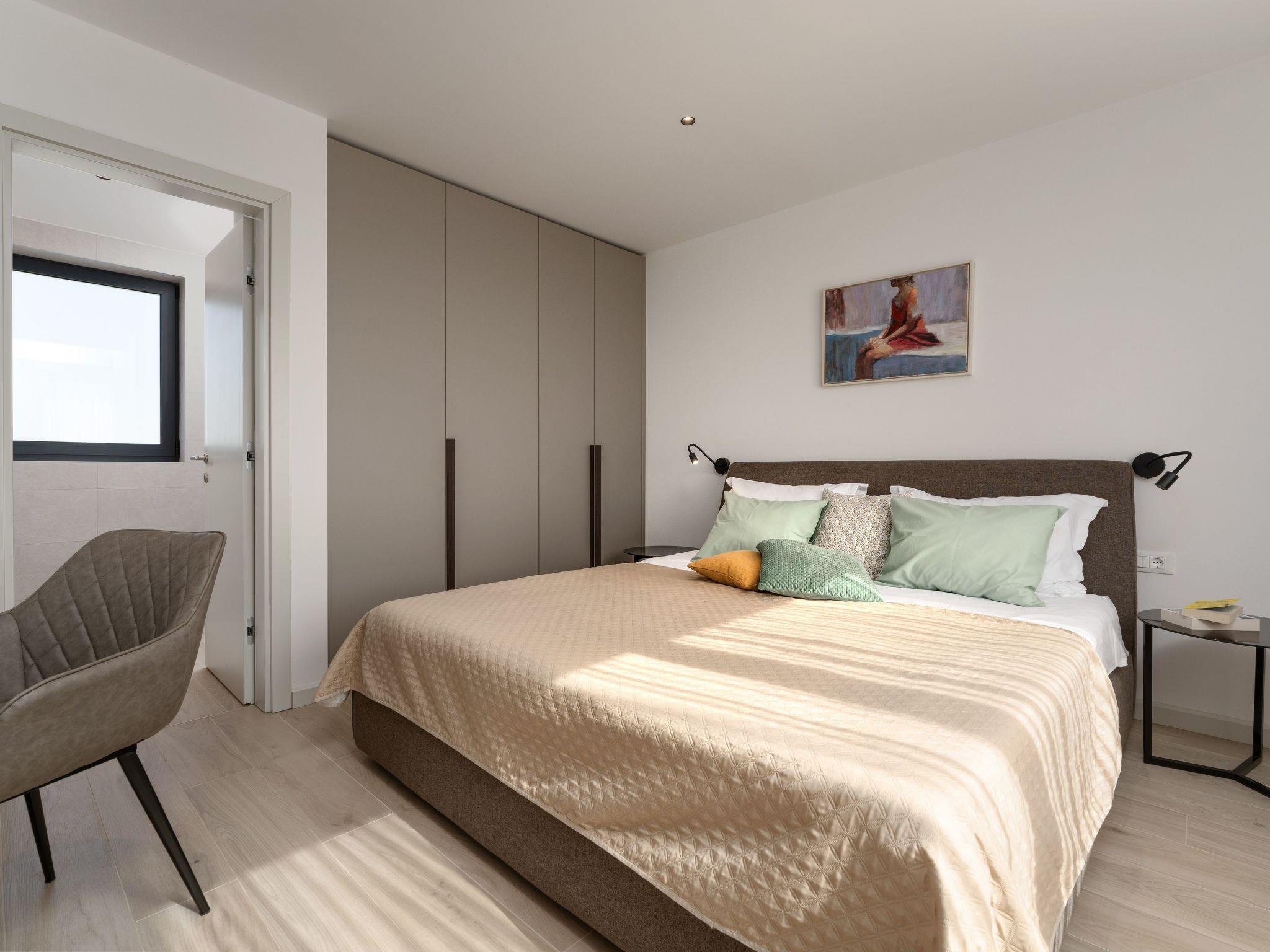 The holiday home has 160 square metres of living space spread over two floors and can accommodate up to 10 people. On the ground floor there is a fully equipped kitchen with dining area, cosy living room with plenty of natural light through the large glass walls, TV and fireplace, a bathroom and one of the 4 bedrooms, which has its own bathroom with bath/shower. On the first floor there are three further bedrooms, two with double beds and en-suite bathrooms, and one with two beds, en-suite bathroom and balcony with garden furniture and wonderful views. If you want to treat yourself to a very special holiday in luxury, then Villa Ansi Exclusive is the right choice.