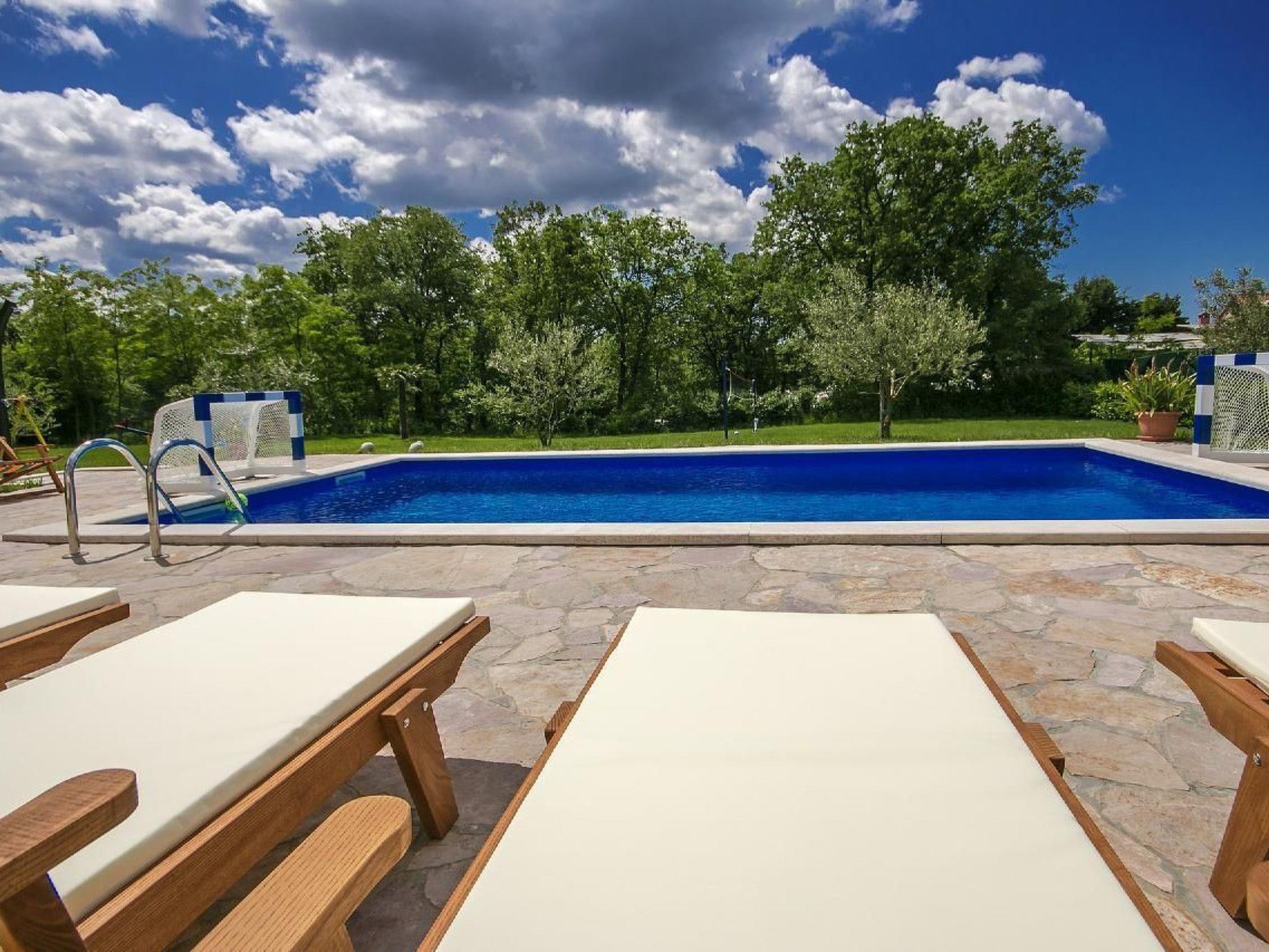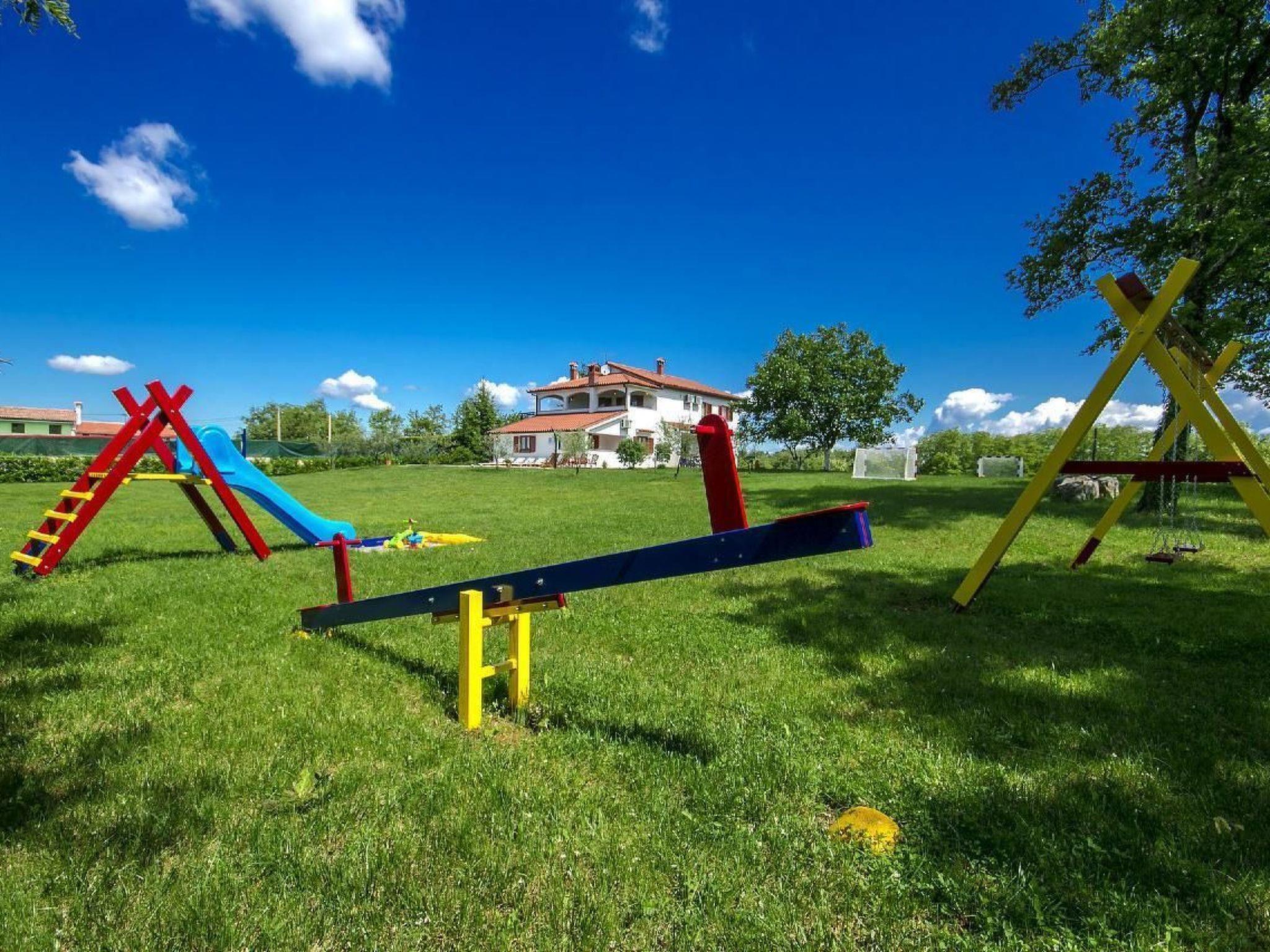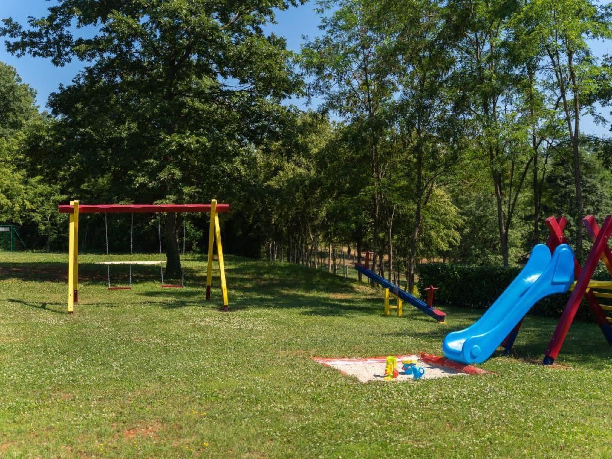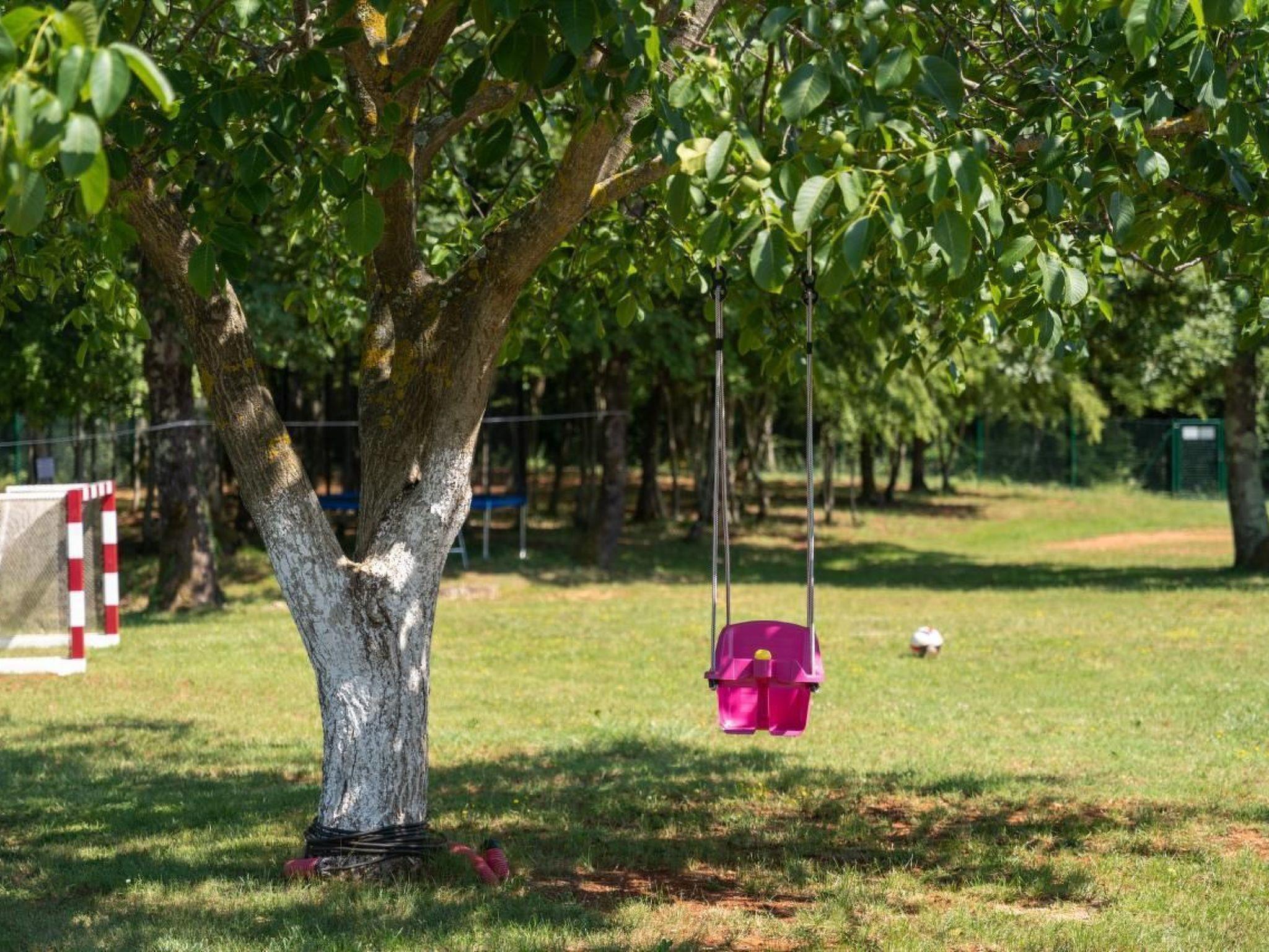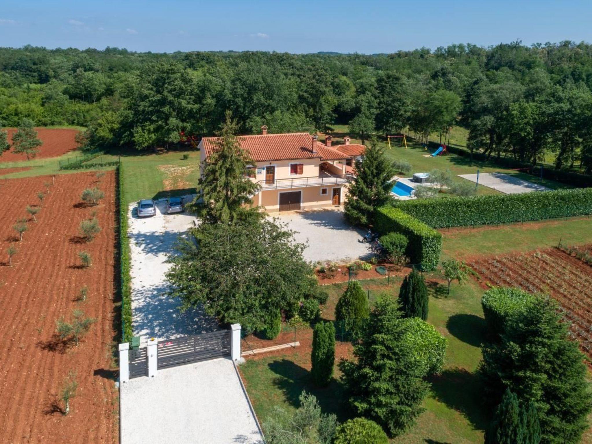 Holiday house Dani with a swimming pool is located in the village Vranici near Visnjan which is located only 15km from Porec and its beaches. Markets, restaurants, pharmacies and other facilities are located 5 km away in Visnjan. The house is situated on its own enclosed property of 4000 m2 with well maintained lawn, where the guests have a private parking for more cars, private pool of 25 m2, which can also be heated, with sun loungers, table and barbeque on their disposal. There are also a playground with sand, toboggan, badminton place and 6 bikes to rent for free. A perfect place for family where you can enjoy the view of the surrounding nature. The owner does not live on the same property.