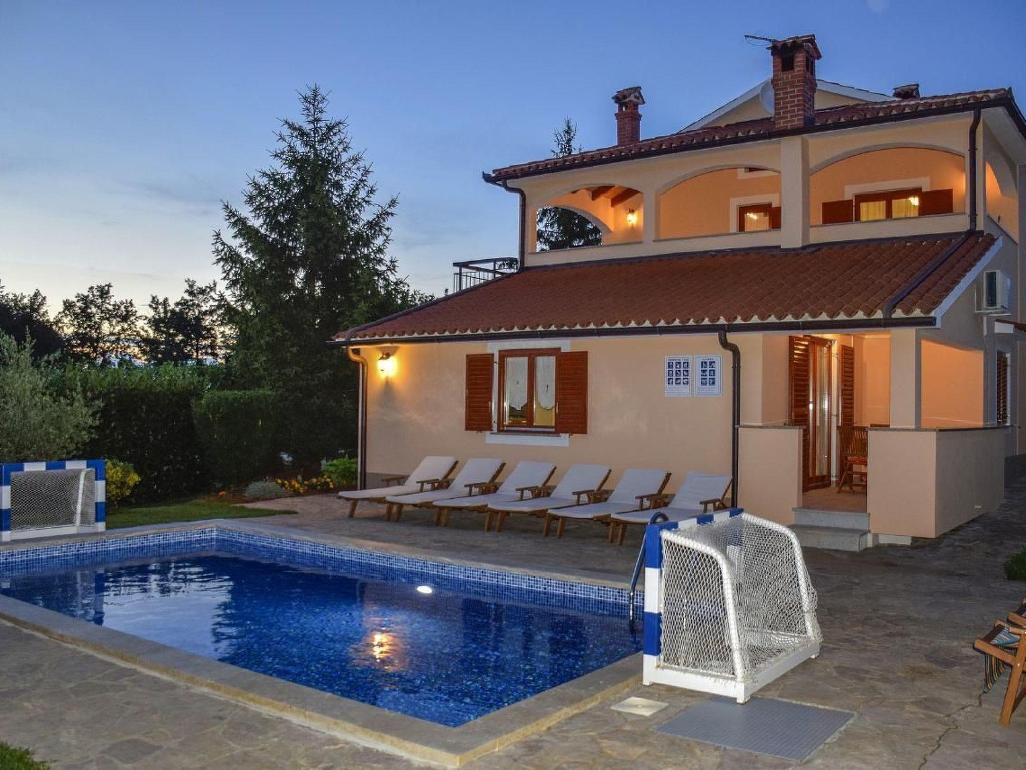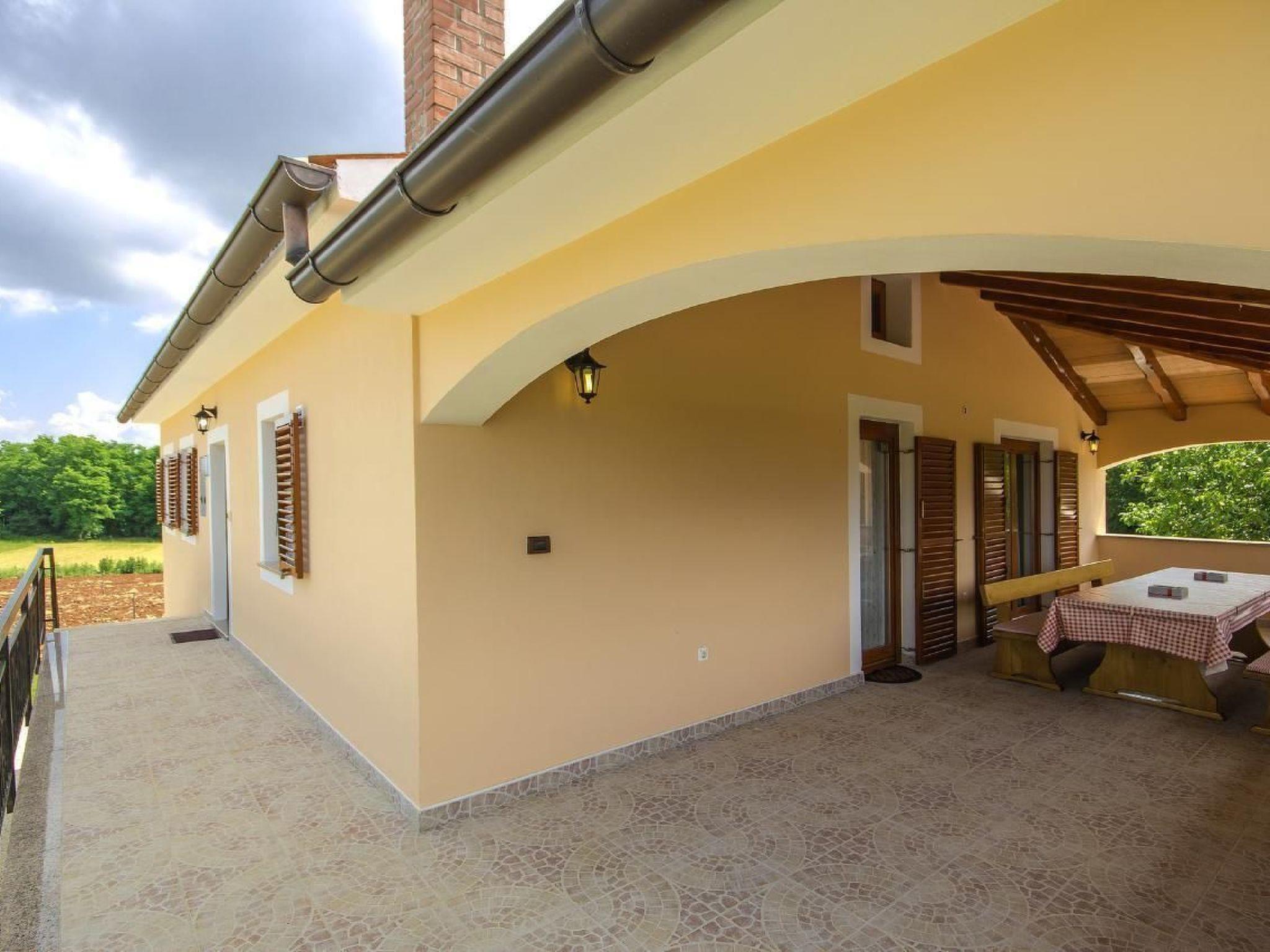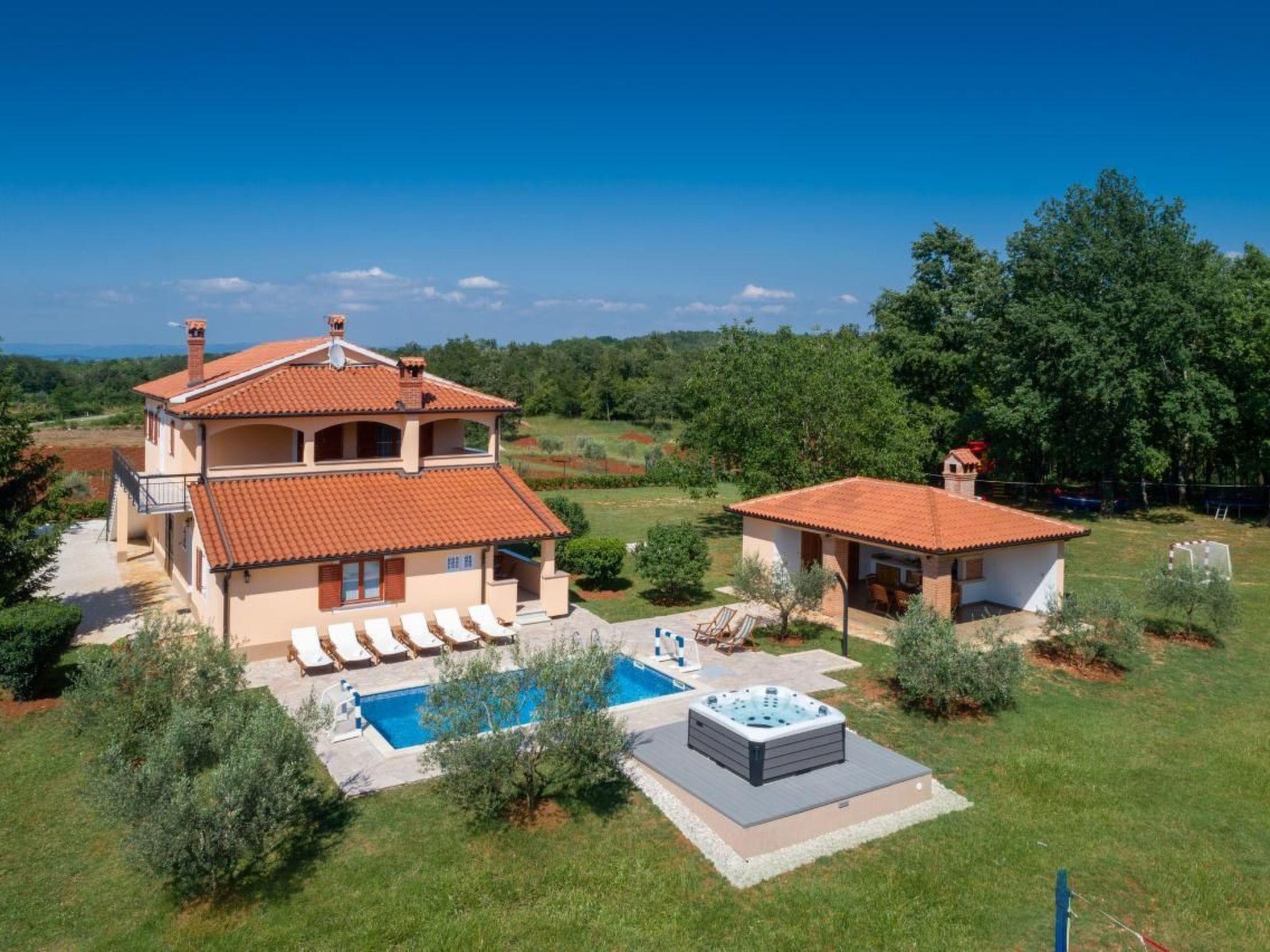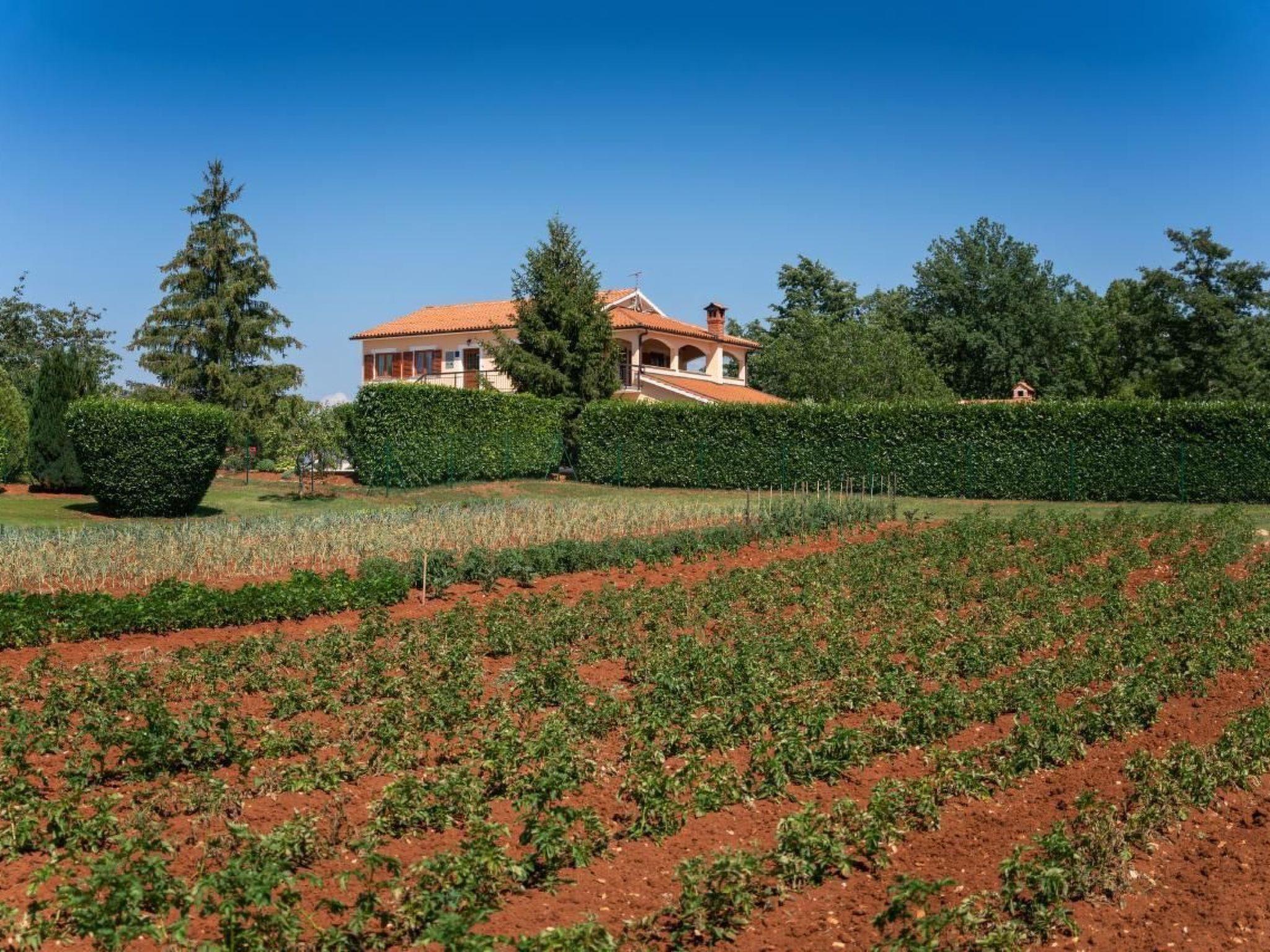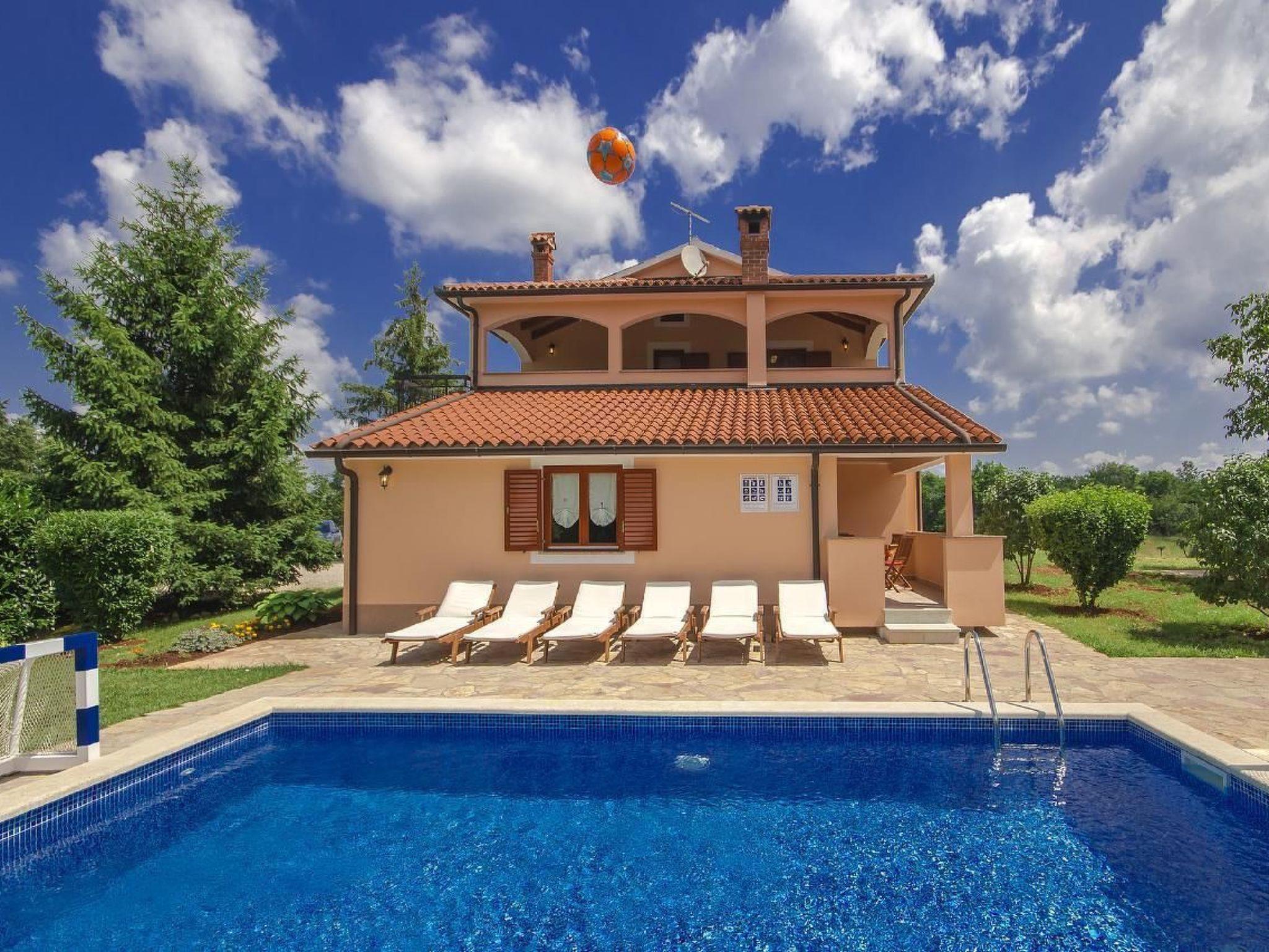 Holiday house Dani with a swimming pool is located in the village Vranici near Visnjan which is located only 15km from Porec and its beaches. Markets, restaurants, pharmacies and other facilities are located 5 km away in Visnjan. The house is situated on its own enclosed property of 4000 m2 with well maintained lawn, where the guests have a private parking for more cars, private pool of 25 m2, which can also be heated, with sun loungers, table and barbeque on their disposal. There are also a playground with sand, toboggan, badminton place and 6 bikes to rent for free. A perfect place for family where you can enjoy the view of the surrounding nature. The owner does not live on the same property.