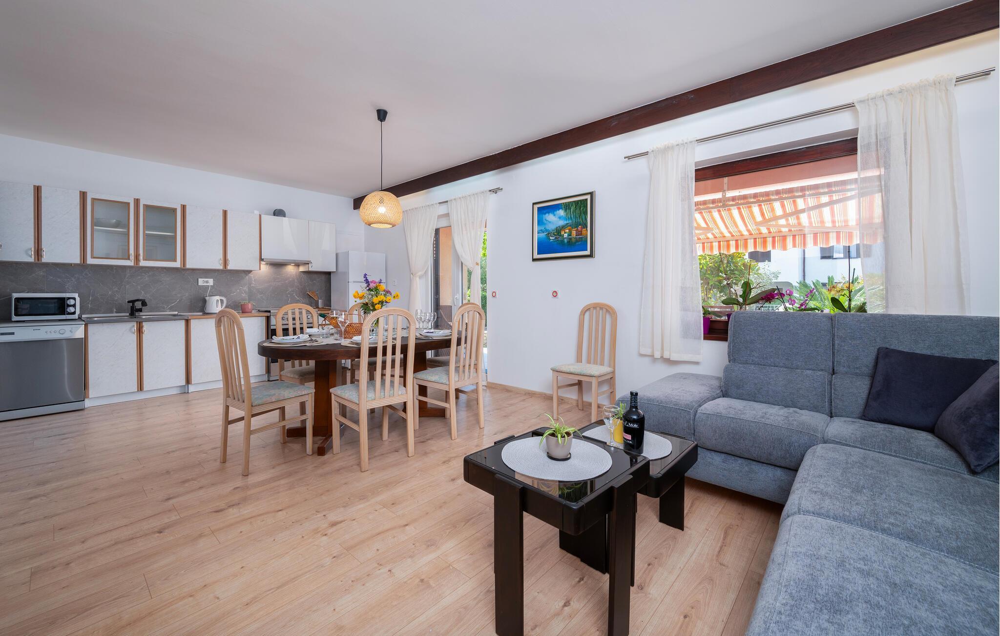 Denna semesterlägenhet ligger i ett familjehus i Valbandon, nära Fazana. Det attraktivt inredda semesterboendet välkomnar dig med alla bekvämligheter du kan önska dig på din semester. Koppla av i sovrummen och använd vardagsrummet som lägenhetens mittpunkt, där ni kan träffas för att laga mat, äta och koppla av.