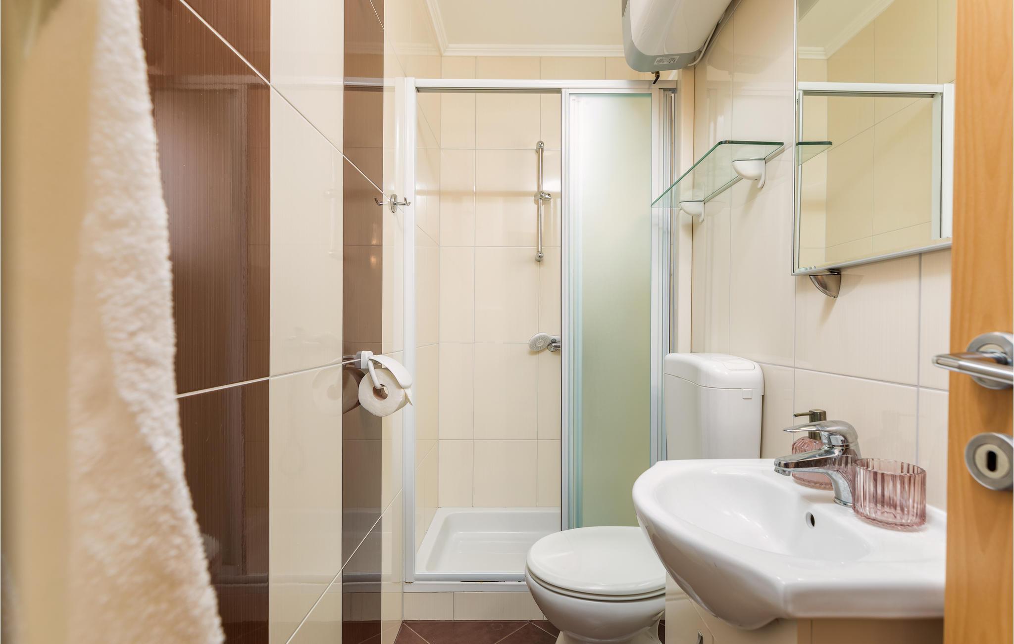 Badrum (nr. 1) - WC: Varmt och kallt vatten. Dusch