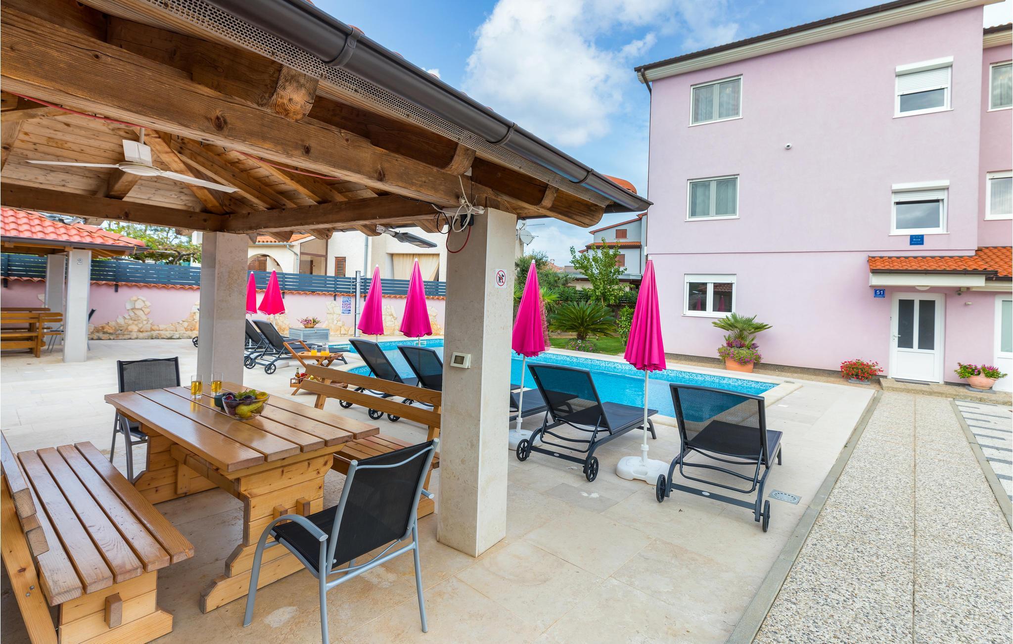 Dessa charmiga semesterlägenheter (CIF542, CIF543, CIF544) ligger i ett bostadshus och delar en utomhuspool och en täckt terrass med grill på den gemensamma egendomen. Varje lägenhet är utrustad med vackra möbler och har en egen terrass där du kan tillbringa många mysiga timmar. De närmaste stränderna i Valbandon ligger inom gångavstånd. Vi rekommenderar att du besöker den lilla grannstaden Faana för att uppleva de många restaurangerna och den vackra strandpromenaden. Här väntar också avgångshamnen för nationalparken på Brijuniöarna på dig.