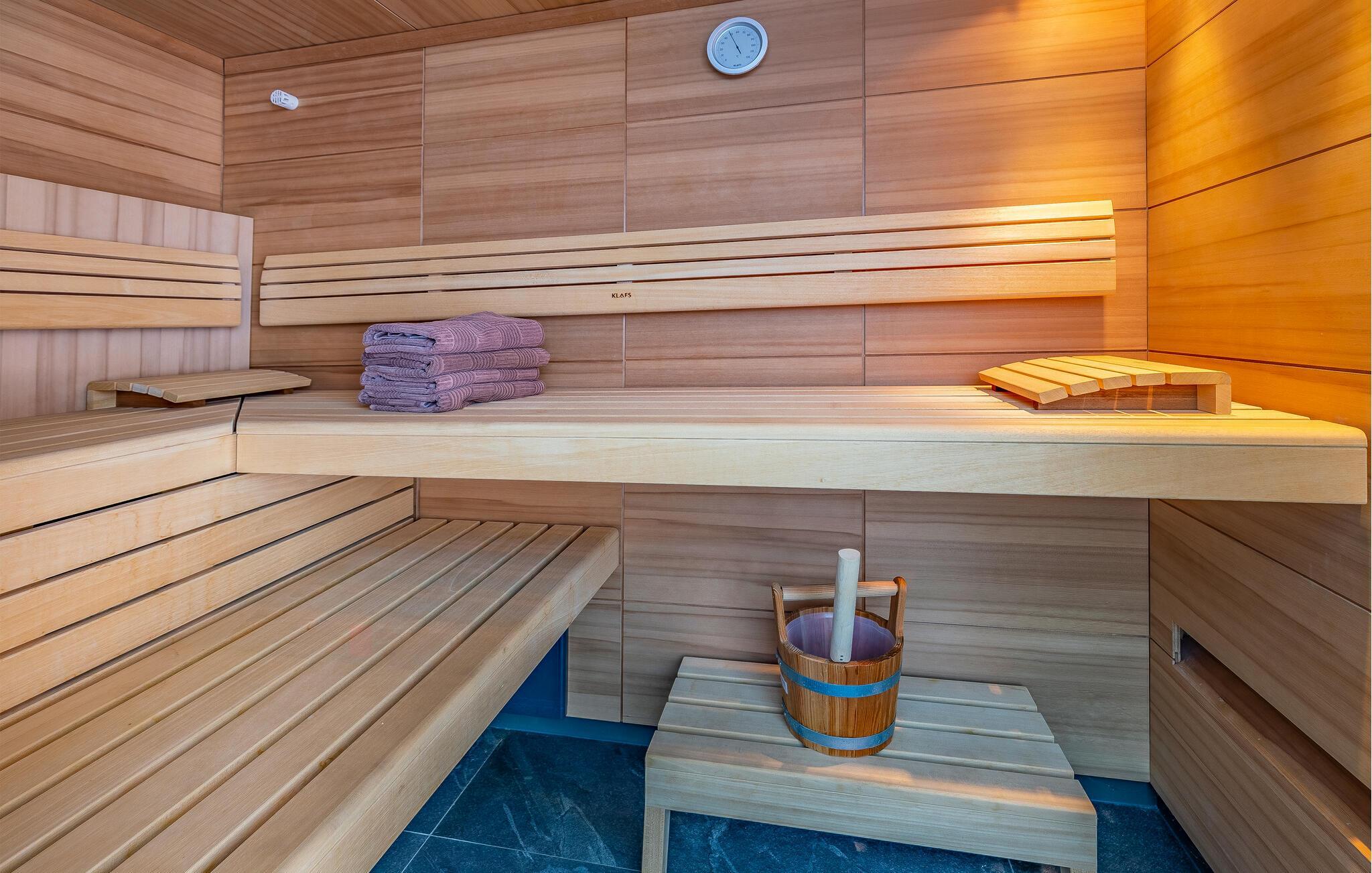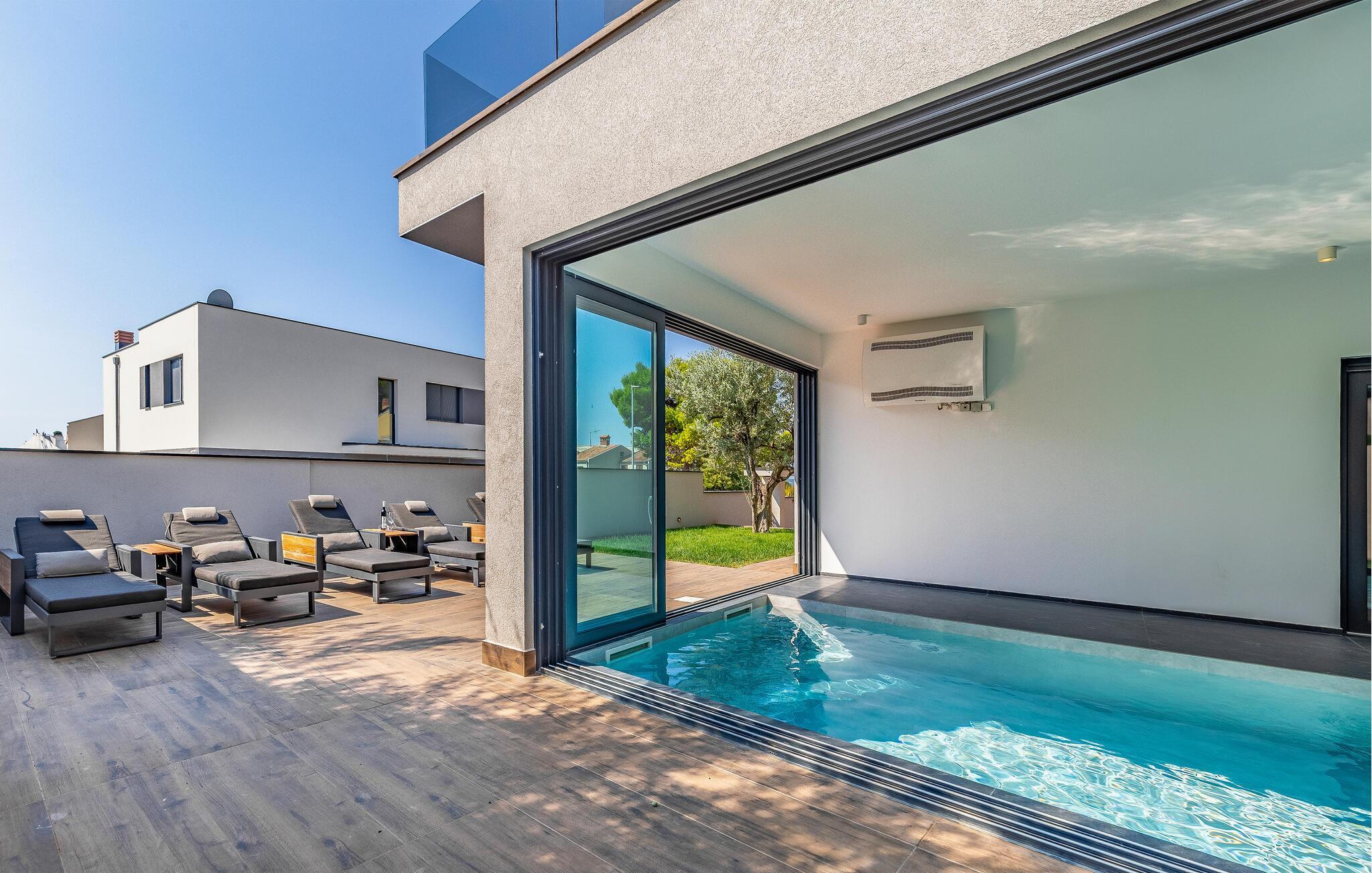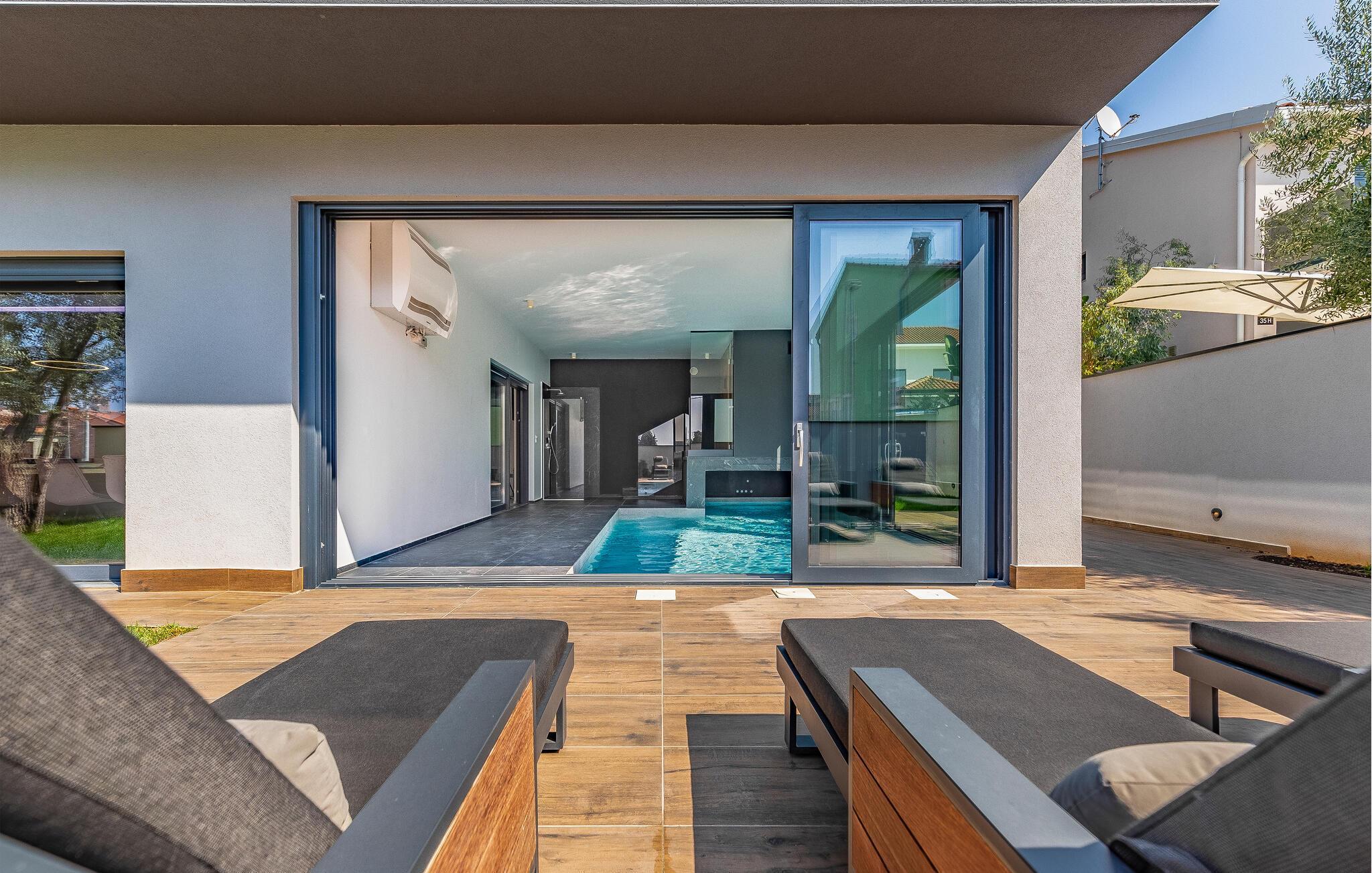 Tillbringa din semester i denna lyxiga villa i Fazana, som kommer att imponera på dig med sin eleganta design och högkvalitativa inredning. Den öppna planlösningen på bottenvåningen ger dig gott om utrymme att spendera tid tillsammans, oavsett om du lagar mat i det rymliga köket eller spelar ett parti pool. På övervåningen finns privata sovrum med eget badrum, några med tillgång till den stora terrassen, som är perfekt för avkopplande yogaövningar i morgonsolen. Koppla av i den uppvärmda inomhuspoolen, njut av bastun eller koppla av på solstolarna på den rymliga terrassen.