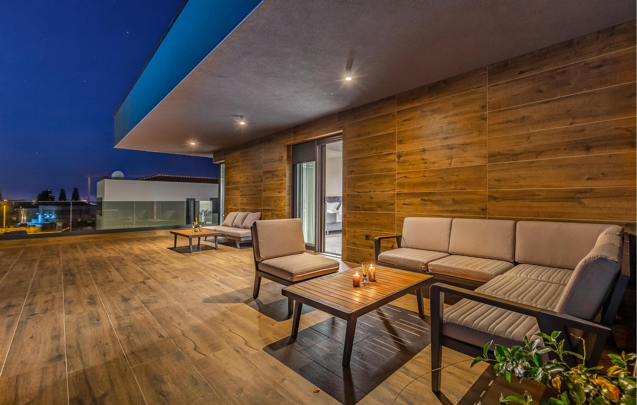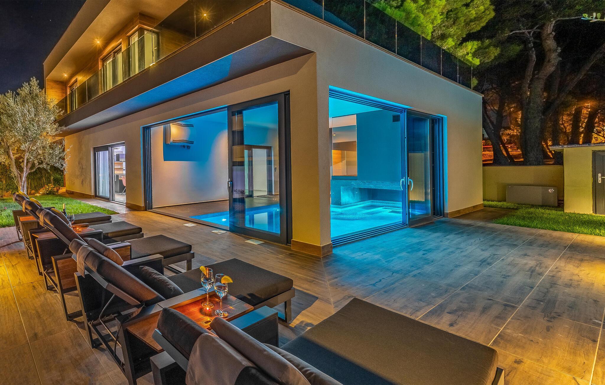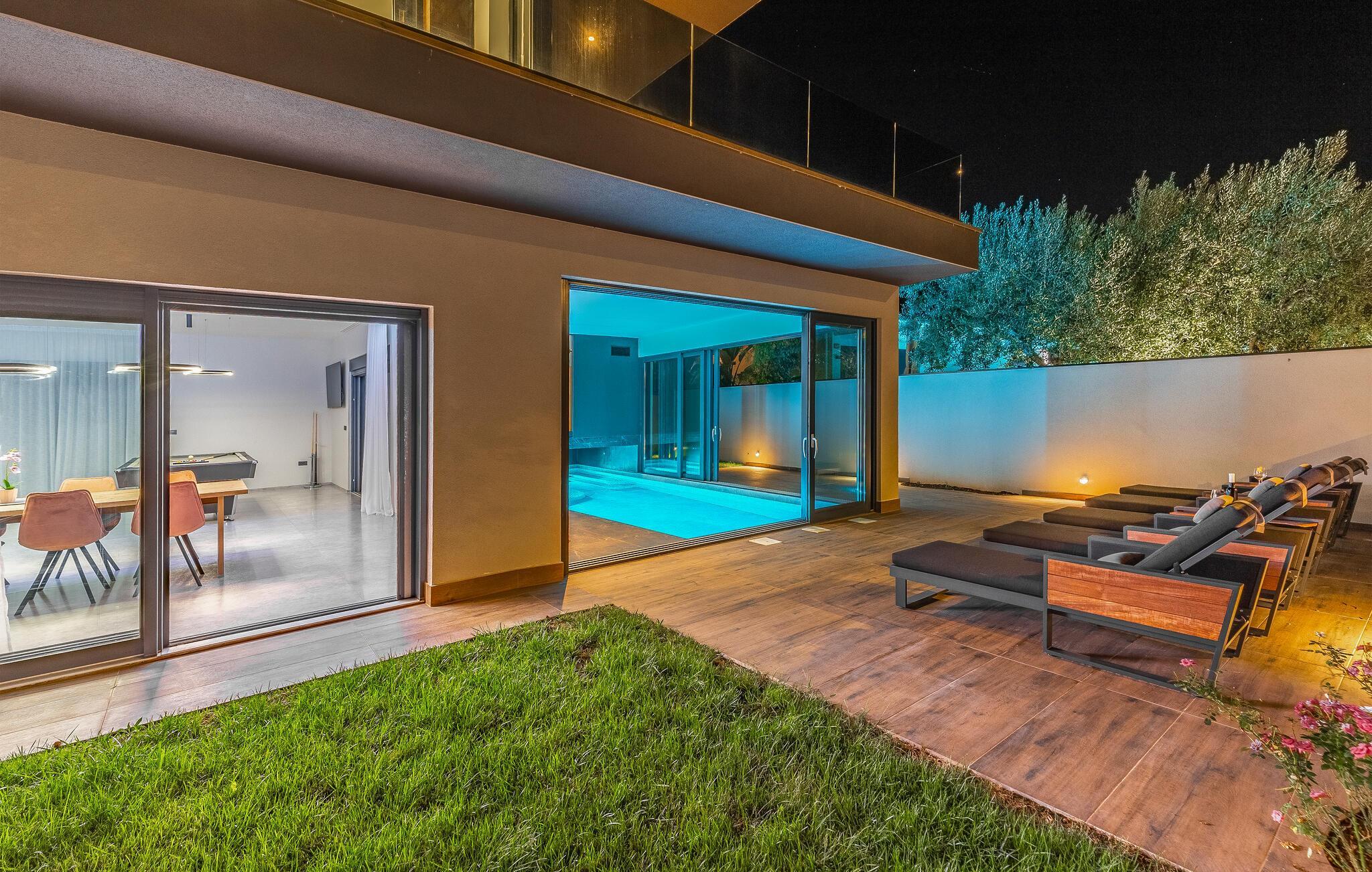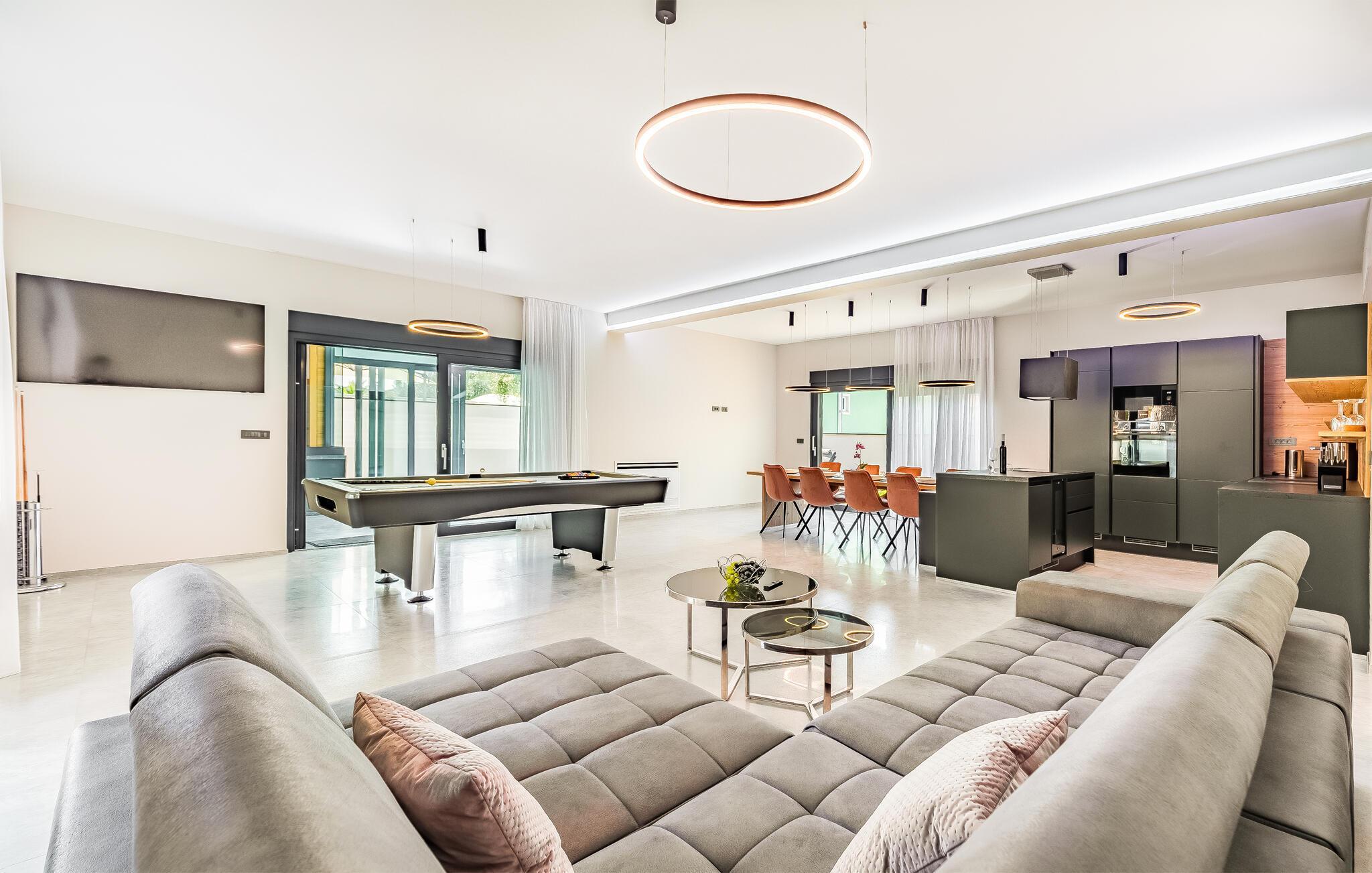 Tillbringa din semester i denna lyxiga villa i Fazana, som kommer att imponera på dig med sin eleganta design och högkvalitativa inredning. Den öppna planlösningen på bottenvåningen ger dig gott om utrymme att spendera tid tillsammans, oavsett om du lagar mat i det rymliga köket eller spelar ett parti pool. På övervåningen finns privata sovrum med eget badrum, några med tillgång till den stora terrassen, som är perfekt för avkopplande yogaövningar i morgonsolen. Koppla av i den uppvärmda inomhuspoolen, njut av bastun eller koppla av på solstolarna på den rymliga terrassen.