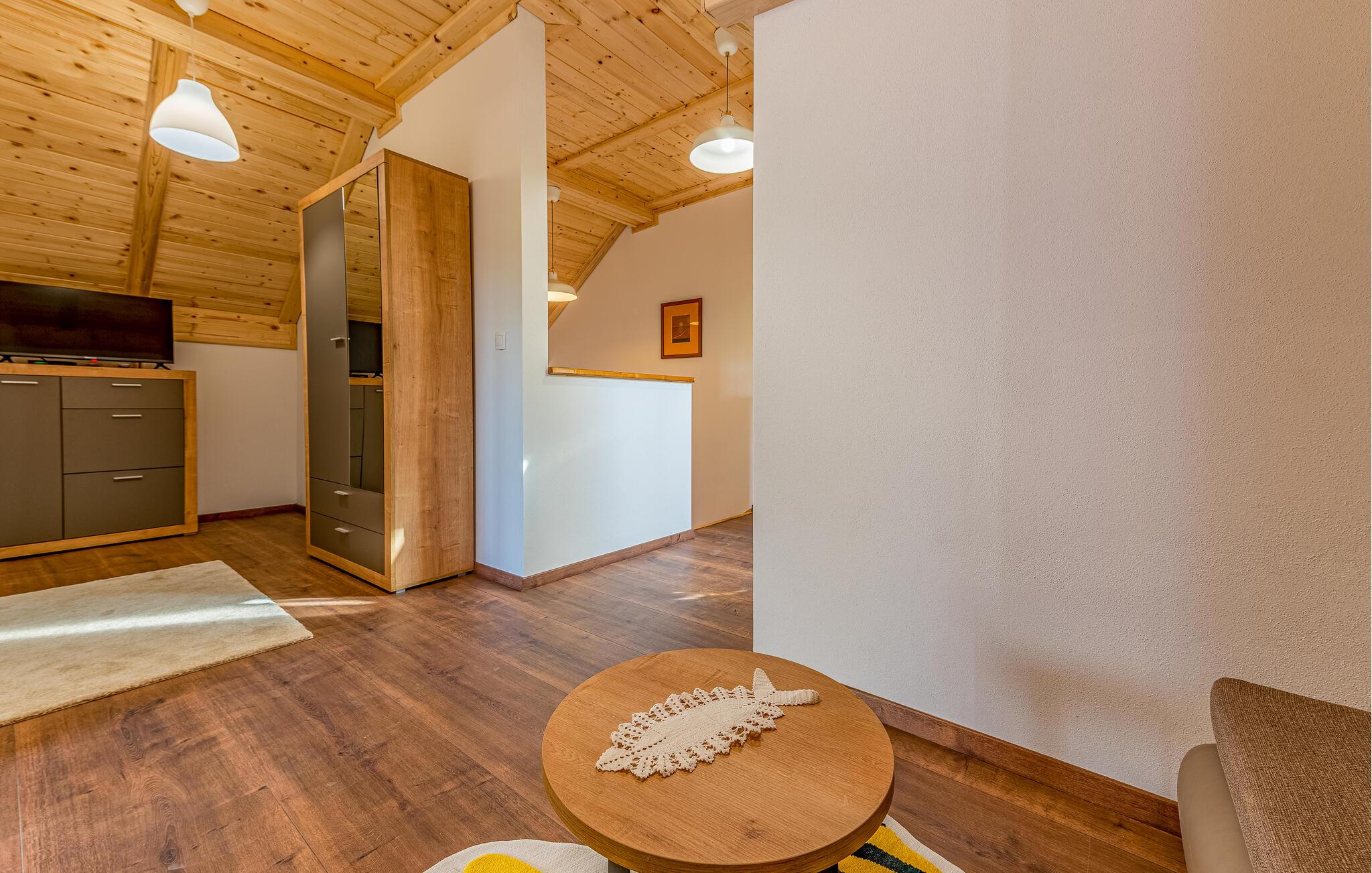 Välkommen till det rymliga och familjevänliga huset, som imponerar med sin bekväma inredning. Ljusa rum och vackra trätak gör huset till en trevlig plats att bo på för både stora och små. Se fram emot mysiga filmkvällar i den rymliga soffan i vardagsrummet och koppla av med dina nära och kära i en attraktiv miljö.