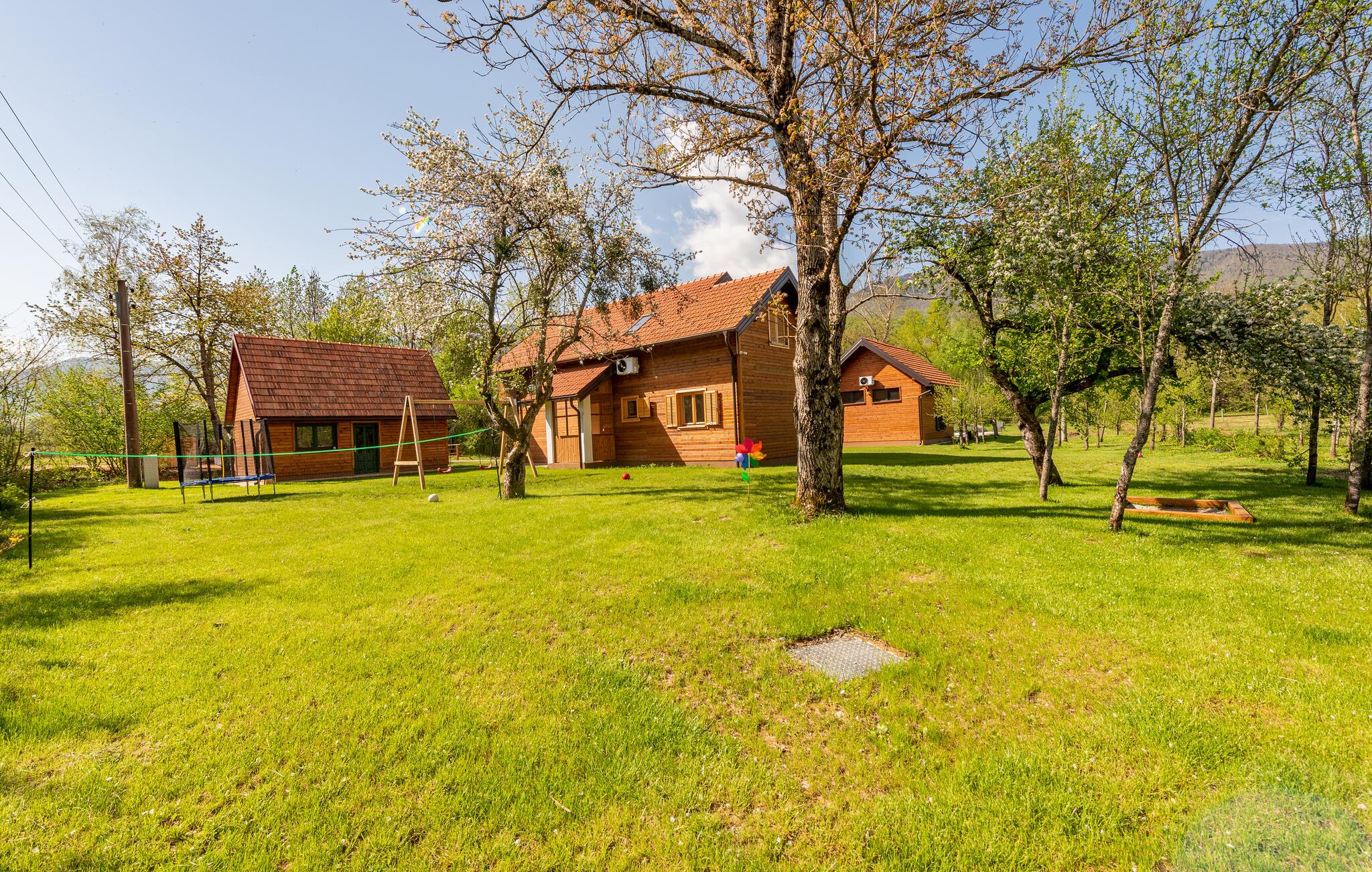 Utanför bjuder den rymliga tomten in dig att njuta av solskenet ostört. Kliv ut direkt på morgonen och hoppa i poolen. Koppla av på en solstol och njut av lugnet och tystnaden medan din blick vandrar över landskapet. Dina barn är också väl underhållna tack vare de många lekredskapen. Servera läckra rätter från grillen och avrunda dagen i utomhusbadtunnan