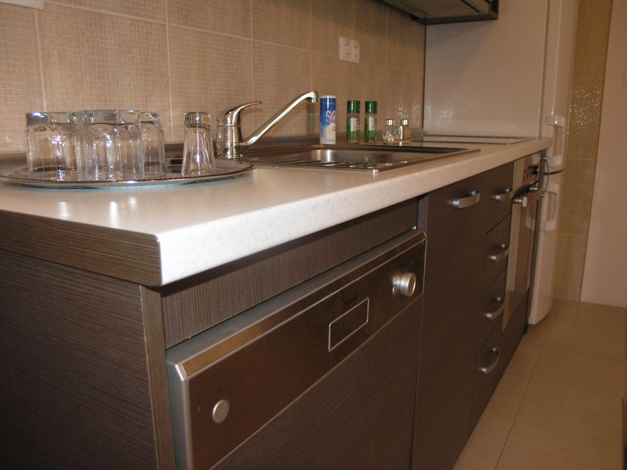 The accommodation provides 40m² of living space for up to four people, although it is also possible to accommodate two adults and three children. The apartment has a combined living and dining room (air-conditioned) with a sofa, which can also be used as a sofa bed (160 x 200cm), a dining table for four people, an LCD flatscreen TV and a coffee table. There is a very well-equipped kitchen with everything you need, including a ceramic hob and a dishwasher. The bathroom provides a shower, WC, washbasin and washing machine. Free wireless Internet access is available. The bedroom has a wardrobe and a comfortable double bed (160 x 200cm). Two cots can be provided on request. The air conditioning in the living room is powerful enough to cool the whole apartment.