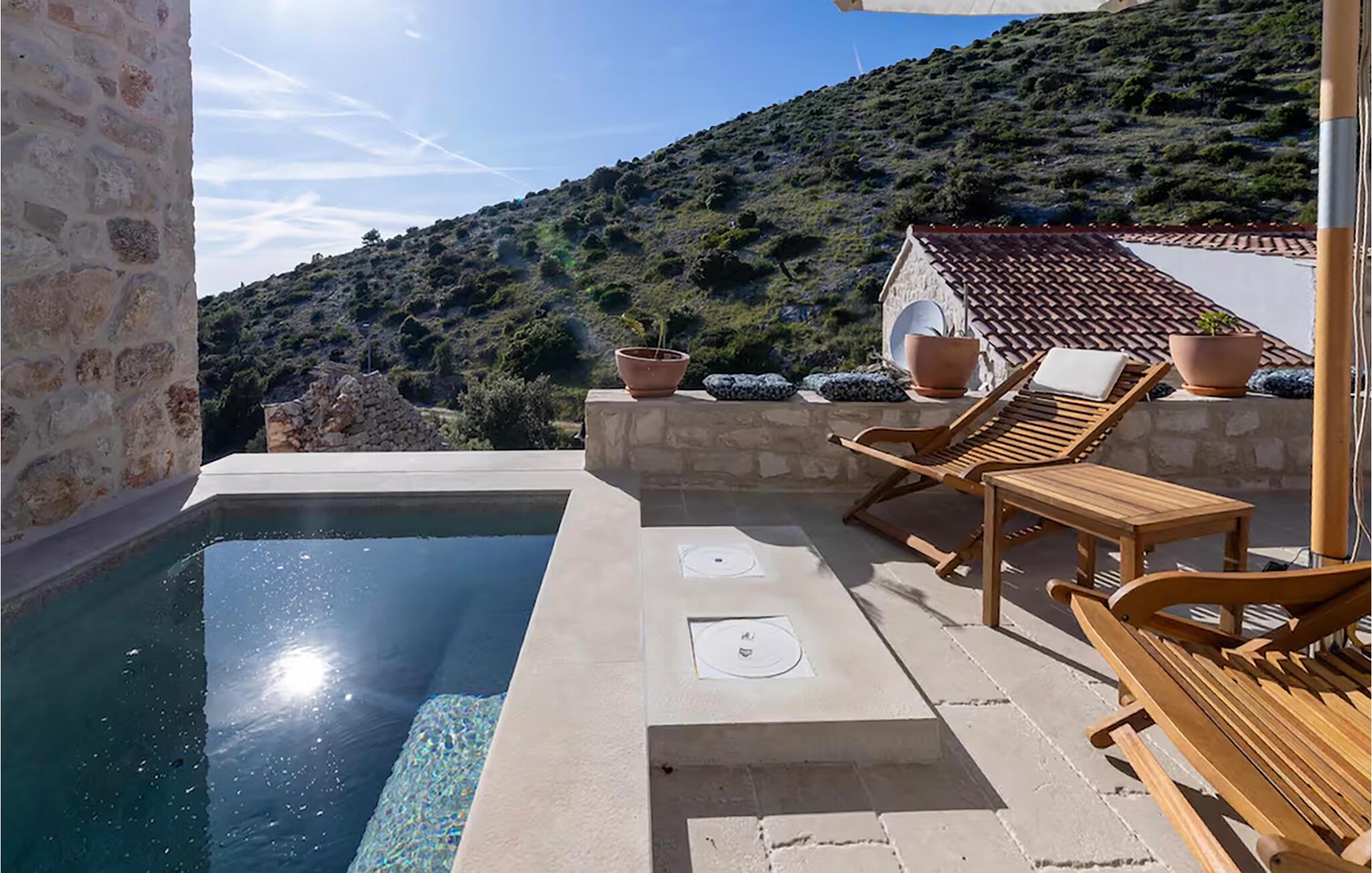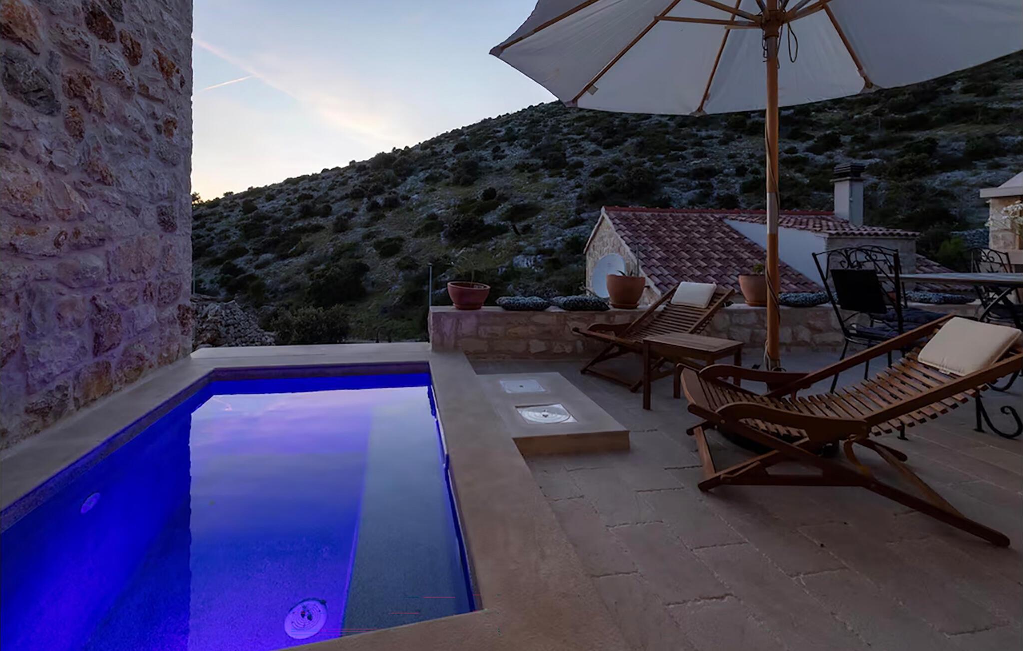 Hoppa i poolen i morgonsolen och koppla sedan av på en solstol. Härifrån har du en fantastisk utsikt över bergen. På kvällen kan du tillaga en saftig biff på grillen och äta tillsammans i den vackra kvällsstämningen som skapas runt villan vid solnedgången.