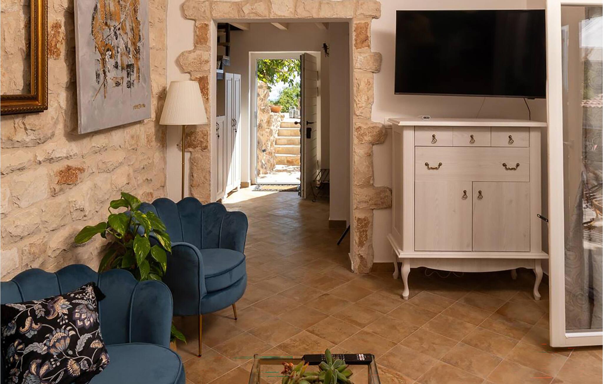 Denna imponerande villa i natursten lovar dig en semester i en klass för sig. Tillbringa avkopplande timmar i de lantliga vardagsrummen, tillaga färska måltider i det moderna köket eller streama din favoritserie.