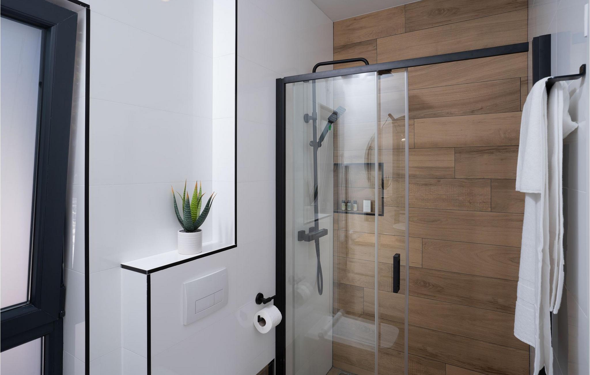 Badrum (nr. 1) - WC: Varmt och kallt vatten. Dusch