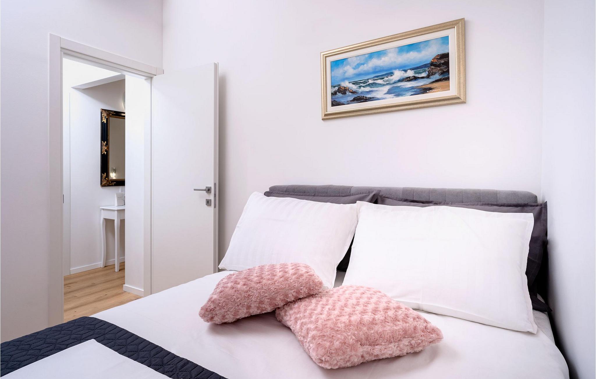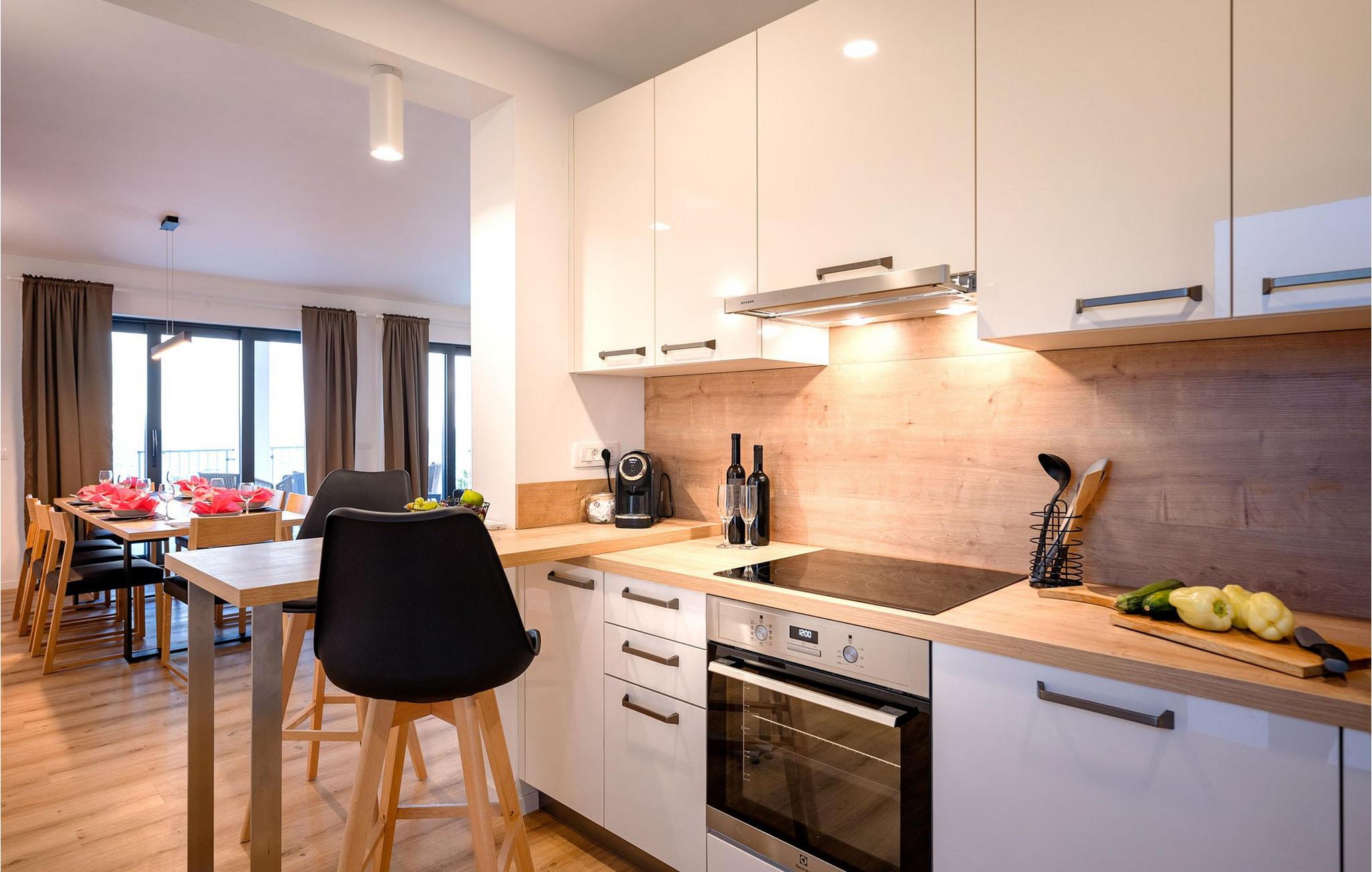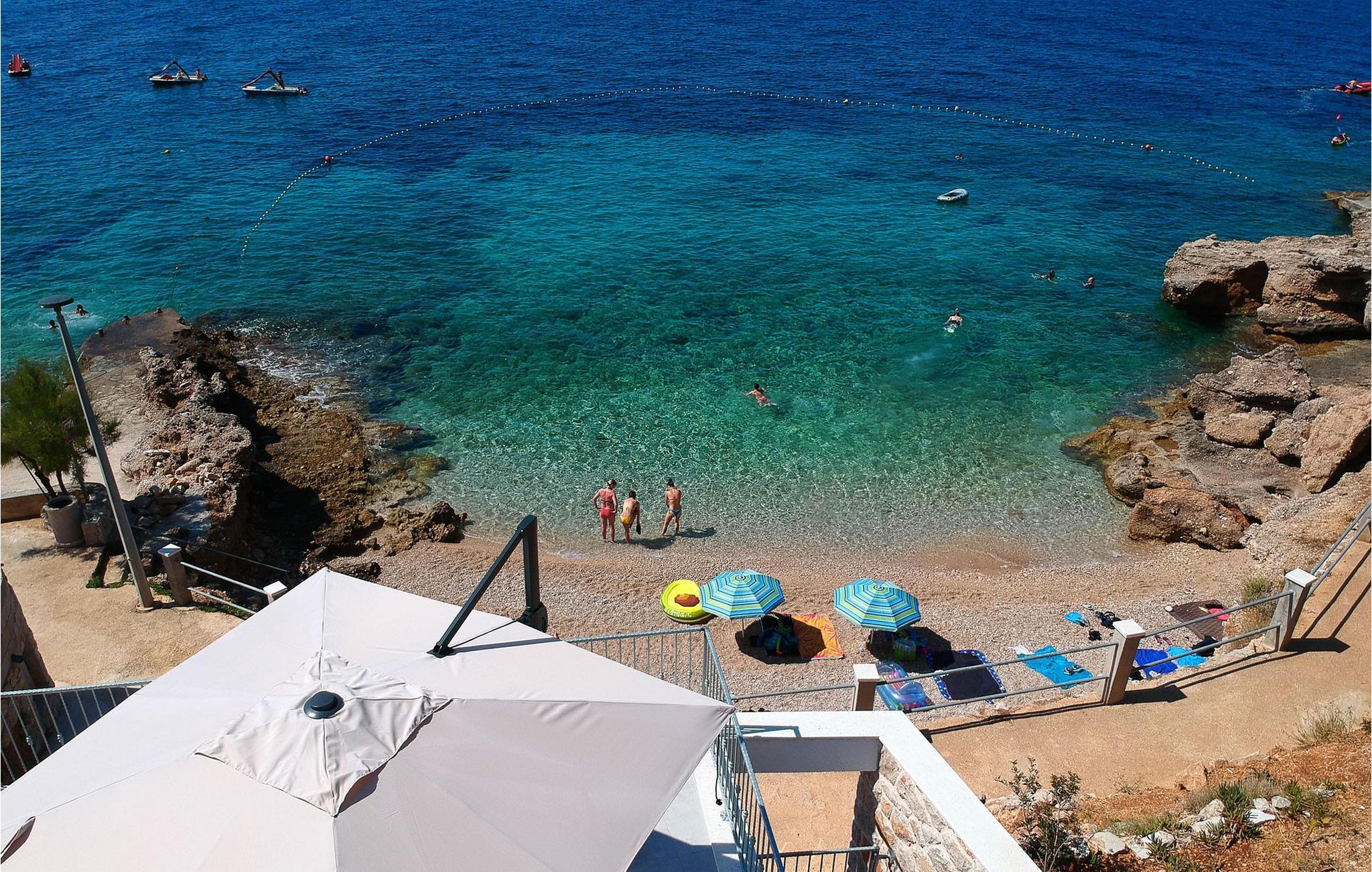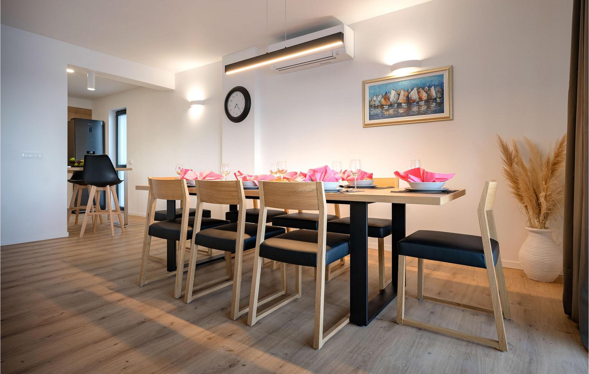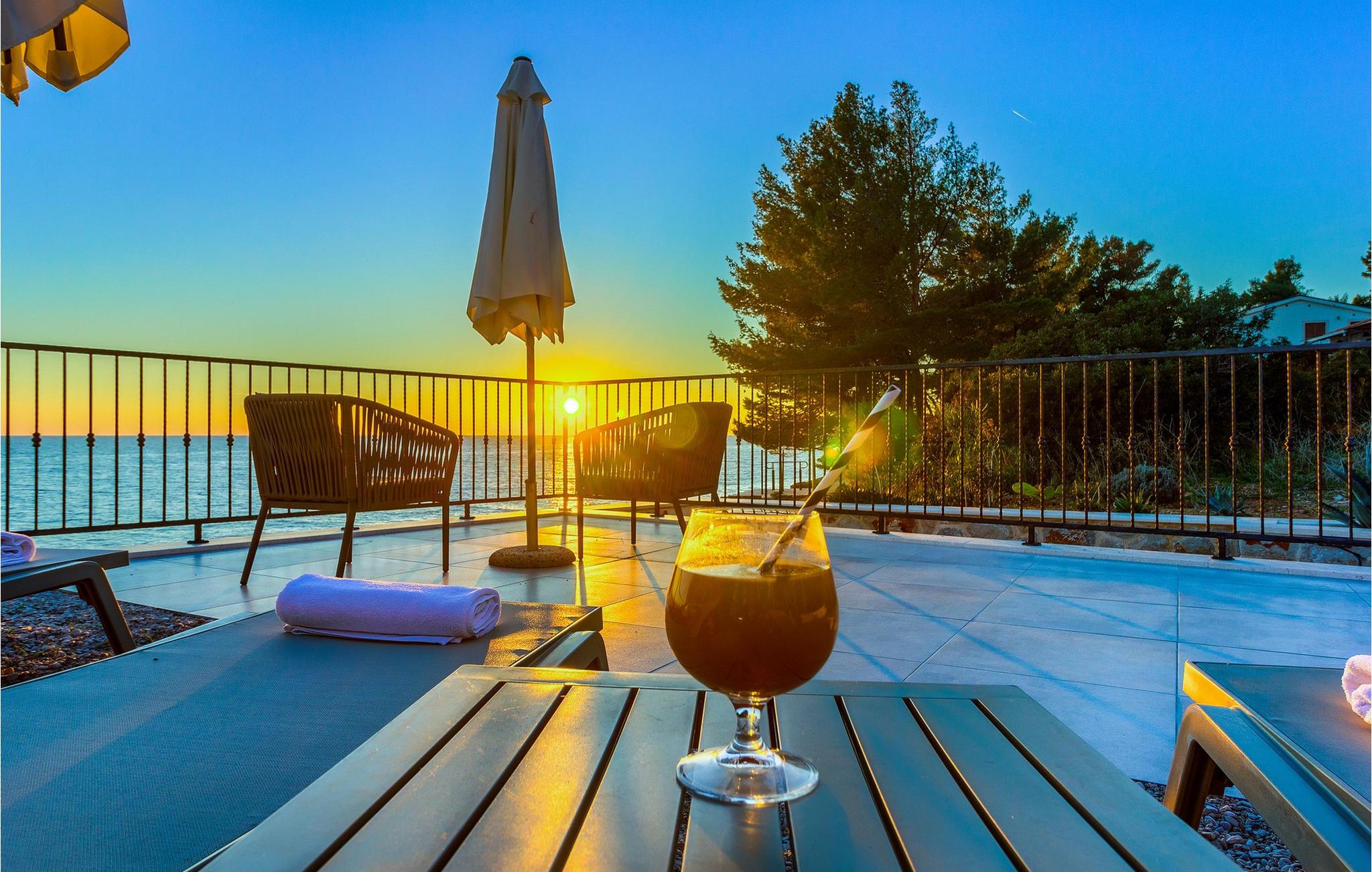 Villa Aurora di Sea ligger på ön Hvar, i den lilla staden Ivan Dolac. Denna villa ligger bara 5 meter från havet och erbjuder allt du alltid har drömt om: en lugn och tyst semester, en lyxig vistelse, rymliga sovrum och en pool. Ivan Dolac ligger 10 km från byn Jelsa och 38 km från staden Hvar och är förbunden med resten av ön genom en 1,5 km lång tunnel. Unna dig en underbar semester med familj eller vänner på den vackra ön Hvar! Villa Aurora di Sea byggdes 2021 i modern arkitektonisk stil och erbjuder gäster 245 m2 bostadsyta, medan fastighetens totala yta är 596 m2. Som nämnts ovan ligger villan bara 5 meter från Adriatiska havet, där du kan dyka, simma och sola på stranden. Villan är helt luftkonditionerad och erbjuder boende för högst 7, optimalt 5 personer. Den består av en bottenvåning och en övervåning. På bottenvåningen finns ett modernt kök med bar och två barstolar, en matsal med ett bord för 7 personer och ett vardagsrum med en hörnsoffa (som fungerar som en extrasäng för två personer.) ), ett soffbord och en TV. Det finns också ett fitnessrum med flera grundläggande maskiner som kommer att glädja fans av en aktiv semester, och bastun gör att du kan koppla av helt. Älskare av en utsökt droppe vin kommer också att bli glada över vinbaren, där du kan smaka på olika typer av vin. Det finns också ett badrum med toalett på bottenvåningen. På övervåningen finns tre sovrum med dubbelsängar, varav två har tillgång till en gemensam terrass. Det finns också två badrum med dusch, det ena är ensuite och det andra är ett vanligt badrum. Vid behov kan du använda en matare och en barnsäng. De flesta av rummen i villan har havsutsikt och utomhusterrassen kommer att glädja dig mest. På utomhusterrassen finns en uppvärmd pool på 40 m2, 1,4 m djup, och en separat barnpool. Bredvid poolen finns solstolar för solbad, och det finns också en kol- eller vedgrill, ett litet sommarkök och ett matbord under tak. Detta är en unik anläggning som är idealisk för barnfamiljer och ger dig en välbehövlig oas av lugn och ro på en lugn och liten plats. Det finns 4 privata parkeringsplatser på villans innergård och villan är helt inhägnad. Om du anländer med egen båt finns det också en båtplats för en båt (Korpo Molto) upp till 12 meter. Tack vare det högsta antalet soltimmar i Kroatien och de branta vingårdarna på södra sidan av ön Hvar får man i detta område druvor för produktion av viner av högsta kvalitet. Ivan Dolac grundades på 1400-talet och spår av typisk dalmatisk arkitektur syns i varje hörn. Förutom goda viner är Ivan Dolac också stolt över sin rena miljö full av aromatiska örter och annan medelhavsflora. *Du kan också använda två elcyklar mot en extra avgift. De kan också ordna en massage efter överenskommelse. *Gästerna välkomnas med ett välkomstpaket med lokala traditionella produkter från ön Hvar. Husdjur är tillåtna i detta boende enligt ägarens bedömning eller mot en avgift.