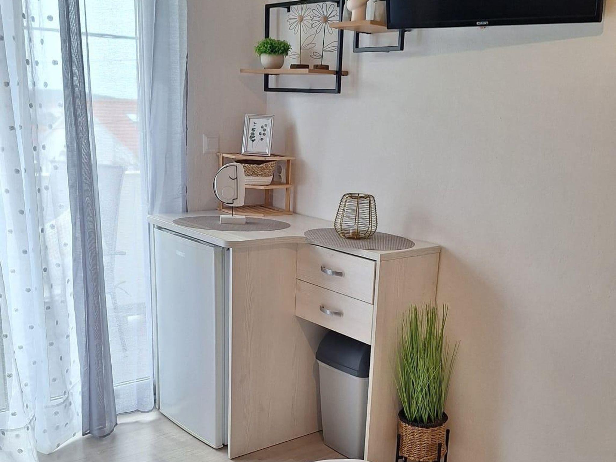 Zimmer bietet Platz für 2 Gäste. Die Betten sind in Schlafzimmern, die es 1 gibt, innerhalb einer Gesamtfläche von 19m2, angeordnet. Die Gäste haben einen eigenen Balkon zur Verfügung, auf der sie in warmen Sommernächten genießen können. Das Zimmer bietet Meerblick. Die reservierte Unterkunftseinheit ist ein Zimmer mit eigenem Badezimmer ohne die Möglichkeit der Nutzung einer Küche. IM PREIS INBEGRIFFEN: Kurtaxe, Endreinigung, Klimatisierung, Parkplatz, Internet, Kinderbett, Bügeleisen, Bügelbrett, Föhn. VERBINDLICHE ZUSÄTZLICHE KOSTEN: Aufzahlung für Kurzaufenthalte (prozentualer Zuschlag pro Nächtigungsanzahl: 30% - 1, 20% - 2, 10% - 3). Die Verfügbarkeit zusätzlicher Dienstleistungen in Ihrem reservierten Termin und die Preise derselben (falls nicht aufgeführt) müssen im Voraus überprüft werden. Zusätzliche Dienstleistungen die in der Zahlungsaufforderung nicht aufgeführt sind werden direkt beim Vermieter bezahlt, angenommen der Gast nutzt auch diese.