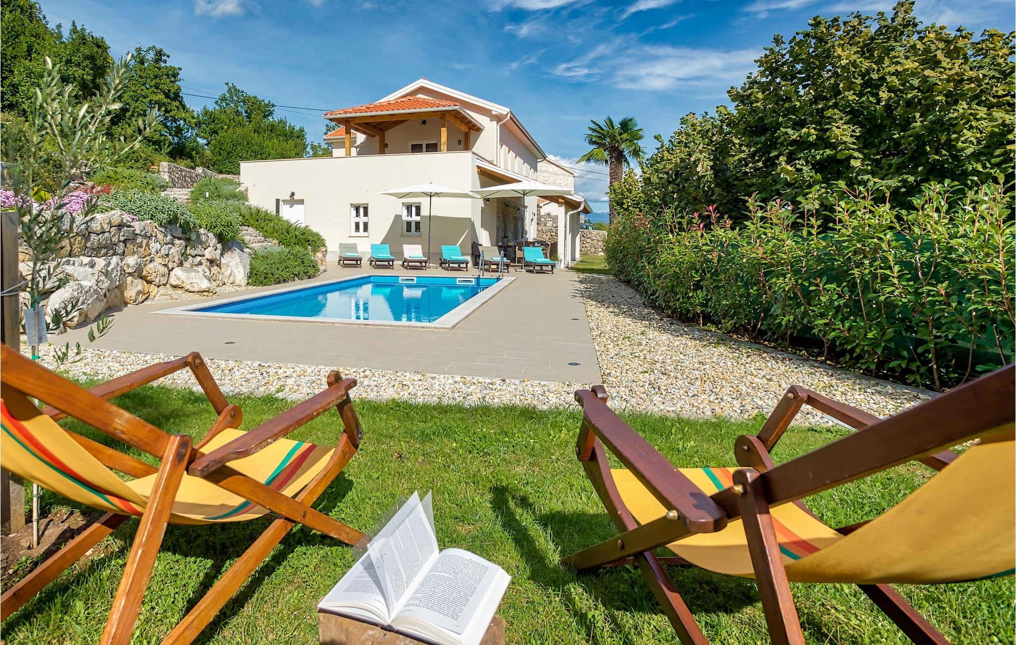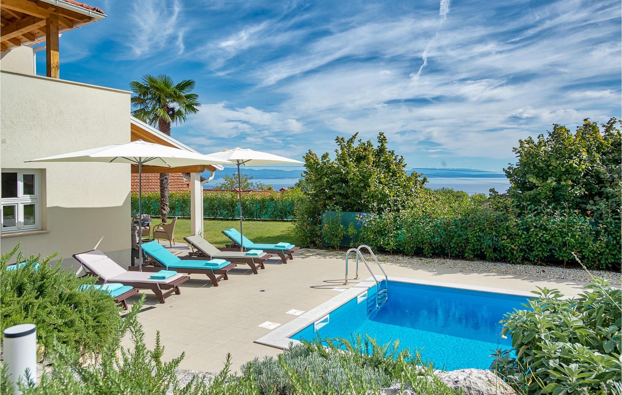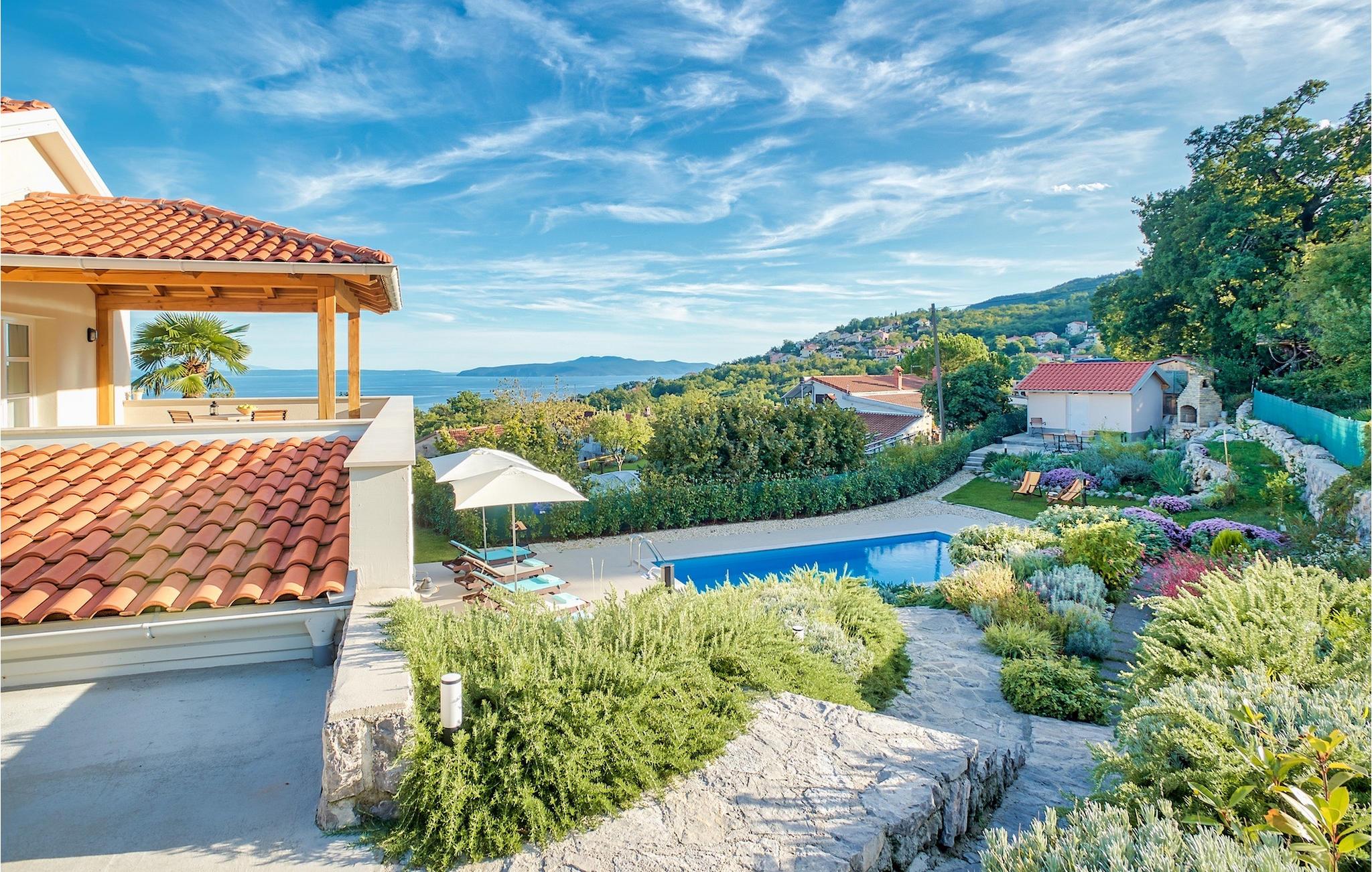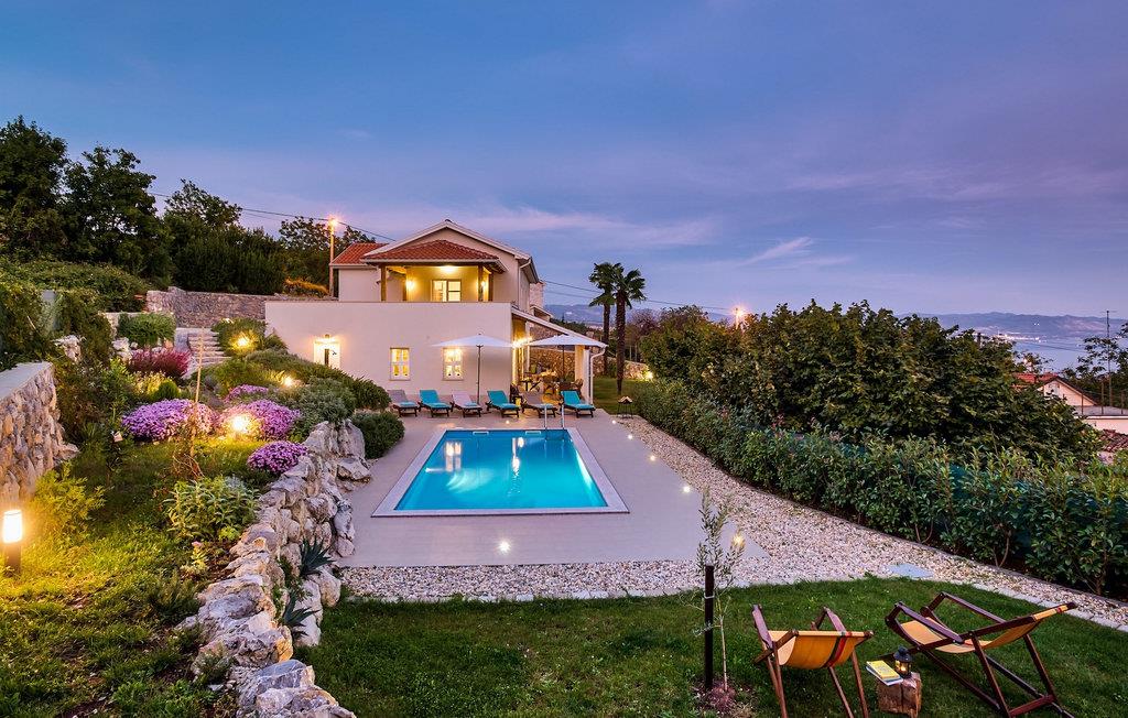 Denna vackra villa ligger nära Opatija, pärlan i Kvarnerviken, och erbjuder en fantastisk utsikt över bukten. Familjevillan med två våningar har 4 modernt inredda sovrum och kan rymma upp till 8 personer totalt. Den stora, öppna bottenvåningen består av ett vardagsrum med en bekväm soffa och en öppen spis, en matplats och ett modernt, fullt utrustat kök med en matlagningsö. Ett dubbelrum med eget badrum ligger också på bottenvåningen och har direkt tillgång till den vackra trädgården. På övervåningen finns ytterligare 3 dubbelrum, alla med en-suite badrum. På första våningen finns en terrass, en särskilt privat plats där du kan njuta av den fantastiska havsutsikten med ett glas Malvasia. Trädgården är höjdpunkten i villan, utformad med stor uppmärksamhet på detaljer. Framför villan finns en stor privat pool och solstolar där du kan koppla av. Bredvid poolen finns en grillplats där du kan tillaga läckra måltider på kolgrillen och servera dem till din familj i den täckta uteserveringen. Villan erbjuder många aktiviteter som bordtennis, bordsfotboll och biljardbord, så du kommer säkert inte att bli uttråkad. Villa Pia är perfekt för familjer och grupper som letar efter en underbar semester och den bästa beskrivningen för Icici och hela Kvarnerviken är förmodligen - hisnande. Bara 2 km från Opatija, Adriatiska havets pärla, och 18 km från Rijeka, efter att ha besökt denna region kommer det att vara svårt att åka hem igen. Inom en radie av 5 km hittar du många olika stränder där du kan njuta av den varma