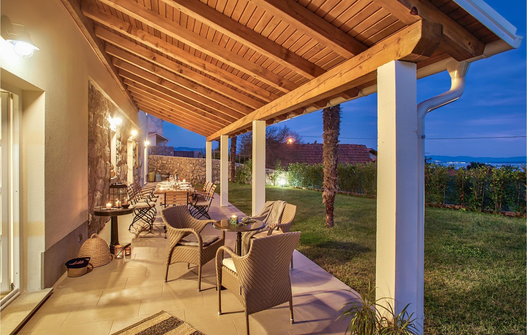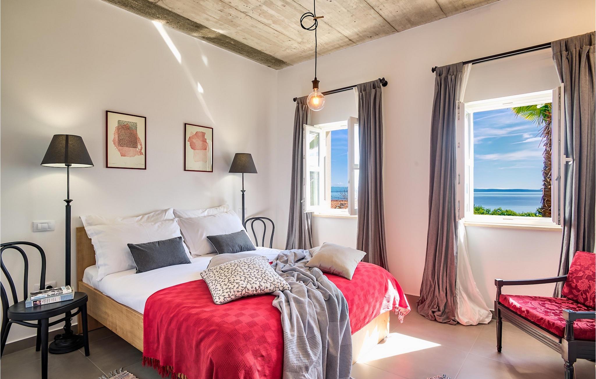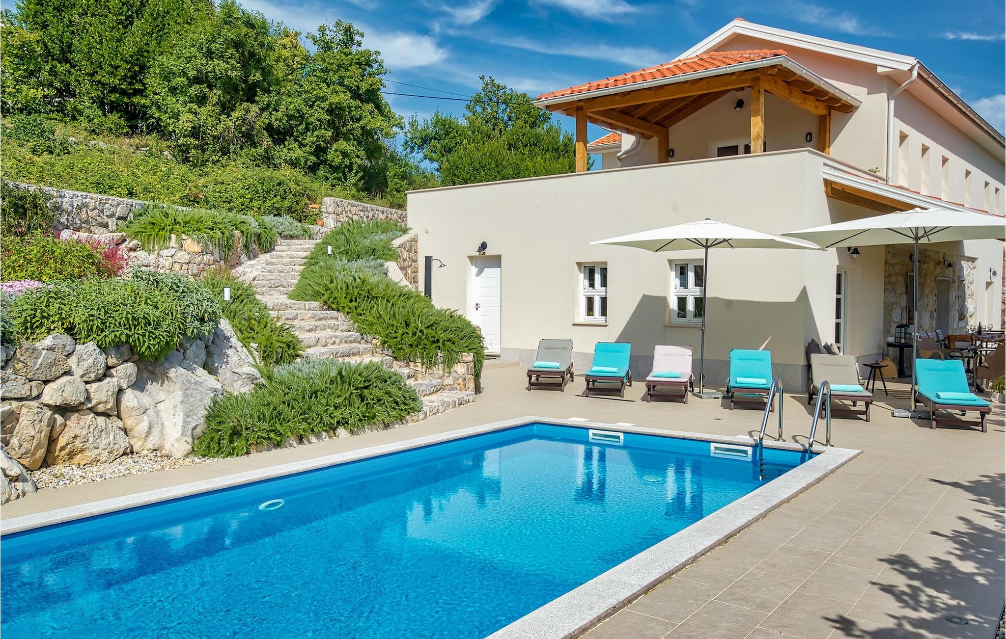Denna vackra villa ligger nära Opatija, pärlan i Kvarnerviken, och erbjuder en fantastisk utsikt över bukten. Familjevillan med två våningar har 4 modernt inredda sovrum och kan rymma upp till 8 personer totalt. Den stora, öppna bottenvåningen består av ett vardagsrum med en bekväm soffa och en öppen spis, en matplats och ett modernt, fullt utrustat kök med en matlagningsö. Ett dubbelrum med eget badrum ligger också på bottenvåningen och har direkt tillgång till den vackra trädgården. På övervåningen finns ytterligare 3 dubbelrum, alla med en-suite badrum. På första våningen finns en terrass, en särskilt privat plats där du kan njuta av den fantastiska havsutsikten med ett glas Malvasia. Trädgården är höjdpunkten i villan, utformad med stor uppmärksamhet på detaljer. Framför villan finns en stor privat pool och solstolar där du kan koppla av. Bredvid poolen finns en grillplats där du kan tillaga läckra måltider på kolgrillen och servera dem till din familj i den täckta uteserveringen. Villan erbjuder många aktiviteter som bordtennis, bordsfotboll och biljardbord, så du kommer säkert inte att bli uttråkad. Villa Pia är perfekt för familjer och grupper som letar efter en underbar semester och den bästa beskrivningen för Icici och hela Kvarnerviken är förmodligen - hisnande. Bara 2 km från Opatija, Adriatiska havets pärla, och 18 km från Rijeka, efter att ha besökt denna region kommer det att vara svårt att åka hem igen. Inom en radie av 5 km hittar du många olika stränder där du kan njuta av den varma