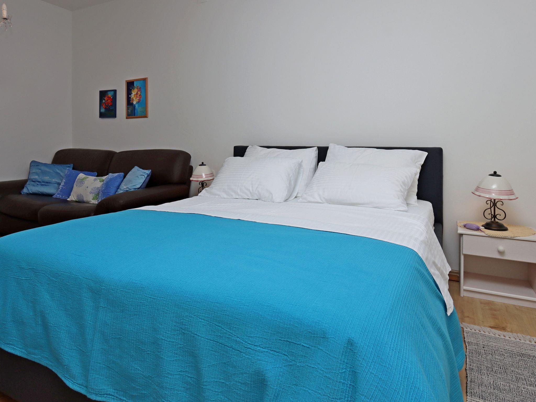 Studio bietet Platz für 2 Gäste. Die Betten sind in Schlafzimmern, die es 1 gibt, innerhalb einer Gesamtfläche von 28m2, angeordnet. Die Gäste haben eine eigene Terrasse zur Verfügung, auf der sie in warmen Sommernächten genießen können. IM PREIS INBEGRIFFEN: Kurtaxe, Endreinigung, Klimatisierung, Parkplatz, Internet, Bügeleisen, Bügelbrett, Föhn. VERBINDLICHE ZUSÄTZLICHE KOSTEN: Aufzahlung für Kurzaufenthalte (prozentualer Zuschlag pro Nächtigungsanzahl: 30% - 1, 20% - 2, 10% - 3). Die Verfügbarkeit zusätzlicher Dienstleistungen in Ihrem reservierten Termin und die Preise derselben (falls nicht aufgeführt) müssen im Voraus überprüft werden. Zusätzliche Dienstleistungen die in der Zahlungsaufforderung nicht aufgeführt sind werden direkt beim Vermieter bezahlt, angenommen der Gast nutzt auch diese. Ermäßigung auf den Grundpreis: Gratistag 14=13 (bei einem Aufenthalt von 14 Tagen oder mehr erhalten Sie einen Gratistag für den Aufenthalt bis 31.12.26).
