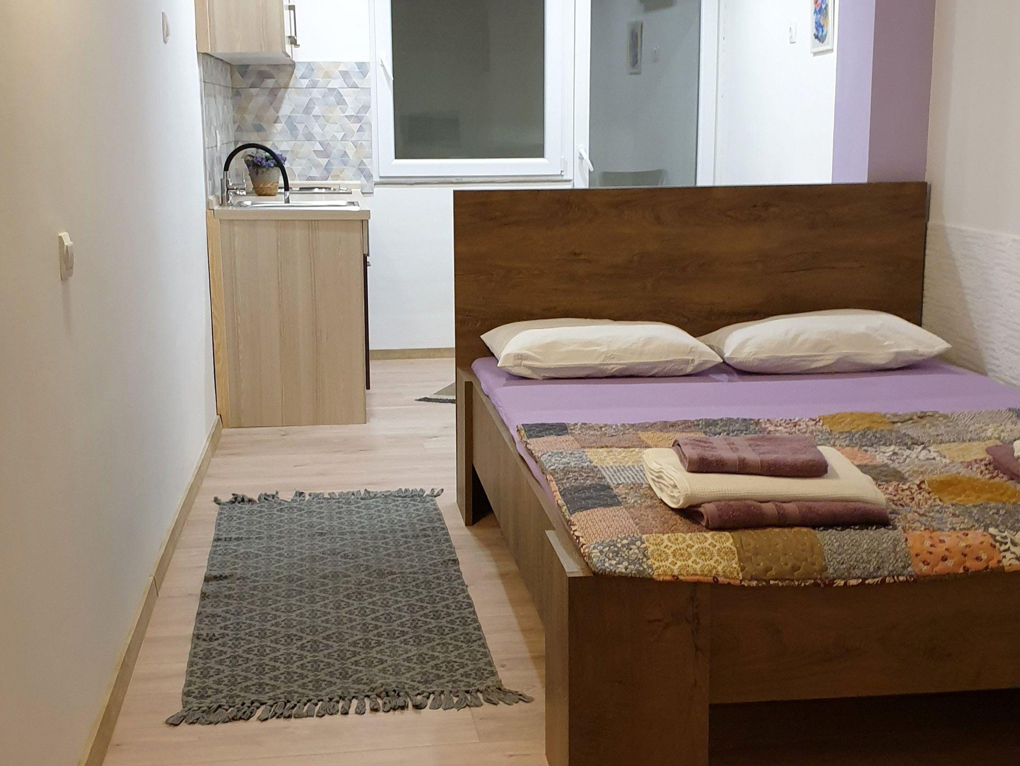 Studio bietet Platz für 2 Gäste. Die Betten sind in Schlafzimmern, die es 1 gibt, innerhalb einer Gesamtfläche von 18m2, angeordnet. Die Gäste haben einen eigenen Balkon zur Verfügung, auf der sie in warmen Sommernächten genießen können. Es ist erlaubt, Speisen auf dem Gemeinschafts-Grill vorzubereiten. IM PREIS INBEGRIFFEN: Kurtaxe, Endreinigung, Klimatisierung, Parkplatz, Internet, Bügeleisen, Bügelbrett, Föhn. VERBINDLICHE ZUSÄTZLICHE KOSTEN: Aufzahlung für Kurzaufenthalte (prozentualer Zuschlag pro Nächtigungsanzahl: 30% - 1, 20% - 2, 10% - 3). Die Verfügbarkeit zusätzlicher Dienstleistungen in Ihrem reservierten Termin und die Preise derselben (falls nicht aufgeführt) müssen im Voraus überprüft werden. Zusätzliche Dienstleistungen die in der Zahlungsaufforderung nicht aufgeführt sind werden direkt beim Vermieter bezahlt, angenommen der Gast nutzt auch diese.