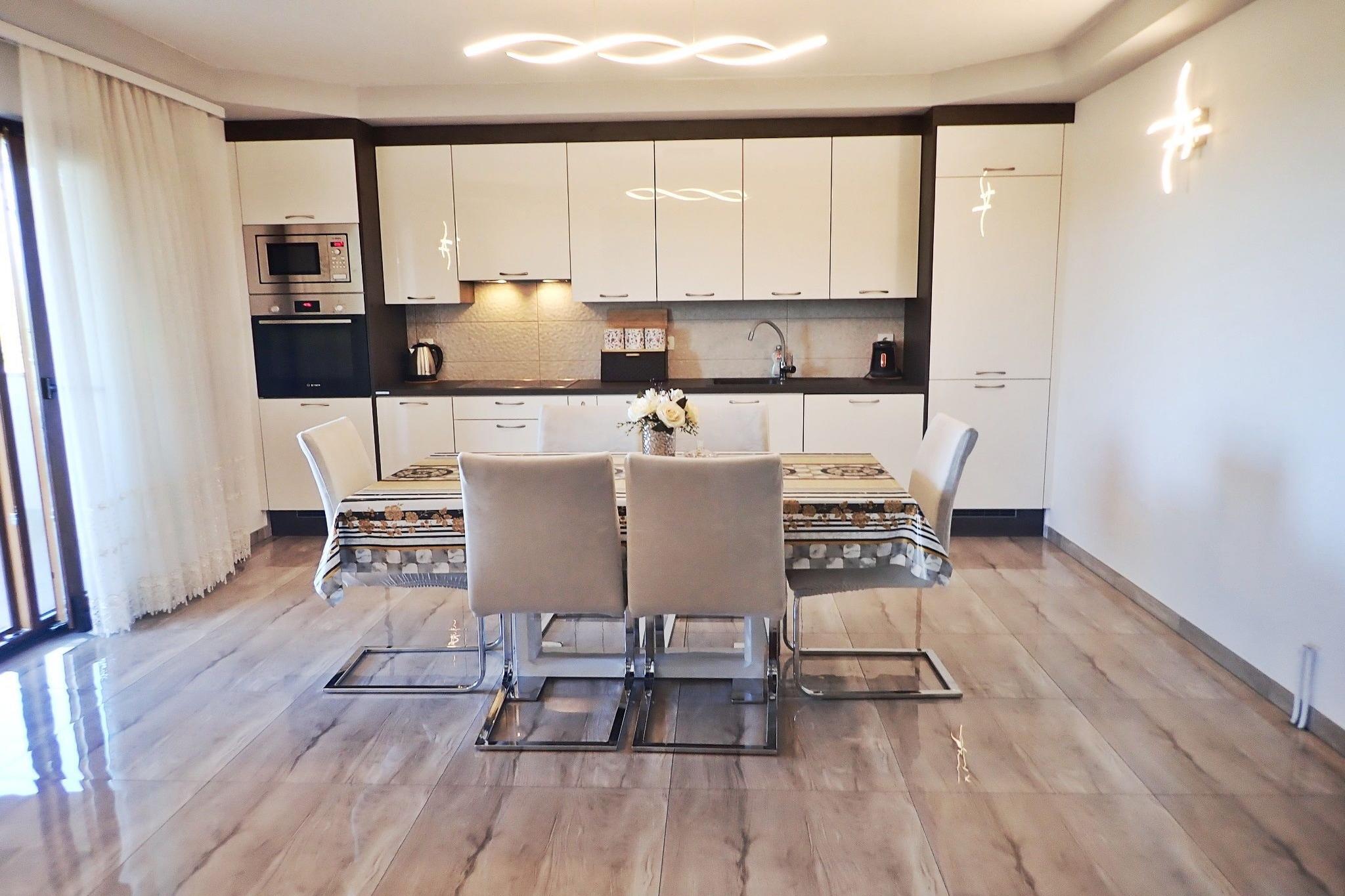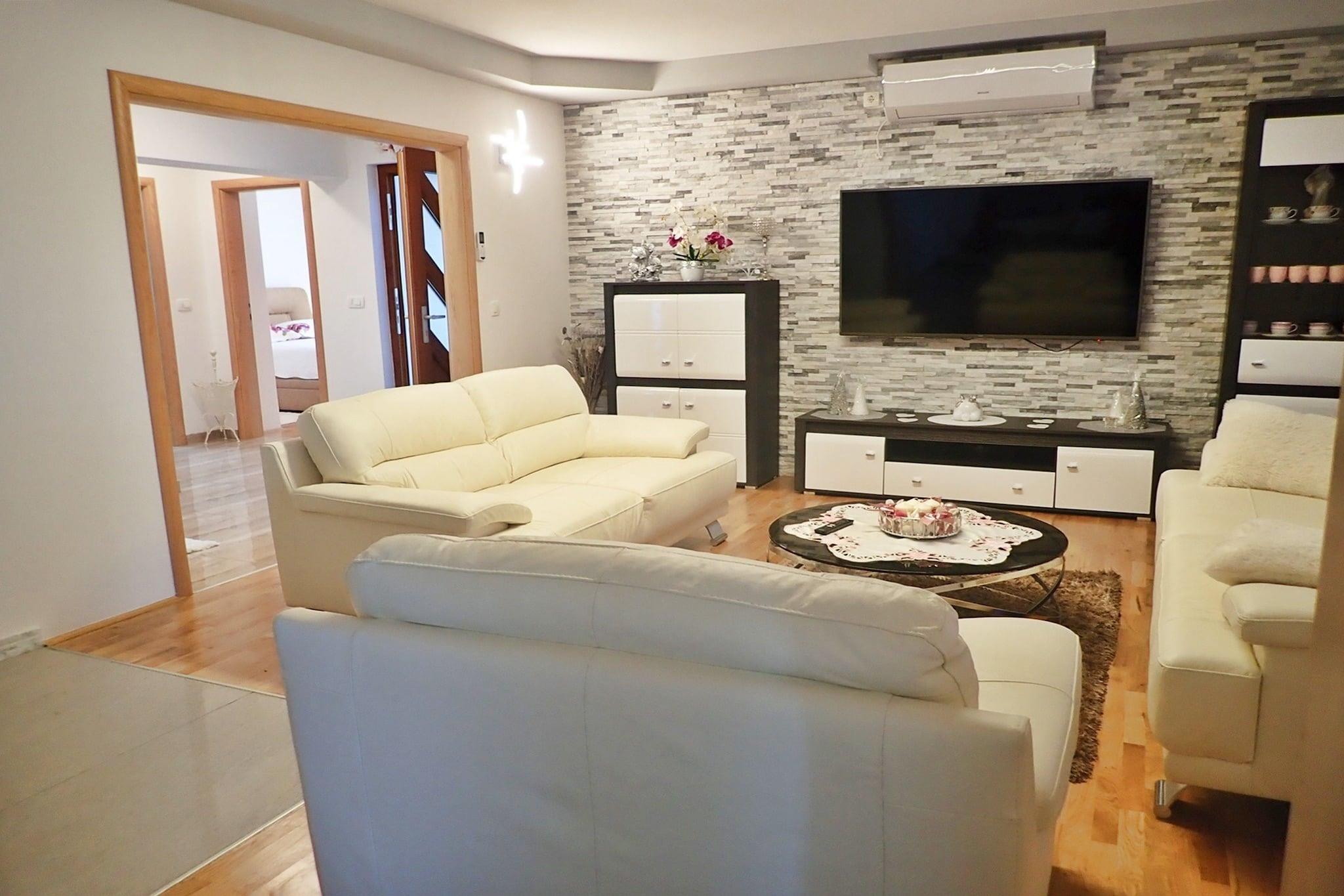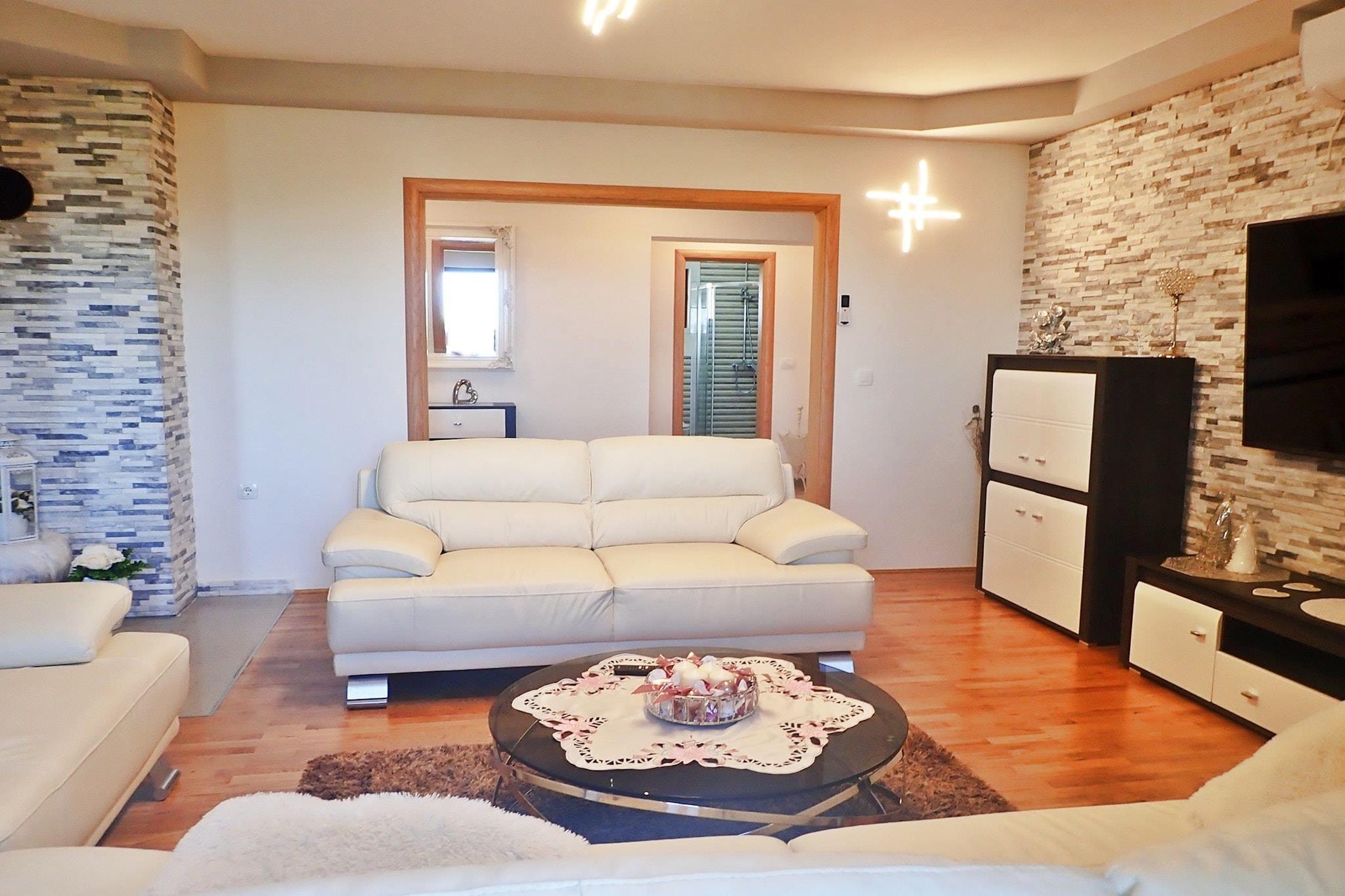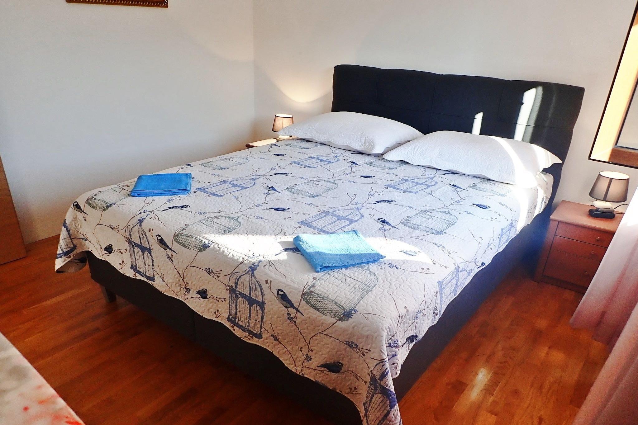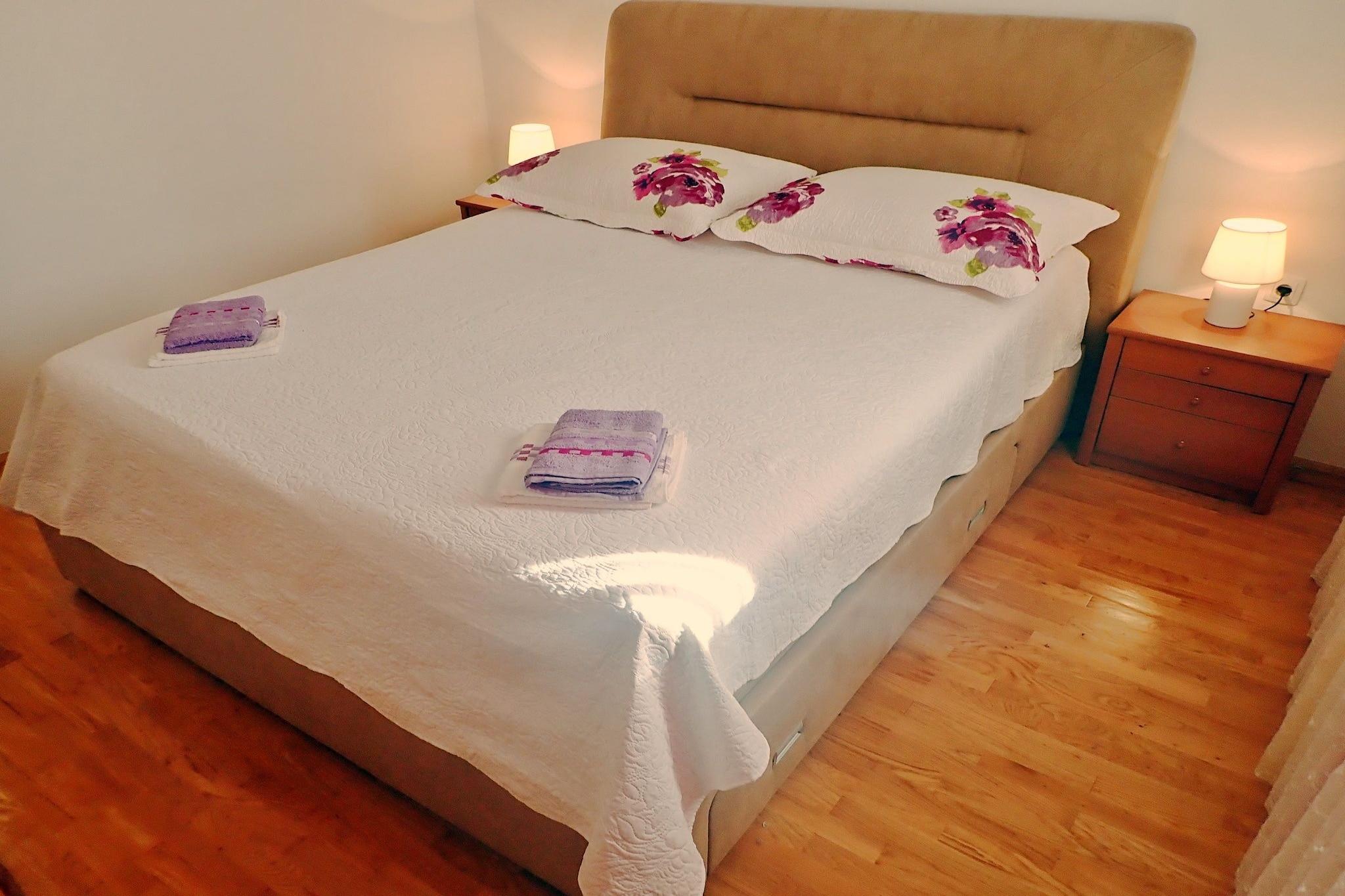 Lägenhetshus i ett lugnt läge med vacker utsikt över Velebitbergen och den intilliggande skogen. Stigen till stranden, som ligger bara 150 m bort, går genom en tallskog framför huset. Lägenheten är rymlig och mysig och har alla bekvämligheter som lovar en avkopplande semester. Framför huset finns en vacker innergård med trädgårdsmöbler och en grill för gemensamt bruk. Mellan havet och bergen - den lilla staden Rovanjska ligger i en liten vik. Denna pittoreska lilla semesterplats lovar lugn och avkoppling. De som vill vara aktiva på semestern hittar några möjligheter till vattensporter här och tack vare närheten till fem naturparker även för långa promenader och mountainbiketurer. Låt dig förtrollas av det vackra kroatiska landskapet under din semester. Detaljer: Förbrukningsbaserade energikostnader, sänglinne, handdukar, slutstädning WiFi, turistskatt, registreringsavgift Aktiviteter i närheten. Båtturer och vattensporter med havskajak, dykning, snorkling, kanotsafari och fiske är alla tillgängliga i närheten Vandring, klättring och mountainbike i vackra omgivningar mycket möjligt i Paklenica National Park Jeep safari på spåren från Winnetou. i Velebitbergen till inspelningsplatserna erbjuds också här. Plitvicesjöarna, städerna Zadar och Nin och nationalparken Kornati Island erbjuder ännu fler utflyktsalternativ Inte lämplig för personer med nedsatt rörlighet