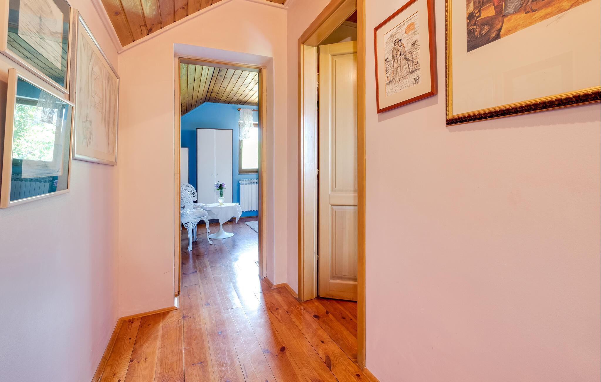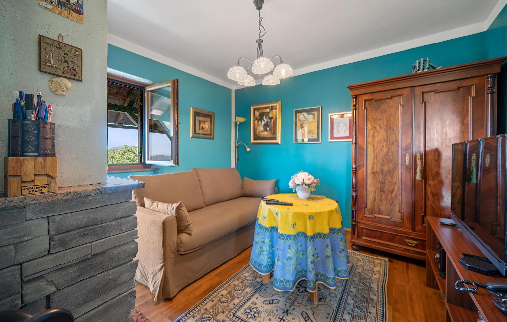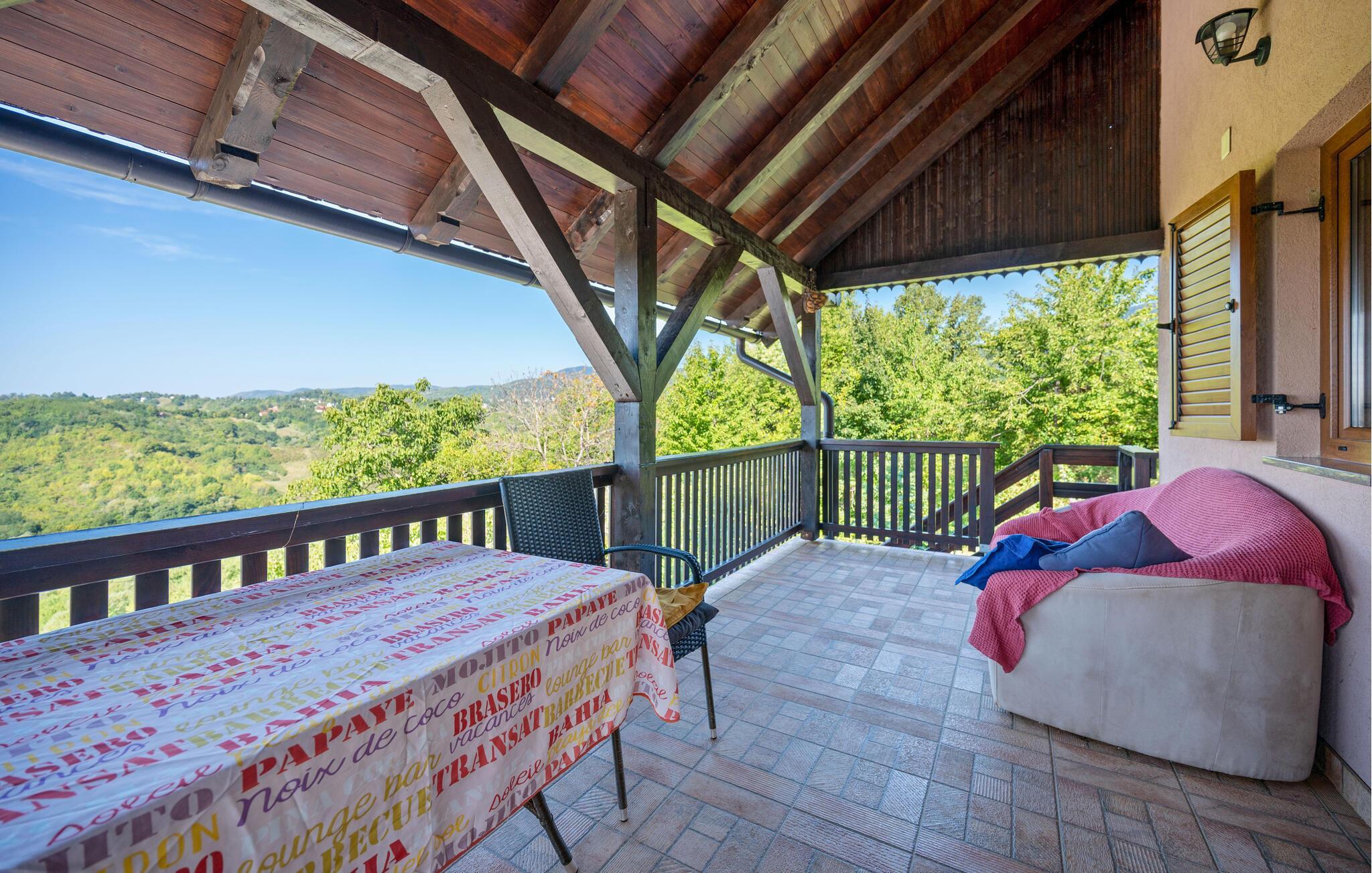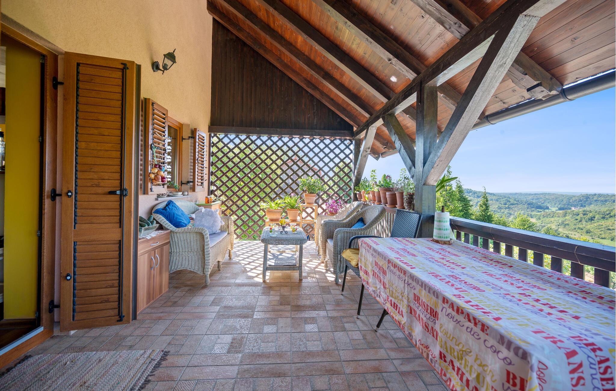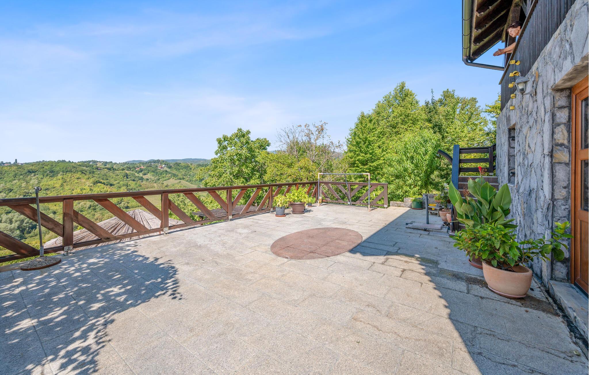 Detta rymliga och traditionella semesterhus i Gorica Svetojansk imponerar med sin vänliga inredning och den varma charmen i ett riktigt lanthus. De vackra färgerna, den mysiga öppna spisen och de högkvalitativa möblerna skapar en inbjudande atmosfär där du omedelbart kommer att känna dig som hemma.