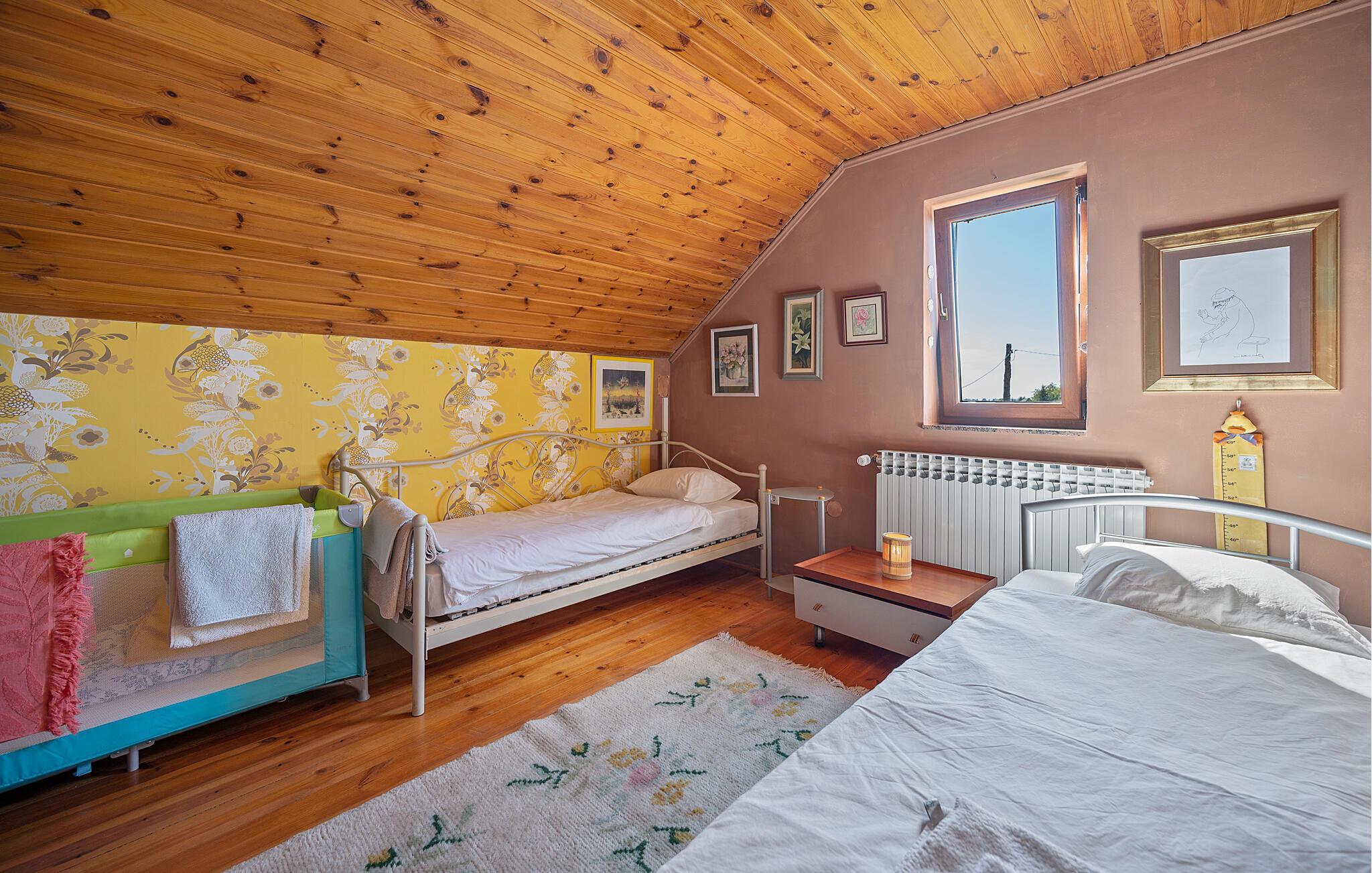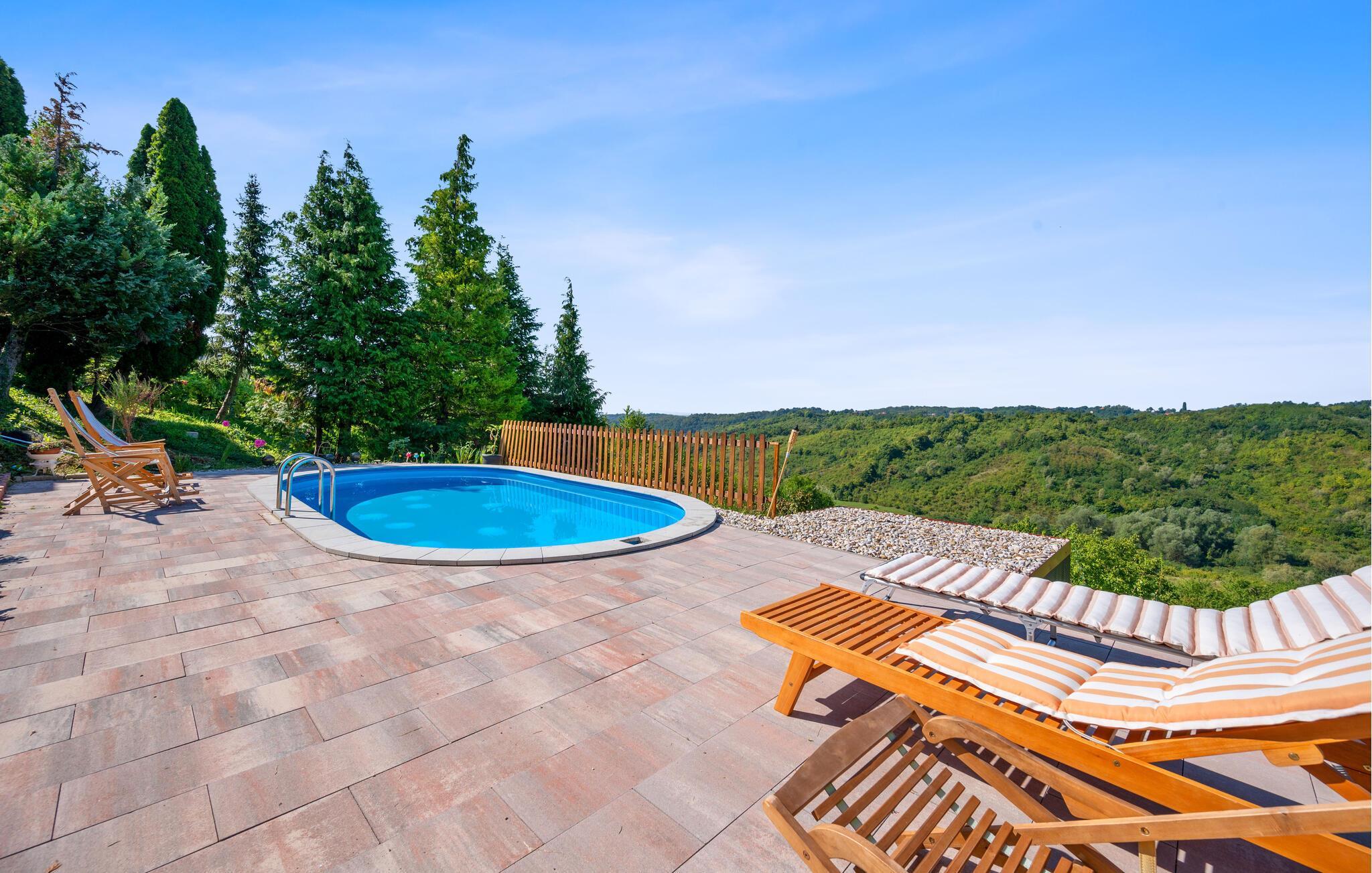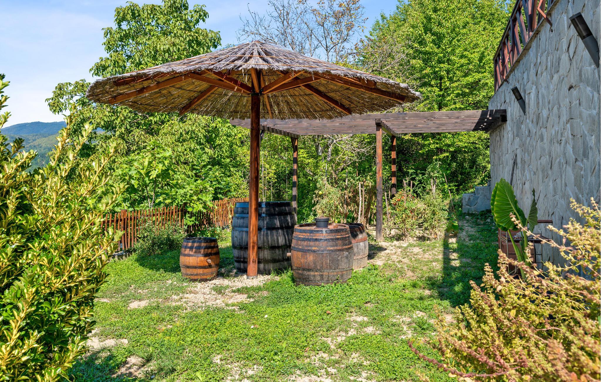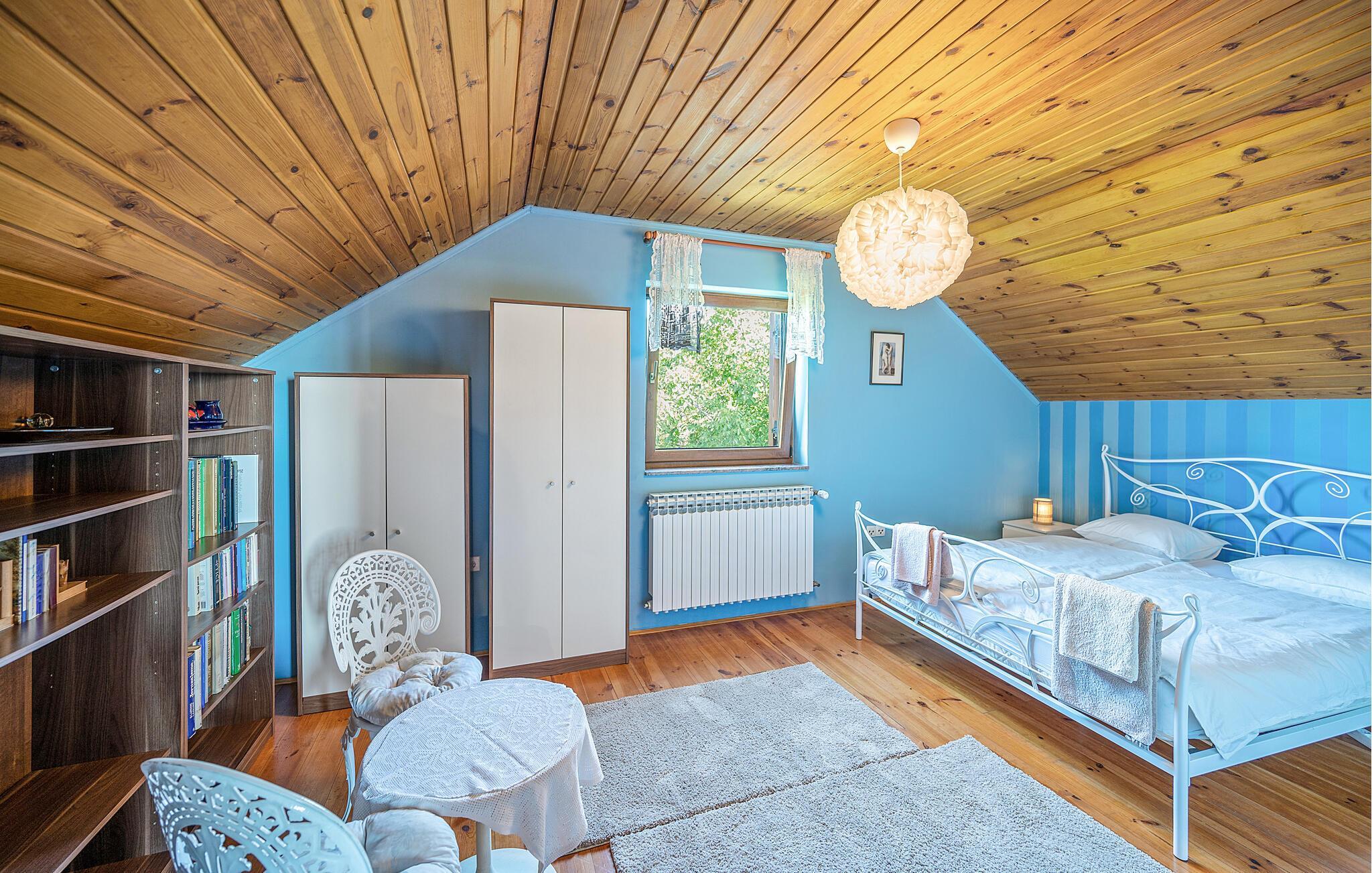 Detta rymliga och traditionella semesterhus i Gorica Svetojansk imponerar med sin vänliga inredning och den varma charmen i ett riktigt lanthus. De vackra färgerna, den mysiga öppna spisen och de högkvalitativa möblerna skapar en inbjudande atmosfär där du omedelbart kommer att känna dig som hemma.