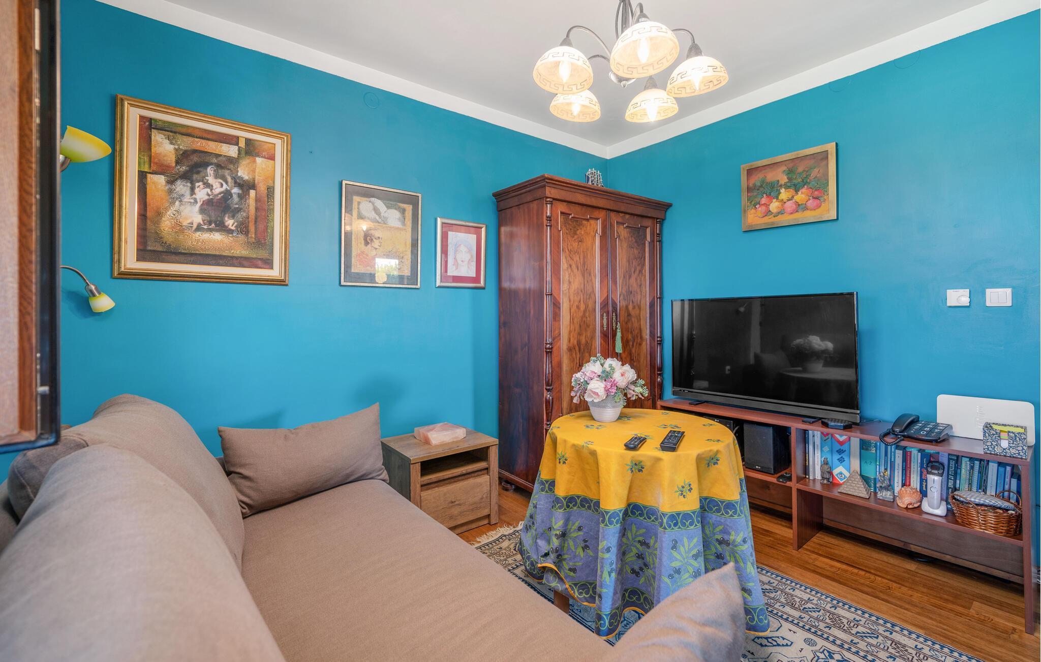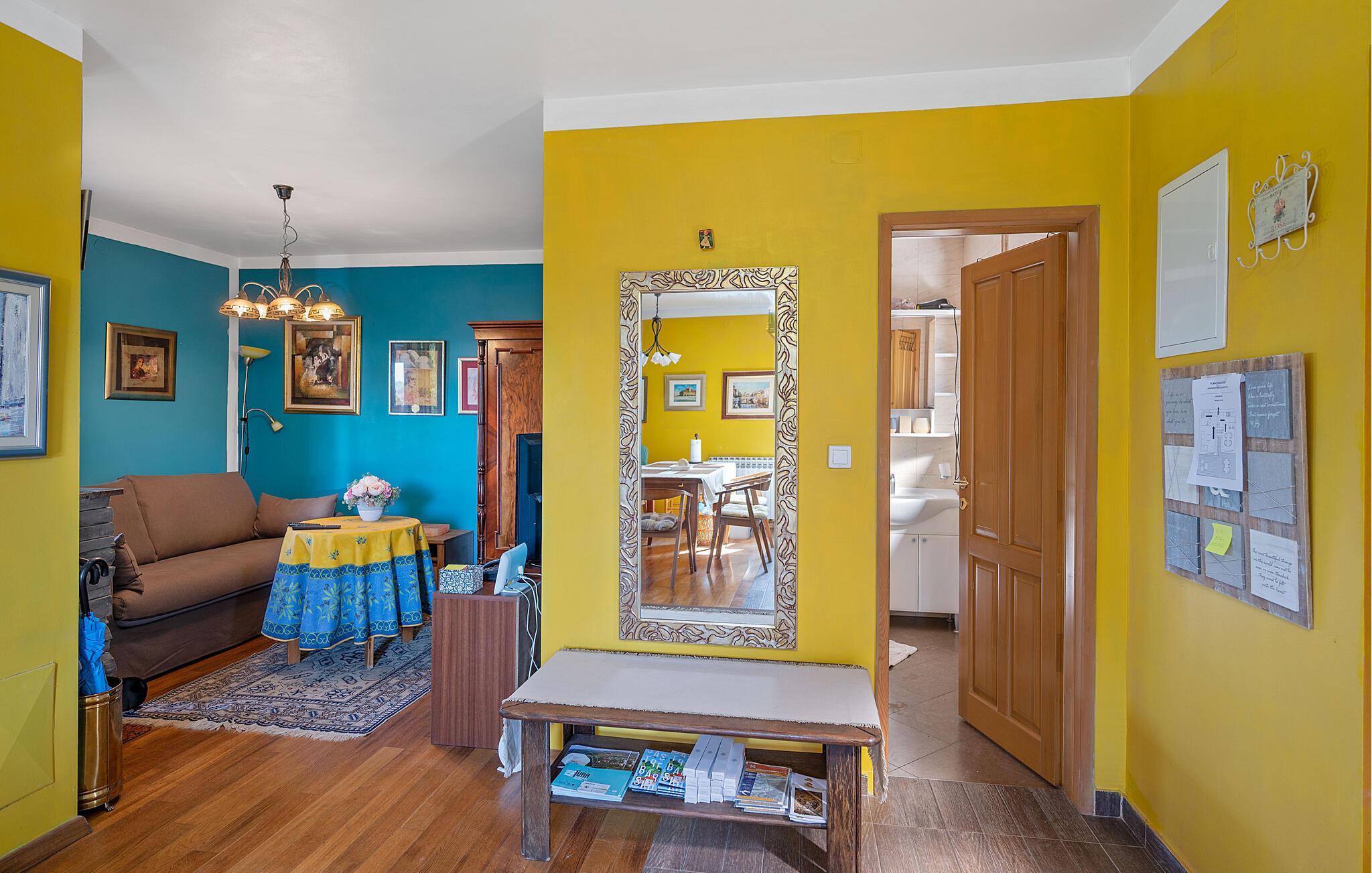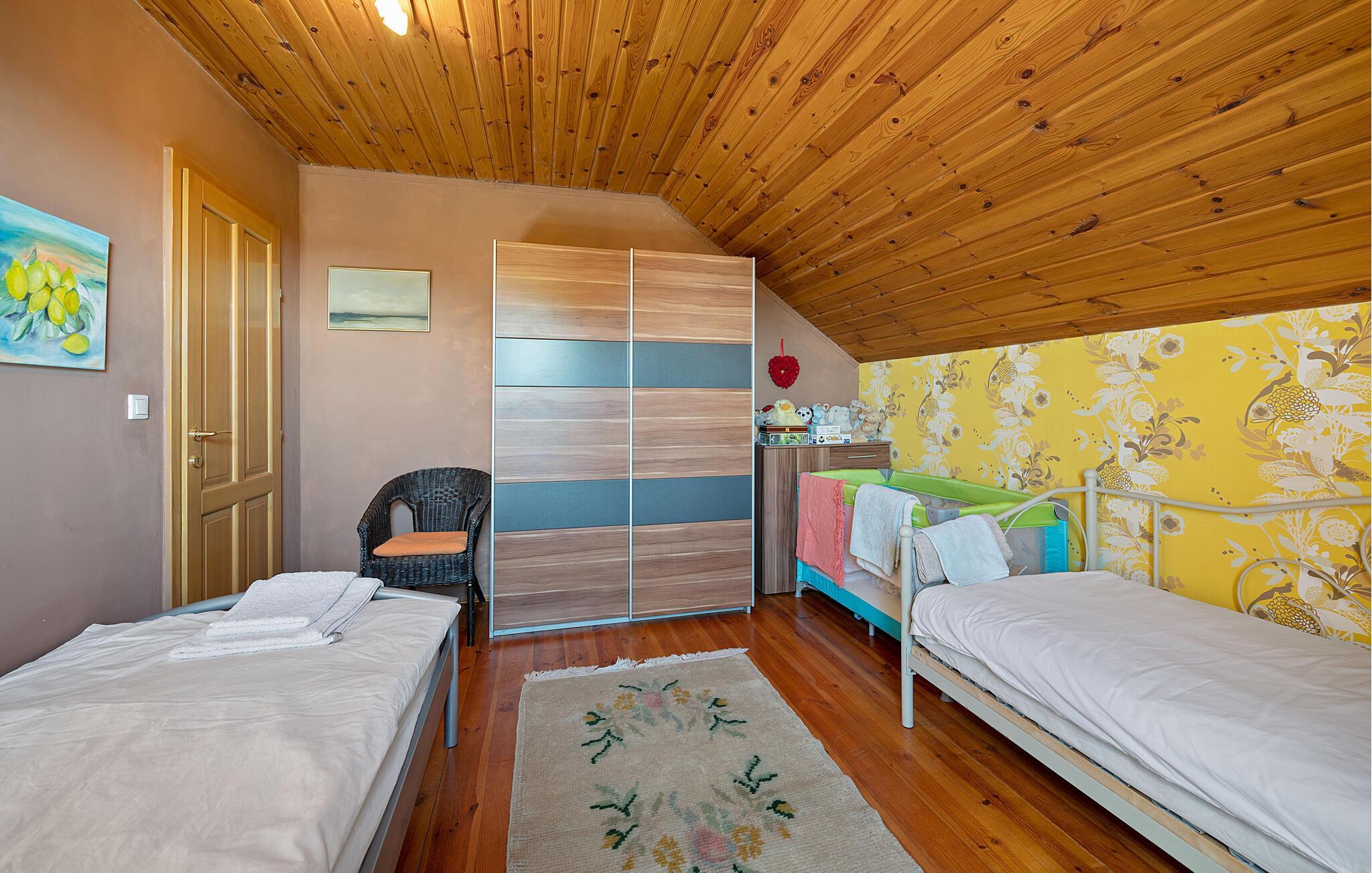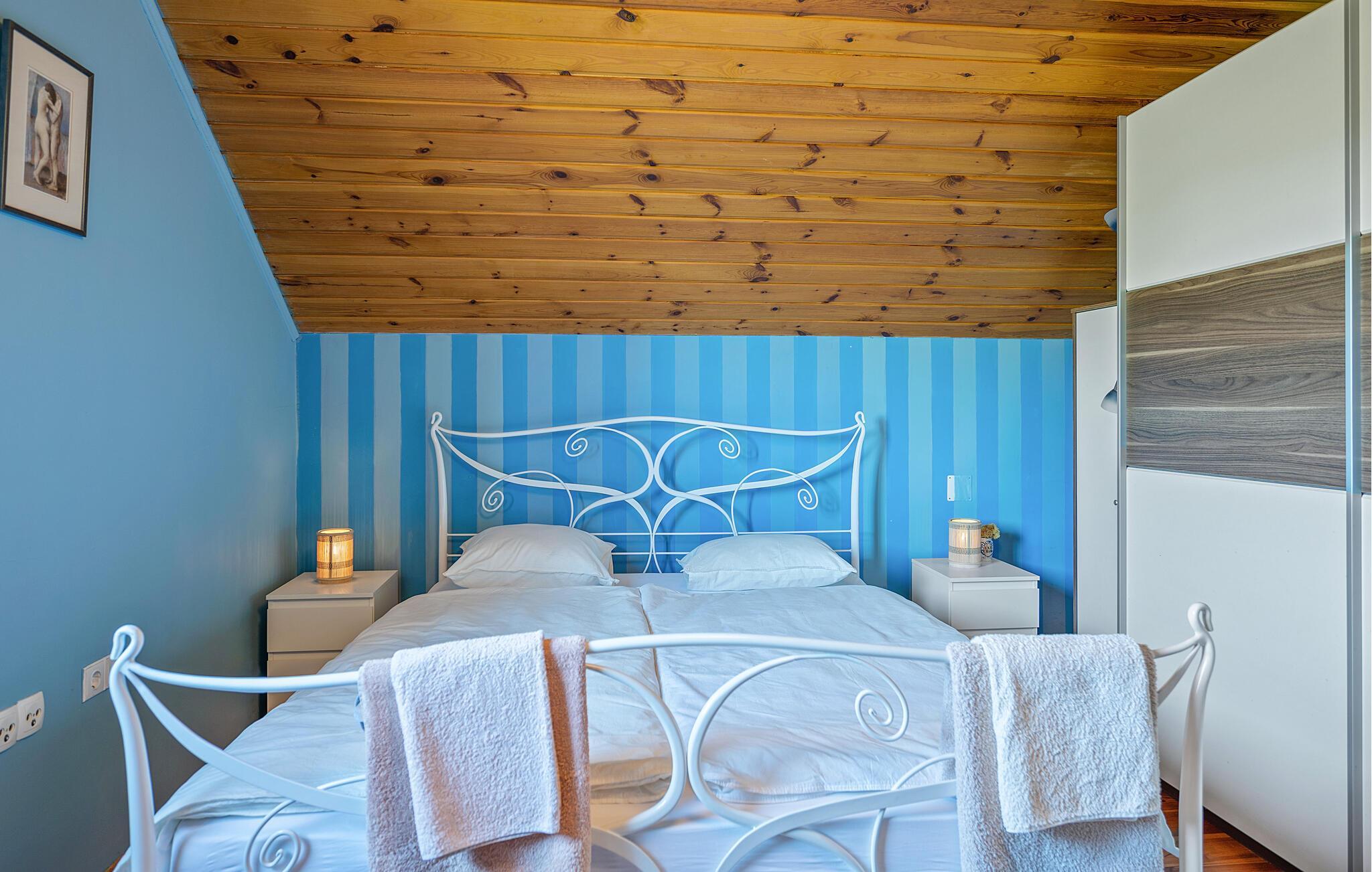 Detta rymliga och traditionella semesterhus i Gorica Svetojansk imponerar med sin vänliga inredning och den varma charmen i ett riktigt lanthus. De vackra färgerna, den mysiga öppna spisen och de högkvalitativa möblerna skapar en inbjudande atmosfär där du omedelbart kommer att känna dig som hemma.