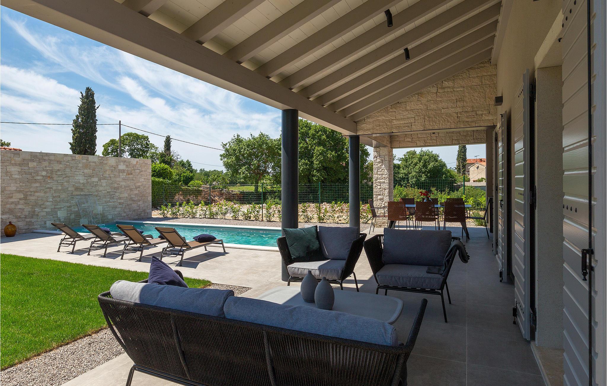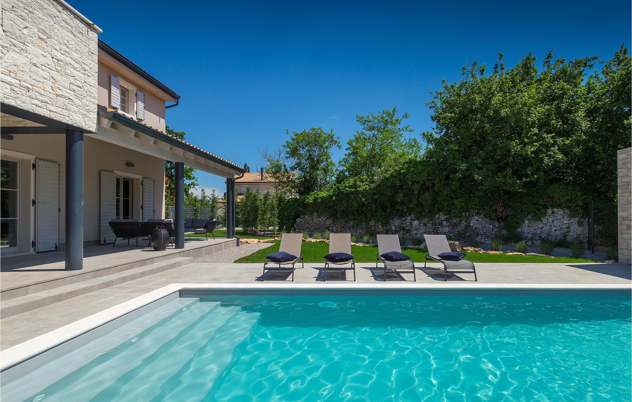 Villa Sivati är det perfekta boendet för en semester i komfort och stil. Med sin inbjudande pool och vackra solterrass kommer denna underbara fastighet säkert att fängsla dig. Den mysiga verandan har en inbyggd grill samt mat- och loungeområden utomhus, medan interiören är smakfullt inredd med en blandning av moderna och vintagemöbler, attraktiv belysning och stora franska fönster som håller rummen särskilt ljusa och luftiga. Huset ger en varm, avkopplande atmosfär som tilltalar både traditionella och moderna smaker. Bottenvåningen är en rymlig, öppen planlösning uppdelad i vardagsrum, matsal och kök med en elegant öppen spis och bekväma soffor. Ett av de fyra stilfullt inredda sovrummen ligger på bottenvåningen, medan de övriga tre ligger på övervåningen, alla med TV, luftkonditionering och eget vackert badrum. Första våningen har också en härlig balkong där du kan njuta av den magnifika utsikten över det omgivande landskapet, precis mellan de charmiga små medeltida byarna Minj, Svetvinenat och Kanfanar, kunde denna vackra villa inte vara bättre utformad för en semester som kombinerar lata dagar med dolce far niente med sightseeingturer i ett av de vackraste områdena i Istrien. De pittoreska medeltida kullstäderna, traditionella byar där tiden har stått stilla och landskap av oöverträffad skönhet är idealiska för natursköna bilturer, cykling och vandring. Det utmärkta traditionella köket och de förstklassiga vinerna, som regionen är världsberömd för, är de sista ingredienserna i en oförglömlig semester. Du kan också köpa mat direkt från lokala producenter. Och om du är sugen på något annorlunda ligger Adriatiska havet med sina vackra stränder och populära turistmål bara en kort bilresa bort.