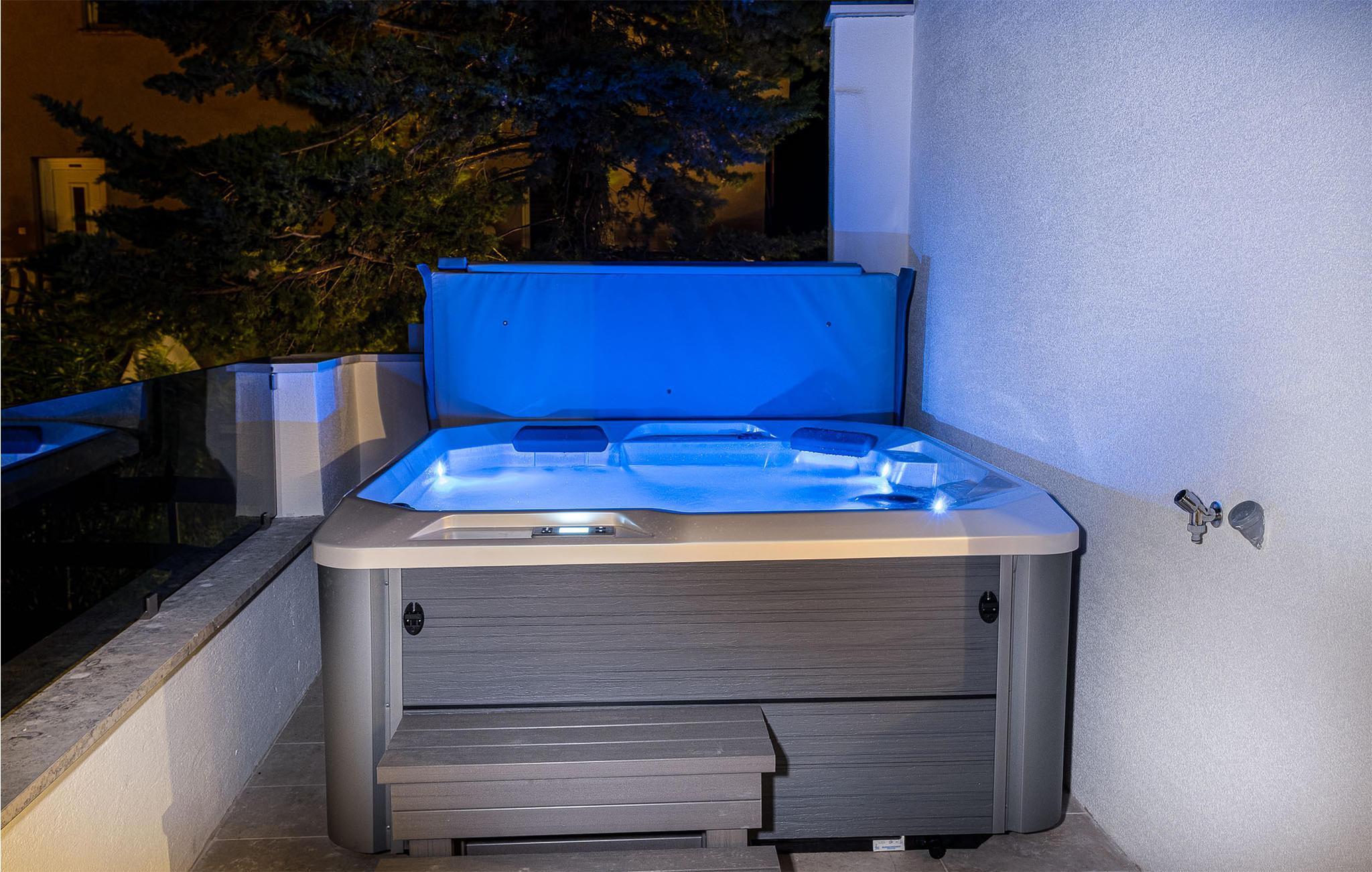 Denna praktiskt inredda och välutrustade lägenhet ligger på bottenvåningen. Öppna terrassdörren varje morgon och andas in den milda havsluften. Njut av ditt morgonkaffe och havsutsikten på terrassen. Om du vill fräscha upp dig och bada ligger havet bara några steg bort. Efter en dag ute rekommenderas jacuzzin utanför om du vill koppla av ordentligt. Avsluta dagen fint här med din favoritcocktail.