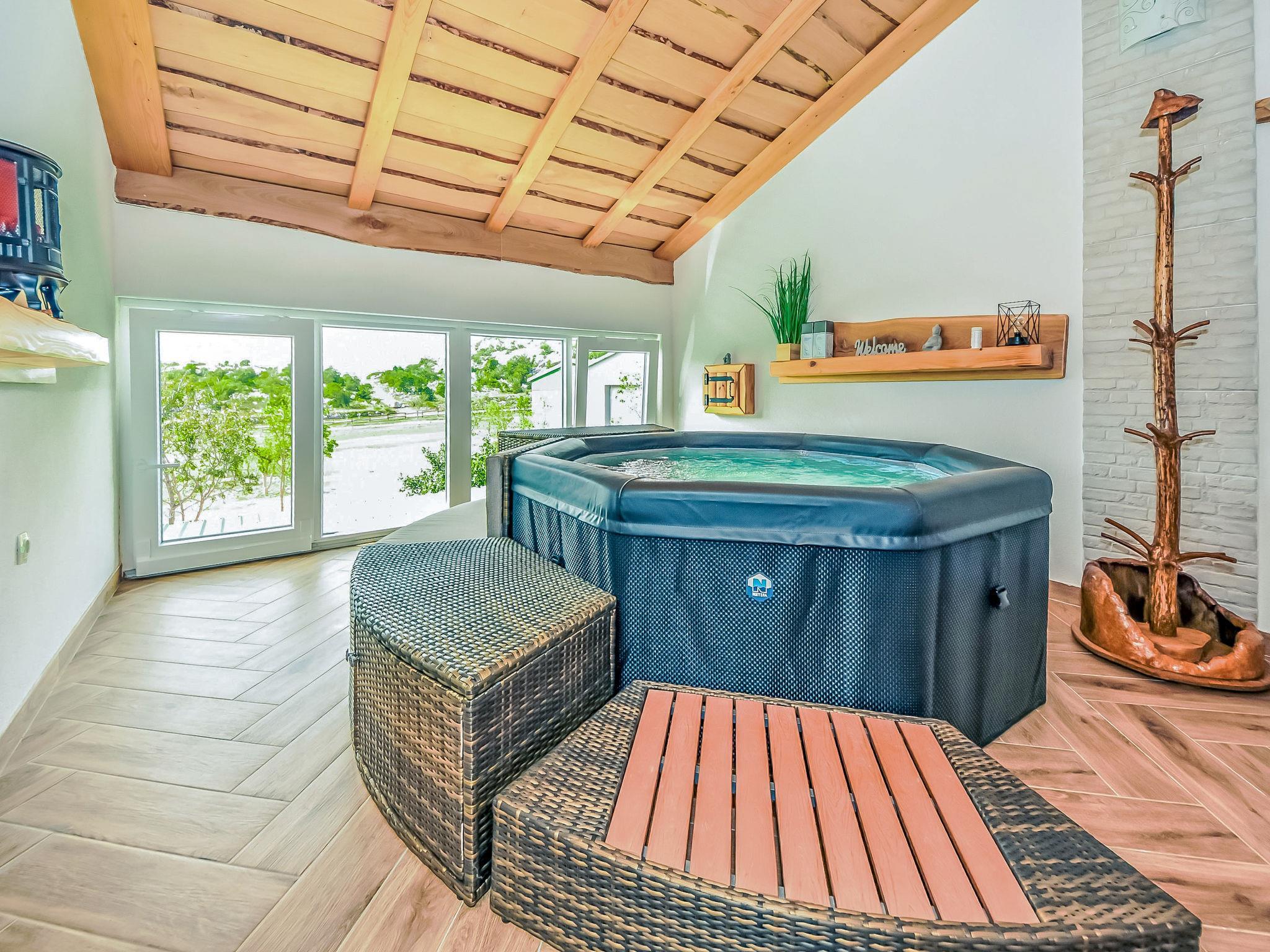 Ledenik Cesaricki 10 km from Karlobag: Single-family house "Iva & Lea", built in 2024. In a sunny position, 11 km from the sea, 11 km from the beach. For shared use: property 6'000 m2. Hot tub. Private: garden furniture, barbecue. In the house: internet access, washing machine. Parking (for 3 cars) at the house on the premises. Shop 10 km, restaurant 10 m, bus stop 11.3 km, pebble beach 10 km.