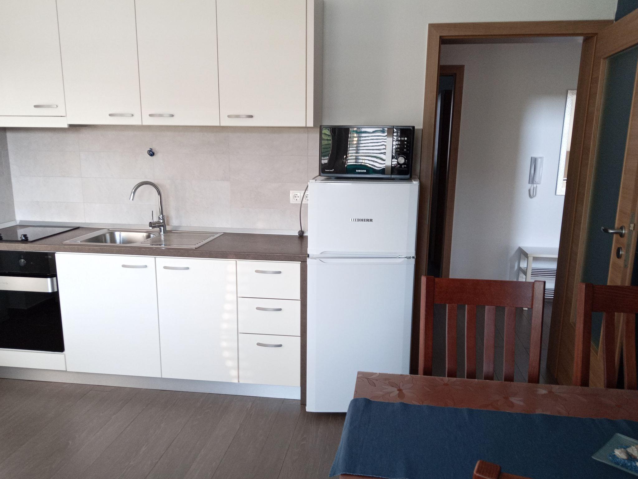 Ferienwohnung bietet Platz für 3 Gäste. Die Betten sind in Schlafzimmern, die es 1 gibt, und in Wohnzimmer, innerhalb einer Gesamtfläche von 43m2, angeordnet. Die Gäste haben einen eigenen Balkon zur Verfügung, auf der sie in warmen Sommernächten genießen können. Das Apartment bietet Meerblick. Es ist erlaubt, Speisen auf dem Gemeinschafts-Grill vorzubereiten. IM PREIS INBEGRIFFEN: Kurtaxe, Endreinigung, Klimatisierung, Parkplatz, Internet, Bügeleisen, Bügelbrett, Föhn. VERBINDLICHE ZUSÄTZLICHE KOSTEN: Aufzahlung für Kurzaufenthalte (prozentualer Zuschlag pro Nächtigungsanzahl: 30% - 1, 20% - 2, 10% - 3). Die Verfügbarkeit zusätzlicher Dienstleistungen in Ihrem reservierten Termin und die Preise derselben (falls nicht aufgeführt) müssen im Voraus überprüft werden. Zusätzliche Dienstleistungen die in der Zahlungsaufforderung nicht aufgeführt sind werden direkt beim Vermieter bezahlt, angenommen der Gast nutzt auch diese.