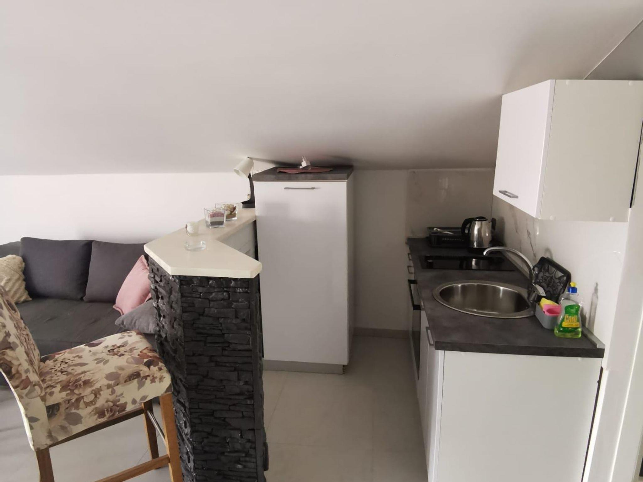 Studio bietet Platz für 5 Gäste. Die Betten sind in Wohnzimmer, innerhalb einer Gesamtfläche von 26m2, angeordnet. Die Gäste haben eine eigene Terrasse zur Verfügung, auf der sie in warmen Sommernächten genießen können. Das Studio-Apartment bietet Meerblick. Es ist erlaubt, Speisen auf dem Gemeinschafts-Grill vorzubereiten. In der Unterkunftseinheit besteht die Möglichkeit des Mitbringens von Haustieren gegen Aufpreis. IM PREIS INBEGRIFFEN: Kurtaxe, Endreinigung, Klimatisierung, Parkplatz, Internet, Bügeleisen, Föhn, Sonnenschirm. VERBINDLICHE ZUSÄTZLICHE KOSTEN: Aufzahlung für Kurzaufenthalte (prozentualer Zuschlag pro Nächtigungsanzahl: 30% - 1, 20% - 2, 10% - 3). UNVERBINDLICHE ZUSÄTZLICHE KOSTEN: Haustiere (5,00 € pro Nacht). Die Verfügbarkeit zusätzlicher Dienstleistungen in Ihrem reservierten Termin und die Preise derselben (falls nicht aufgeführt) müssen im Voraus überprüft werden. Zusätzliche Dienstleistungen die in der Zahlungsaufforderung nicht aufgeführt sind werden direkt beim Vermieter bezahlt, angenommen der Gast nutzt auch diese. Ermäßigung auf den Grundpreis: Gratistag 14=13 (bei einem Aufenthalt von 14 Tagen oder mehr erhalten Sie einen Gratistag für den Aufenthalt bis 31.12.26).