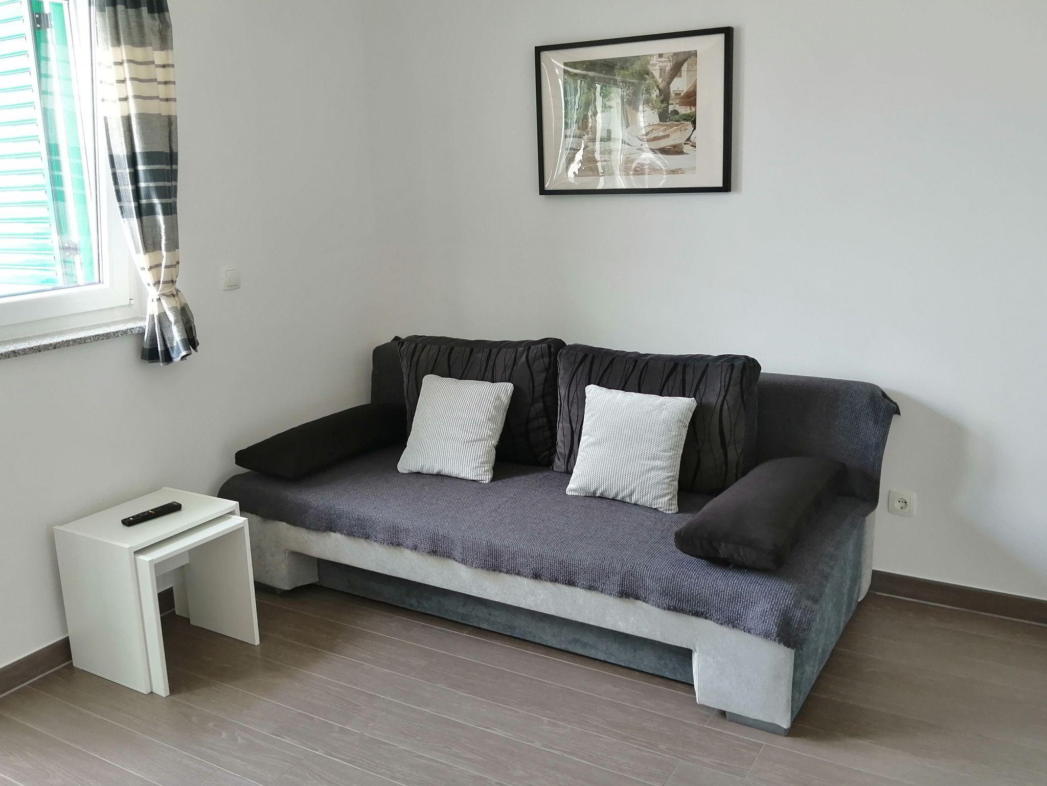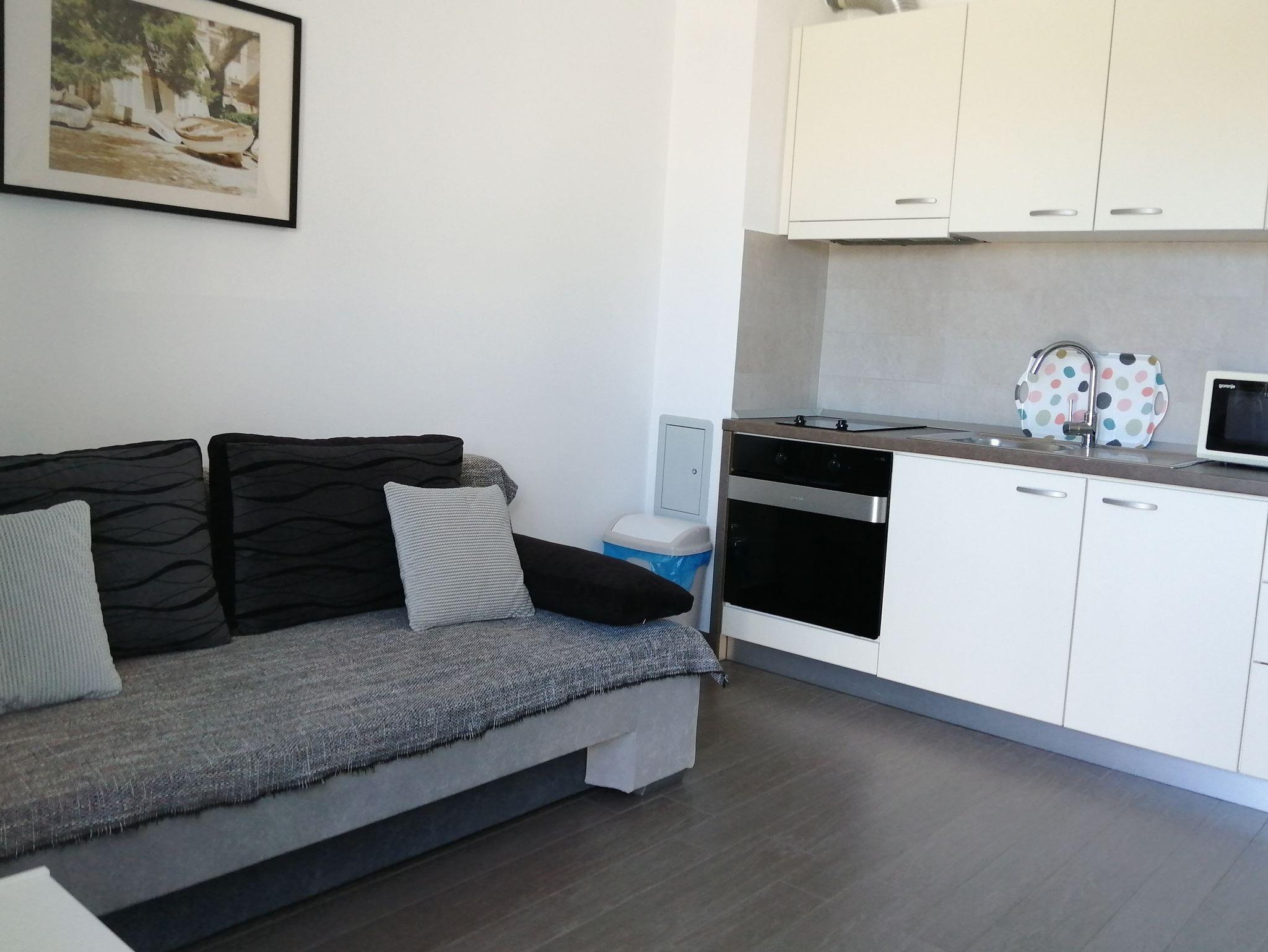 Ferienwohnung bietet Platz für 3 Gäste. Die Betten sind in Schlafzimmern, die es 1 gibt, und in Wohnzimmer, innerhalb einer Gesamtfläche von 41m2, angeordnet. Die Gäste haben einen eigenen Balkon zur Verfügung, auf der sie in warmen Sommernächten genießen können. Das Apartment bietet Meerblick. Es ist erlaubt, Speisen auf dem Gemeinschafts-Grill vorzubereiten. IM PREIS INBEGRIFFEN: Kurtaxe, Endreinigung, Klimatisierung, Parkplatz, Internet, Bügeleisen, Bügelbrett, Föhn. VERBINDLICHE ZUSÄTZLICHE KOSTEN: Aufzahlung für Kurzaufenthalte (prozentualer Zuschlag pro Nächtigungsanzahl: 30% - 1, 20% - 2, 10% - 3). Die Verfügbarkeit zusätzlicher Dienstleistungen in Ihrem reservierten Termin und die Preise derselben (falls nicht aufgeführt) müssen im Voraus überprüft werden. Zusätzliche Dienstleistungen die in der Zahlungsaufforderung nicht aufgeführt sind werden direkt beim Vermieter bezahlt, angenommen der Gast nutzt auch diese.