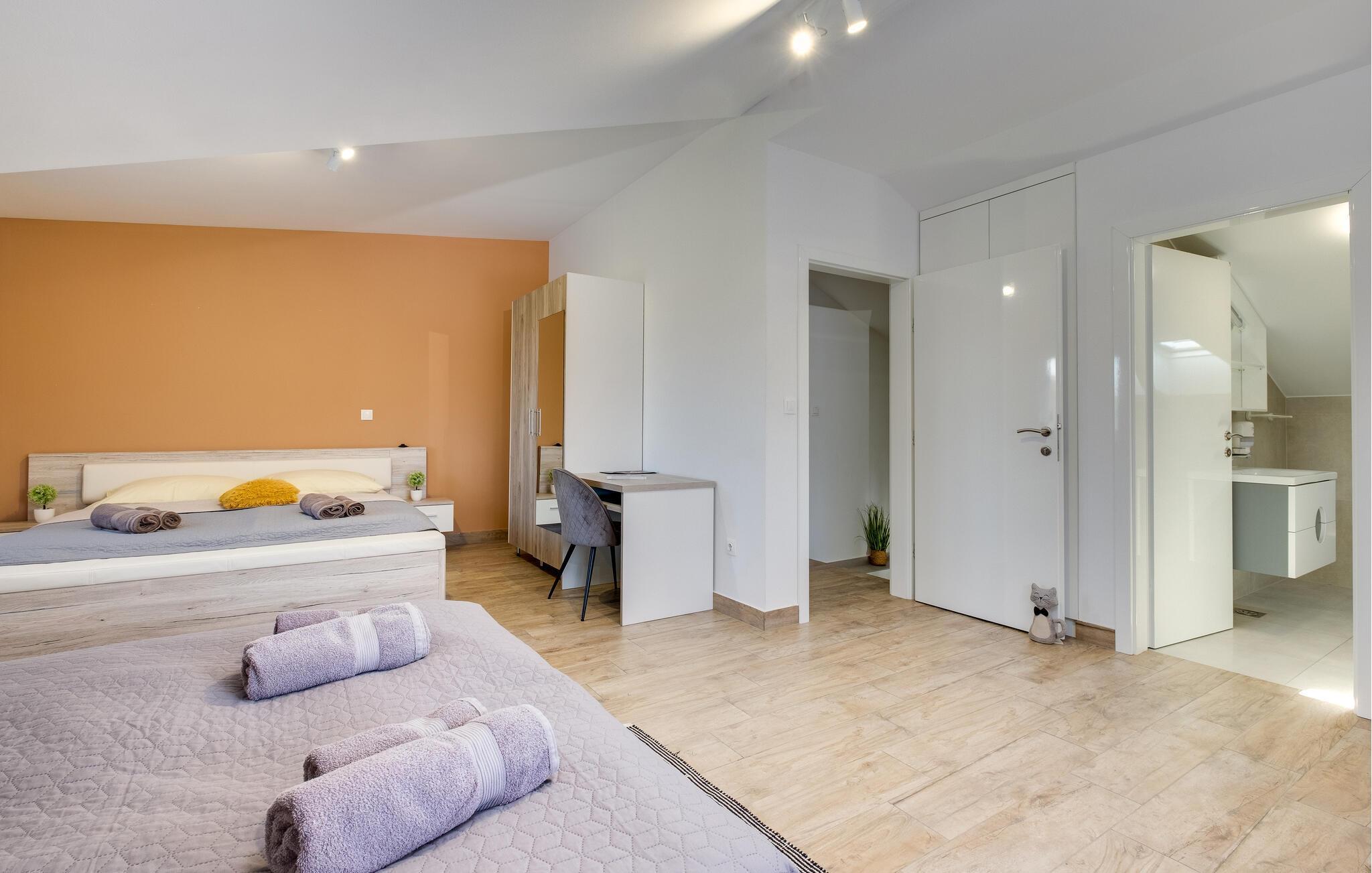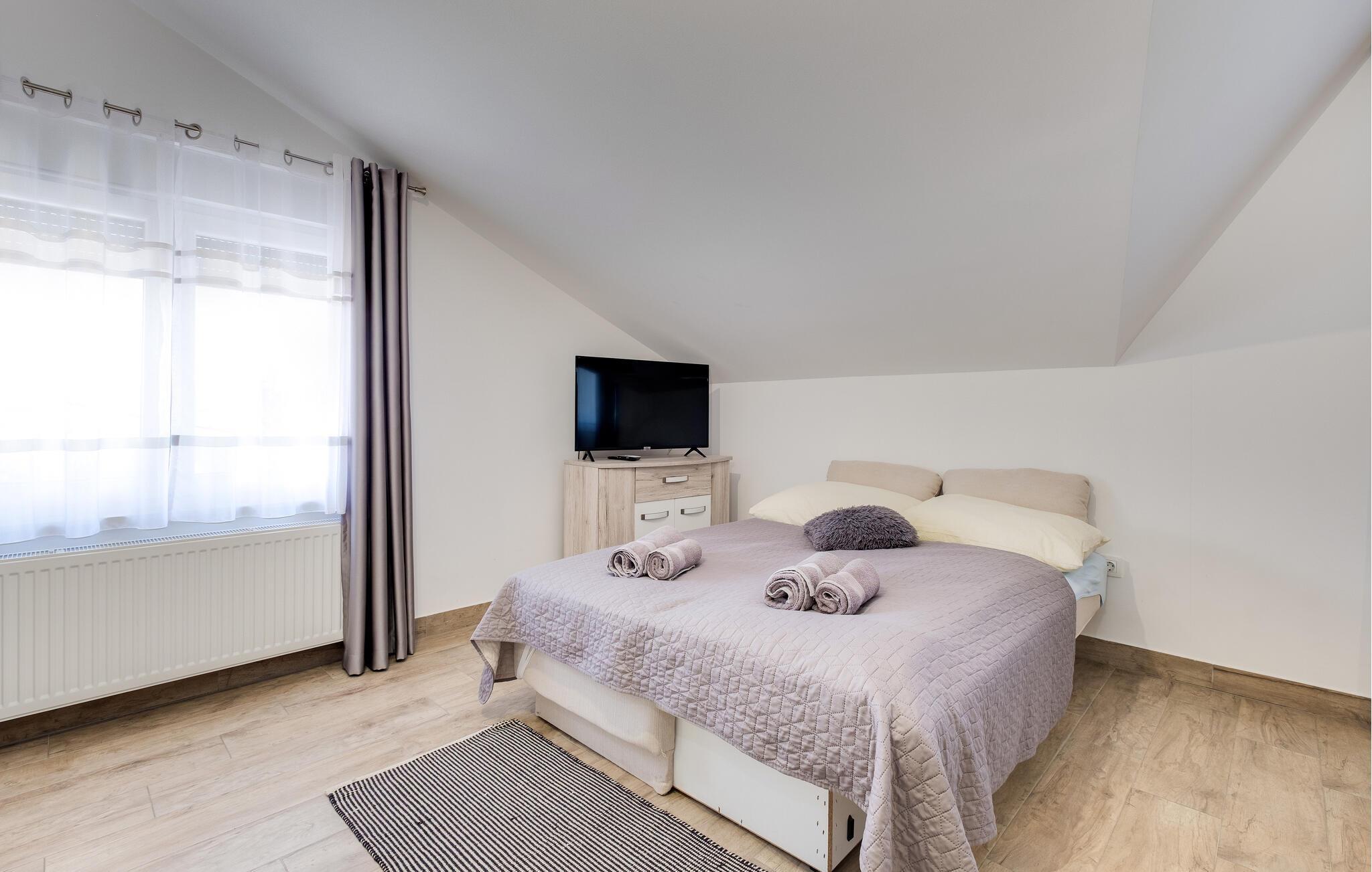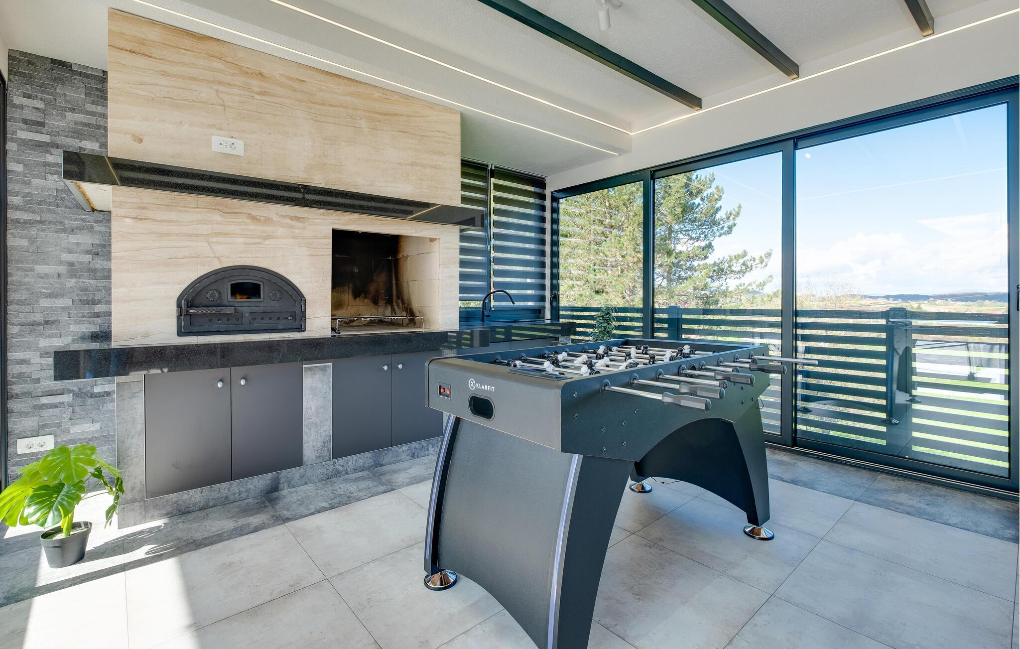 Detta rymliga, moderna semesterhus i Tusilovic erbjuder dig allt du behöver för en avkopplande semester. De ljusa, bekvämt inredda rummen skapar en inbjudande atmosfär där du omedelbart kommer att känna dig som hemma. Inuti finns en pool och en bastu som ger de perfekta förutsättningarna för avkopplande timmar. I sommarköket kan du spela bordsfotboll och på den stora terrassen kan du njuta av utsikten över de pittoreska omgivningarna.