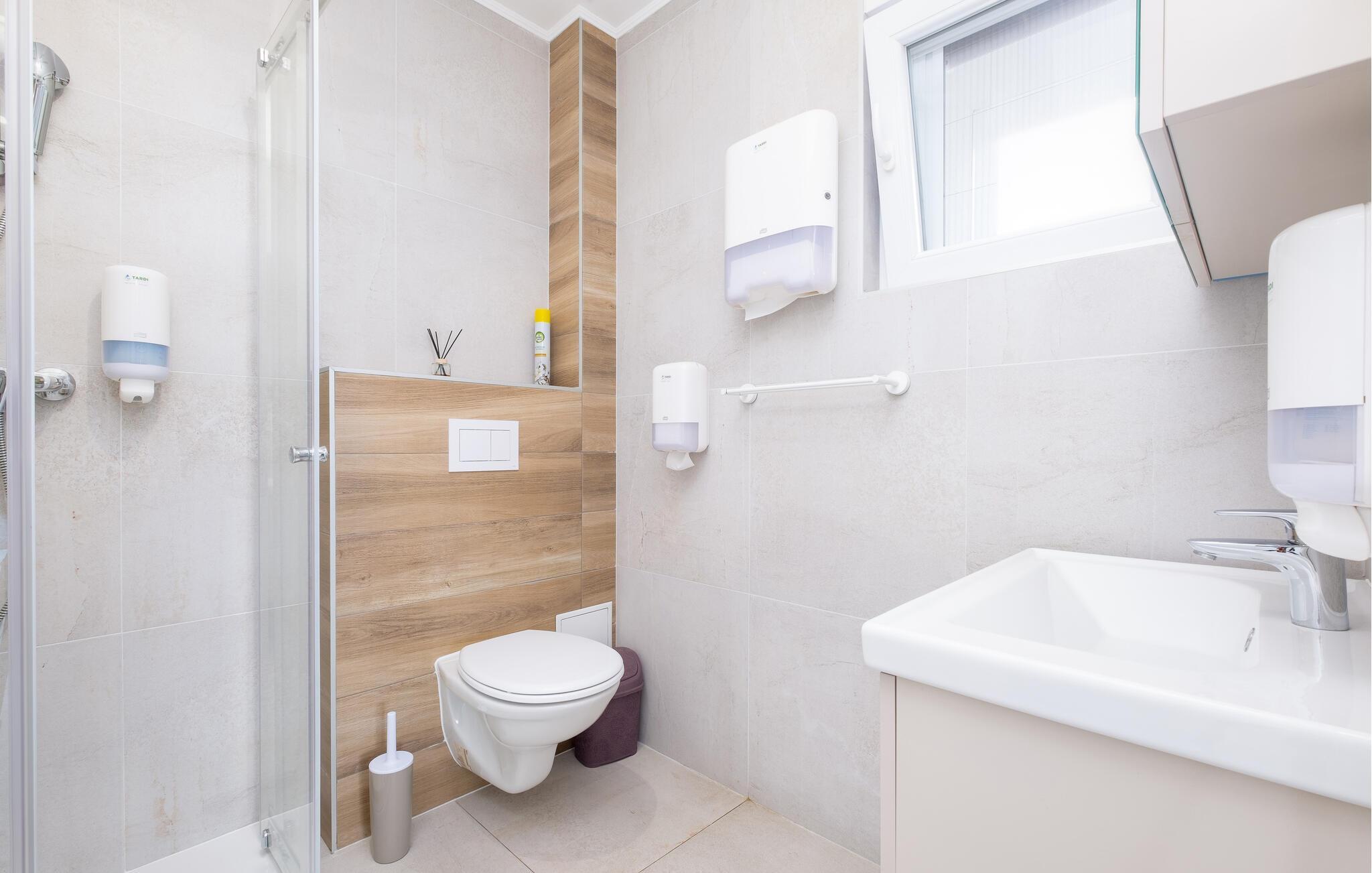 Badrum 5m2 (nr. 2) - WC: Varmt och kallt vatten. Dusch