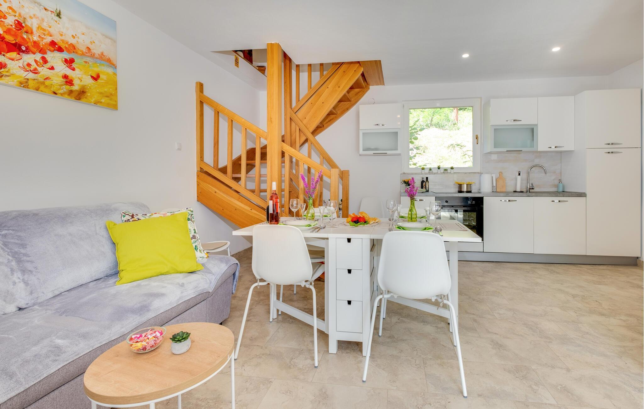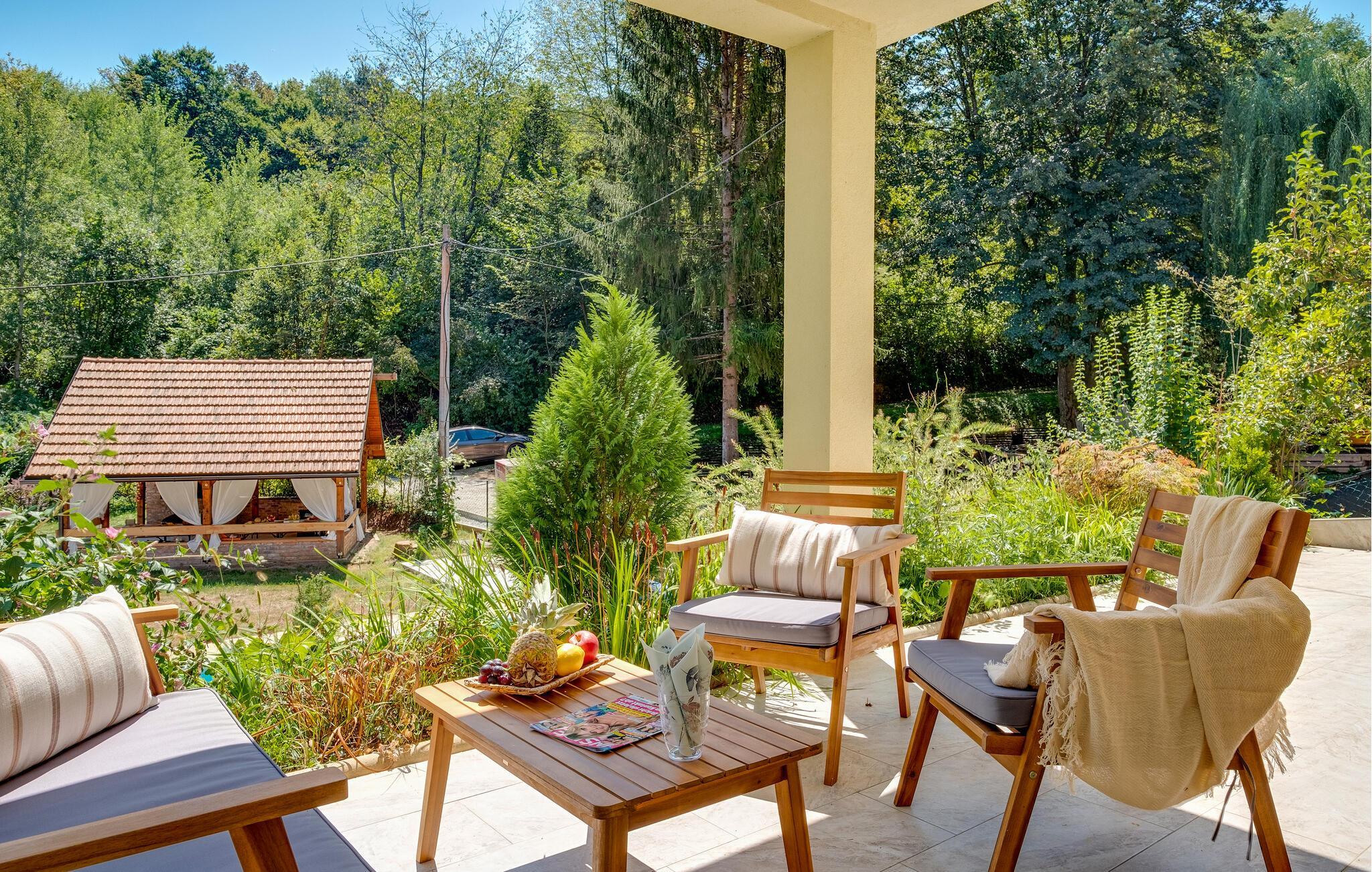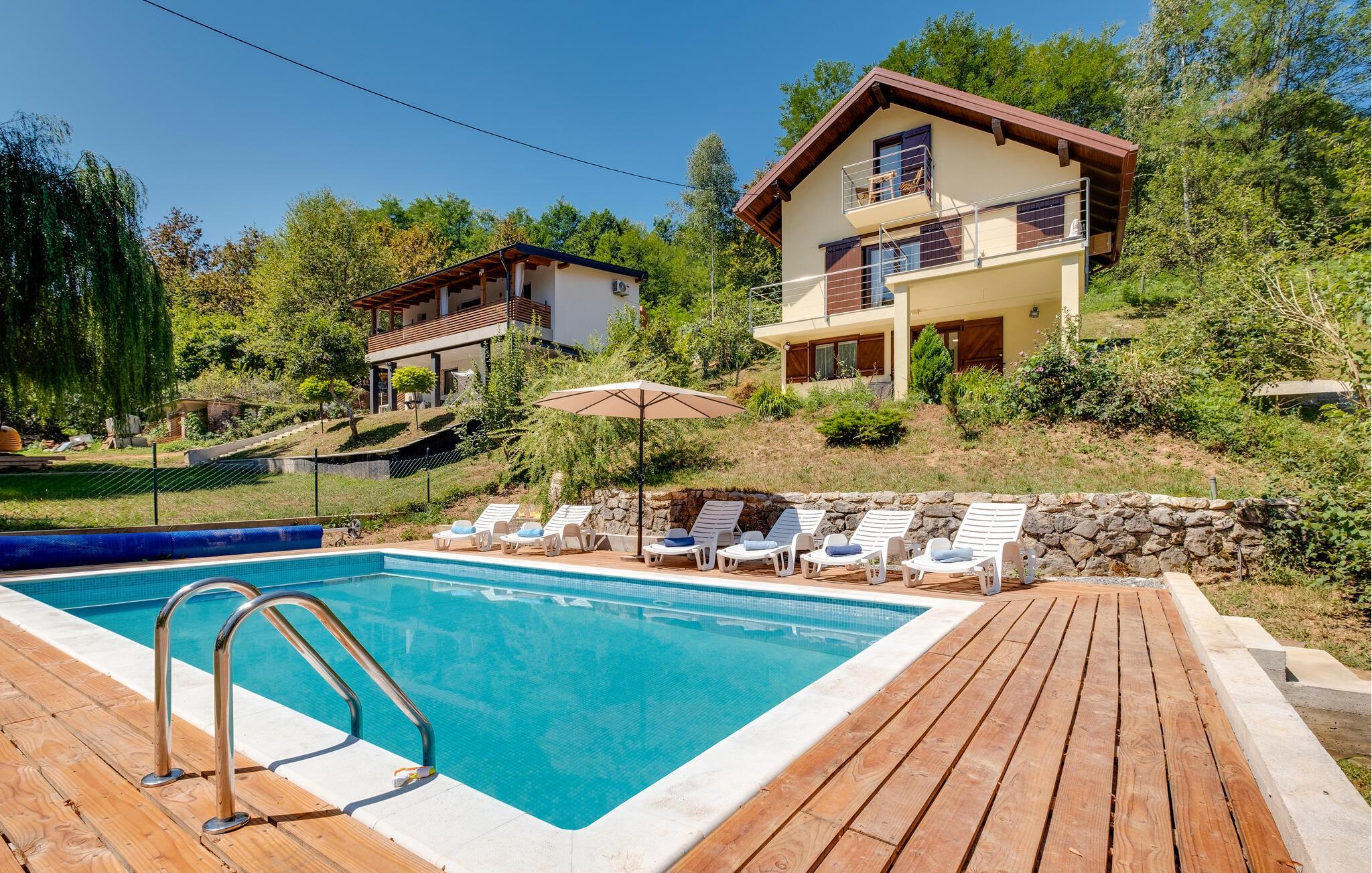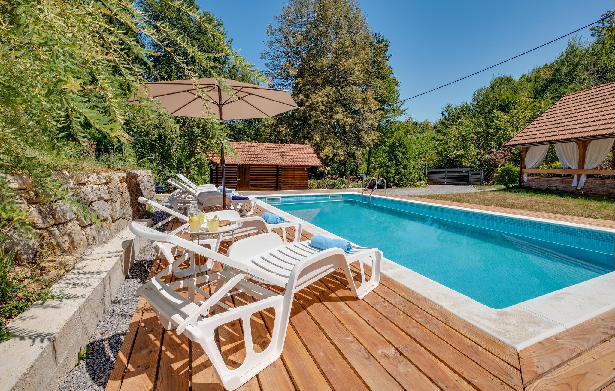 Ert semesterhus i Koranski Brijeg är idylliskt beläget på en liten kulle nära floden Korana. Huset består av två separata bostadsenheter. På bottenvåningen finns en mysig lägenhet för två personer, medan det på övervåningen finns ett rymligt boende med två sovrum för fyra personer. Njut av den underbara utsikten över det gröna landskapet, de böljande kullarna och de omgivande skogarna. Låt dig inspireras av naturens lugn och börja dagen med en avslappnad frukost på terrassen. Ett dopp i poolen ger välkommen svalka och uppfriskning.