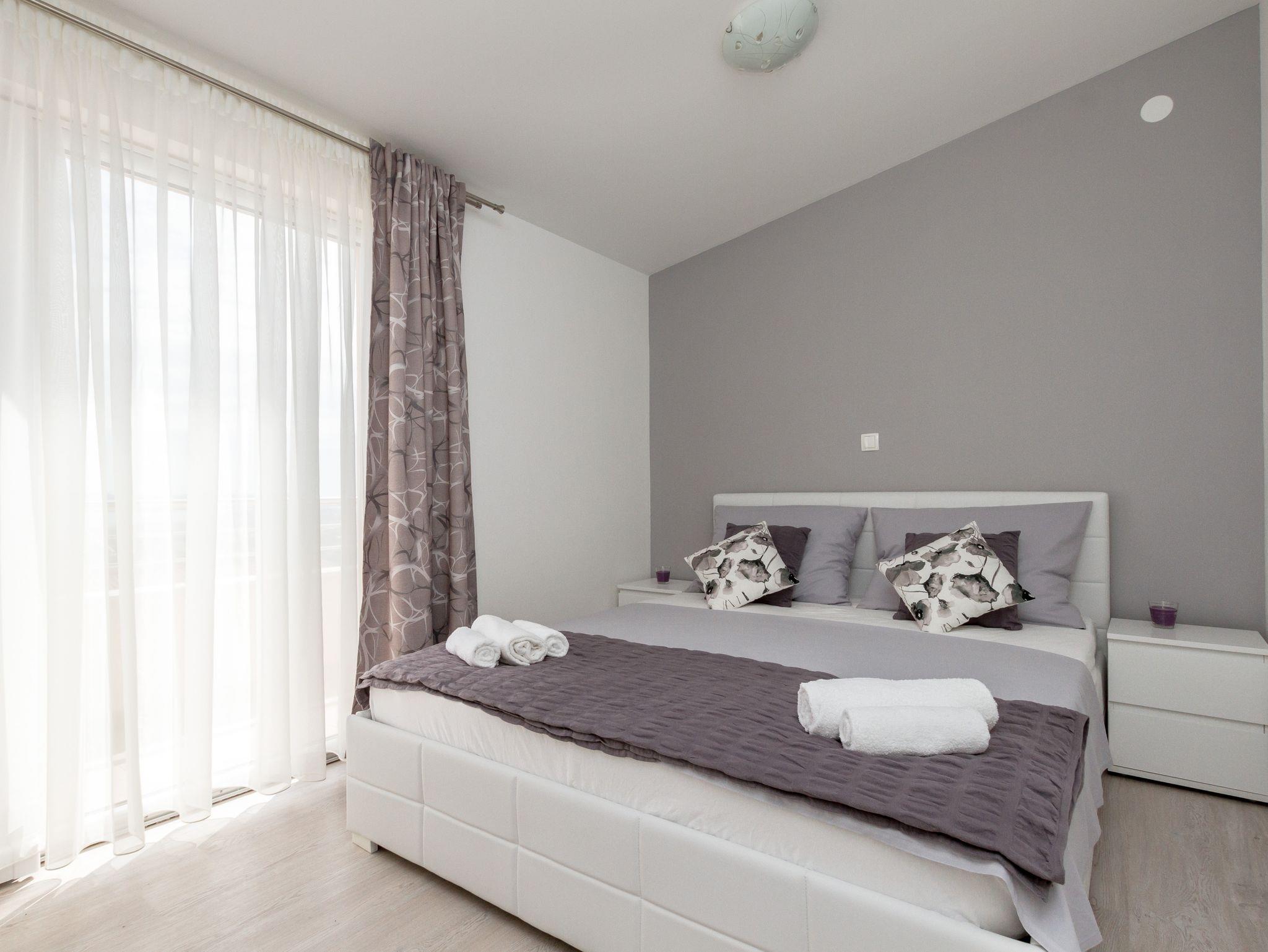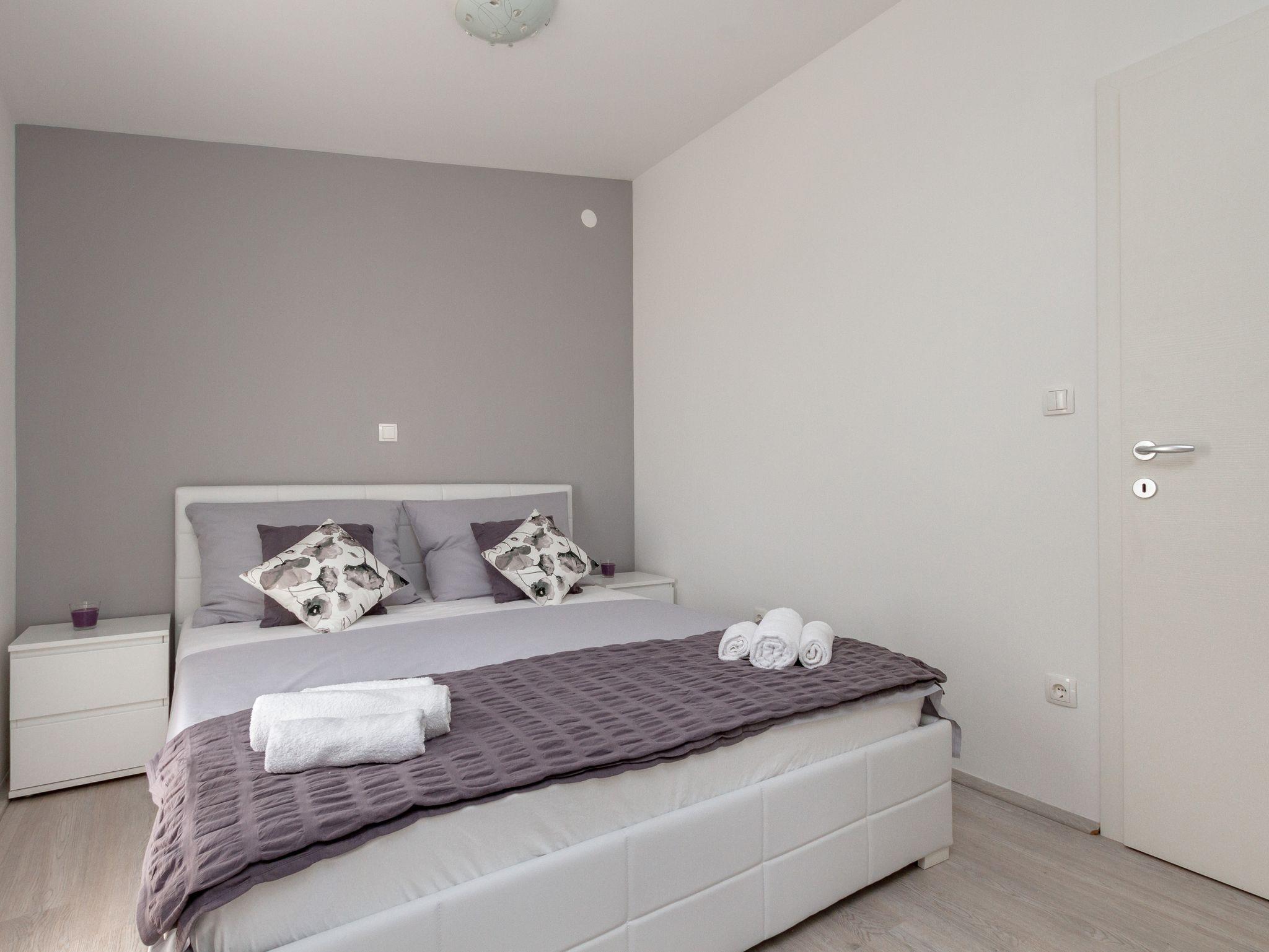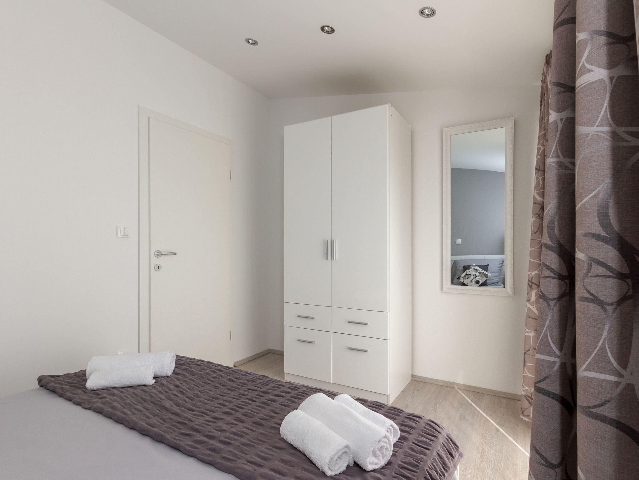 Ferienwohnung bietet Platz für 4 Gäste. Die Betten sind in Schlafzimmern, die es 1 gibt, und in Wohnzimmer, innerhalb einer Gesamtfläche von 36m2, angeordnet. Die Gäste haben eine eigene Terrasse zur Verfügung, auf der sie in warmen Sommernächten genießen können. Das Apartment bietet Meerblick. Es ist erlaubt, Speisen auf dem Gemeinschafts-Grill vorzubereiten. IM PREIS INBEGRIFFEN: Kurtaxe, Endreinigung, Klimatisierung, Parkplatz, Internet, Bügeleisen, Bügelbrett, Föhn. Die Verfügbarkeit zusätzlicher Dienstleistungen in Ihrem reservierten Termin und die Preise derselben (falls nicht aufgeführt) müssen im Voraus überprüft werden. Zusätzliche Dienstleistungen die in der Zahlungsaufforderung nicht aufgeführt sind werden direkt beim Vermieter bezahlt, angenommen der Gast nutzt auch diese. Ermäßigung auf den Grundpreis: Gratistag 14=13 (bei einem Aufenthalt von 14 Tagen oder mehr erhalten Sie einen Gratistag für den Aufenthalt bis 31.12.26).