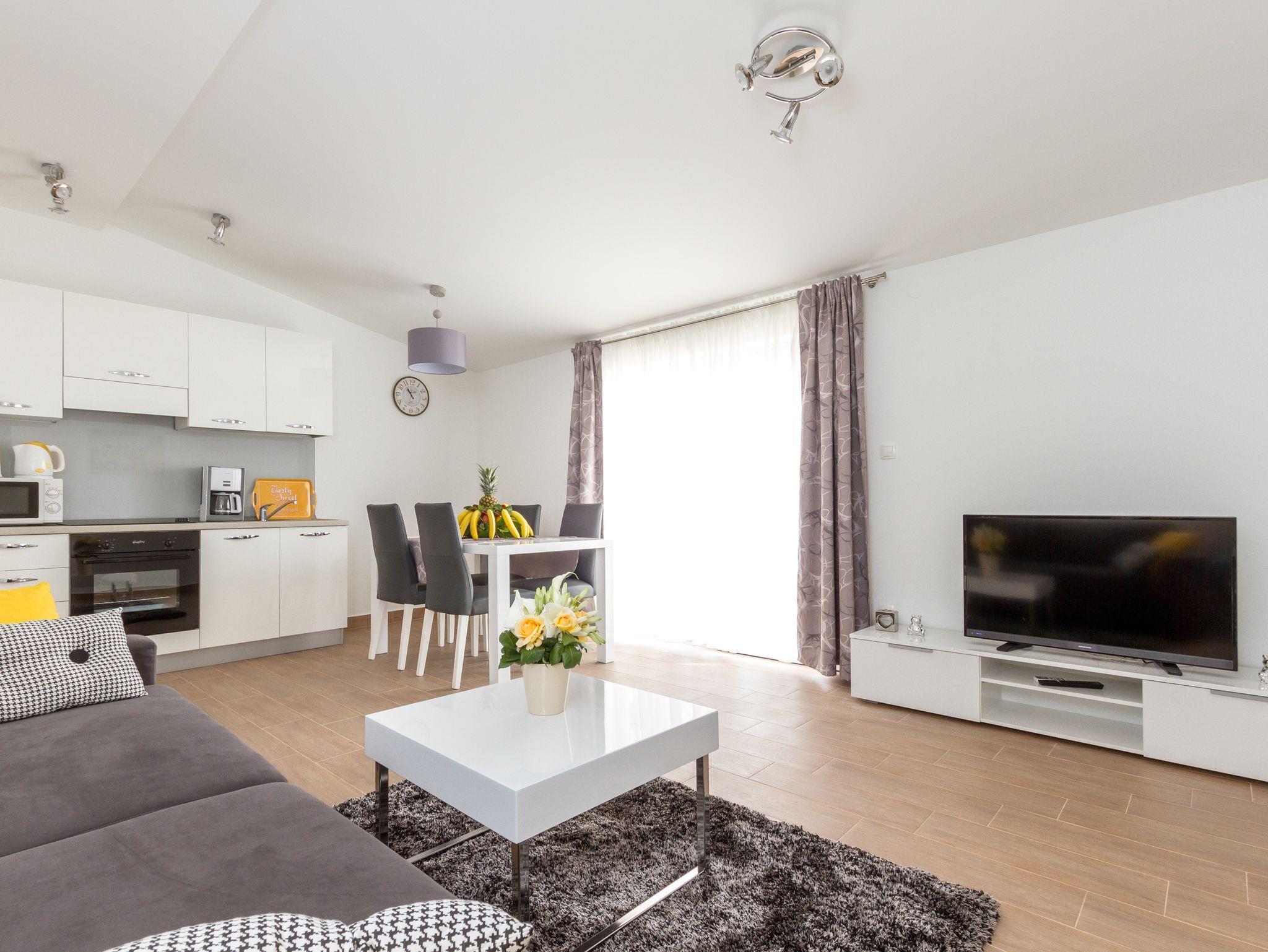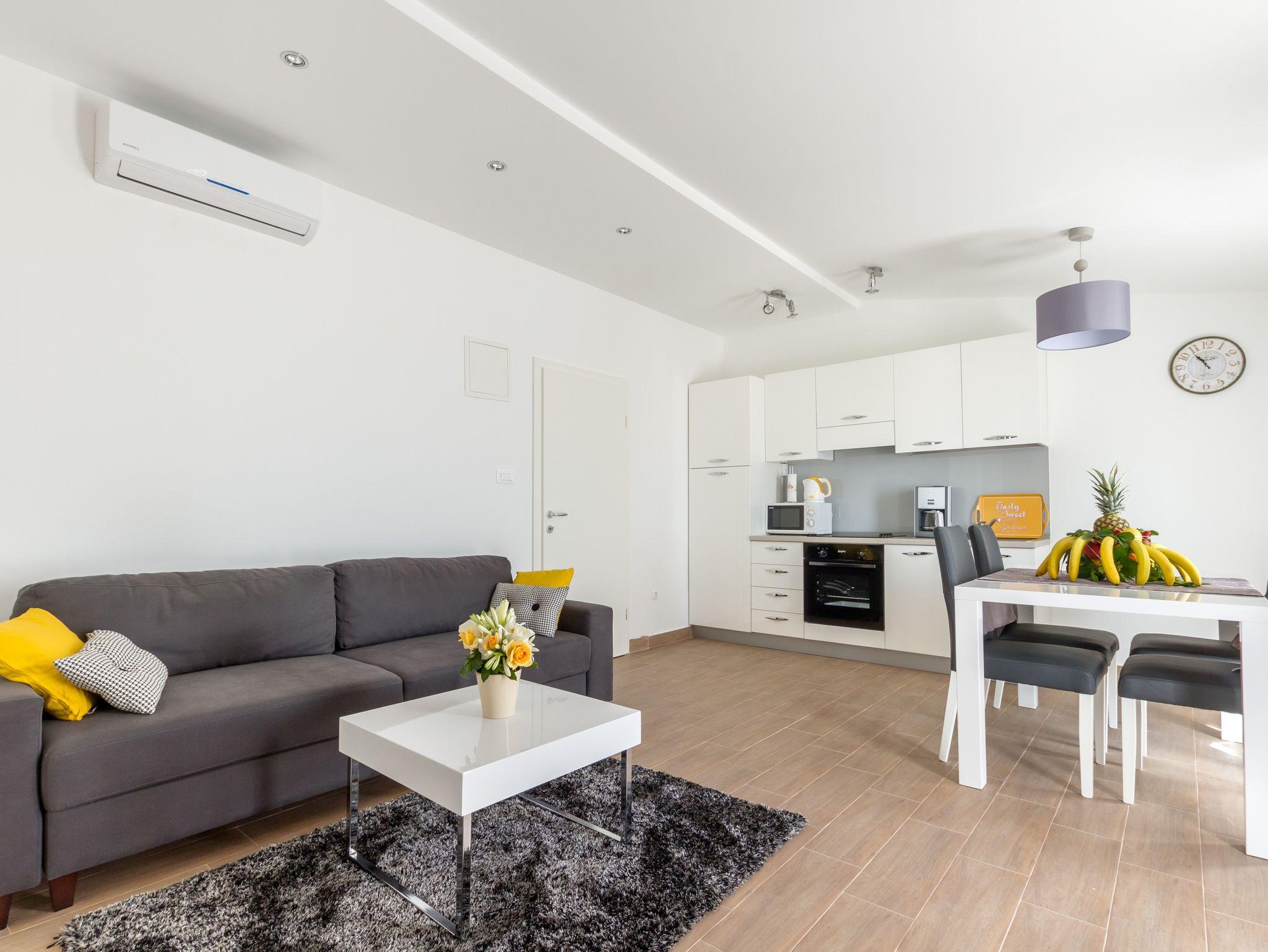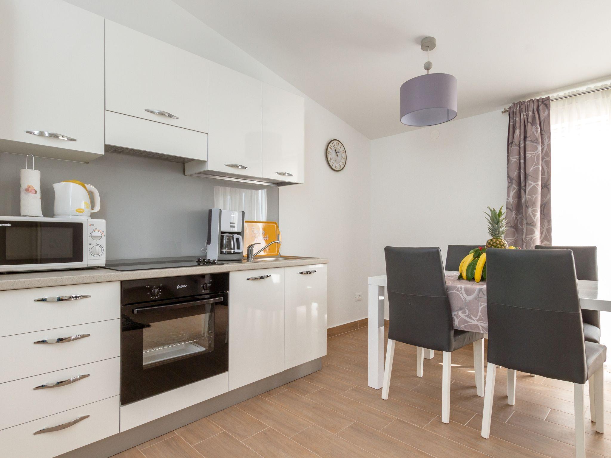 Ferienwohnung bietet Platz für 4 Gäste. Die Betten sind in Schlafzimmern, die es 1 gibt, und in Wohnzimmer, innerhalb einer Gesamtfläche von 36m2, angeordnet. Die Gäste haben eine eigene Terrasse zur Verfügung, auf der sie in warmen Sommernächten genießen können. Das Apartment bietet Meerblick. Es ist erlaubt, Speisen auf dem Gemeinschafts-Grill vorzubereiten. IM PREIS INBEGRIFFEN: Kurtaxe, Endreinigung, Klimatisierung, Parkplatz, Internet, Bügeleisen, Bügelbrett, Föhn. Die Verfügbarkeit zusätzlicher Dienstleistungen in Ihrem reservierten Termin und die Preise derselben (falls nicht aufgeführt) müssen im Voraus überprüft werden. Zusätzliche Dienstleistungen die in der Zahlungsaufforderung nicht aufgeführt sind werden direkt beim Vermieter bezahlt, angenommen der Gast nutzt auch diese. Ermäßigung auf den Grundpreis: Gratistag 14=13 (bei einem Aufenthalt von 14 Tagen oder mehr erhalten Sie einen Gratistag für den Aufenthalt bis 31.12.26).