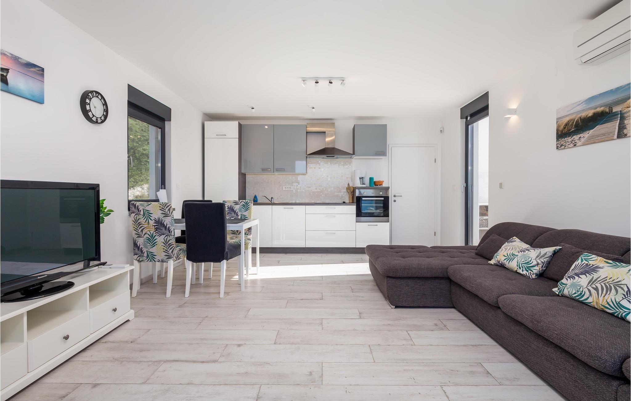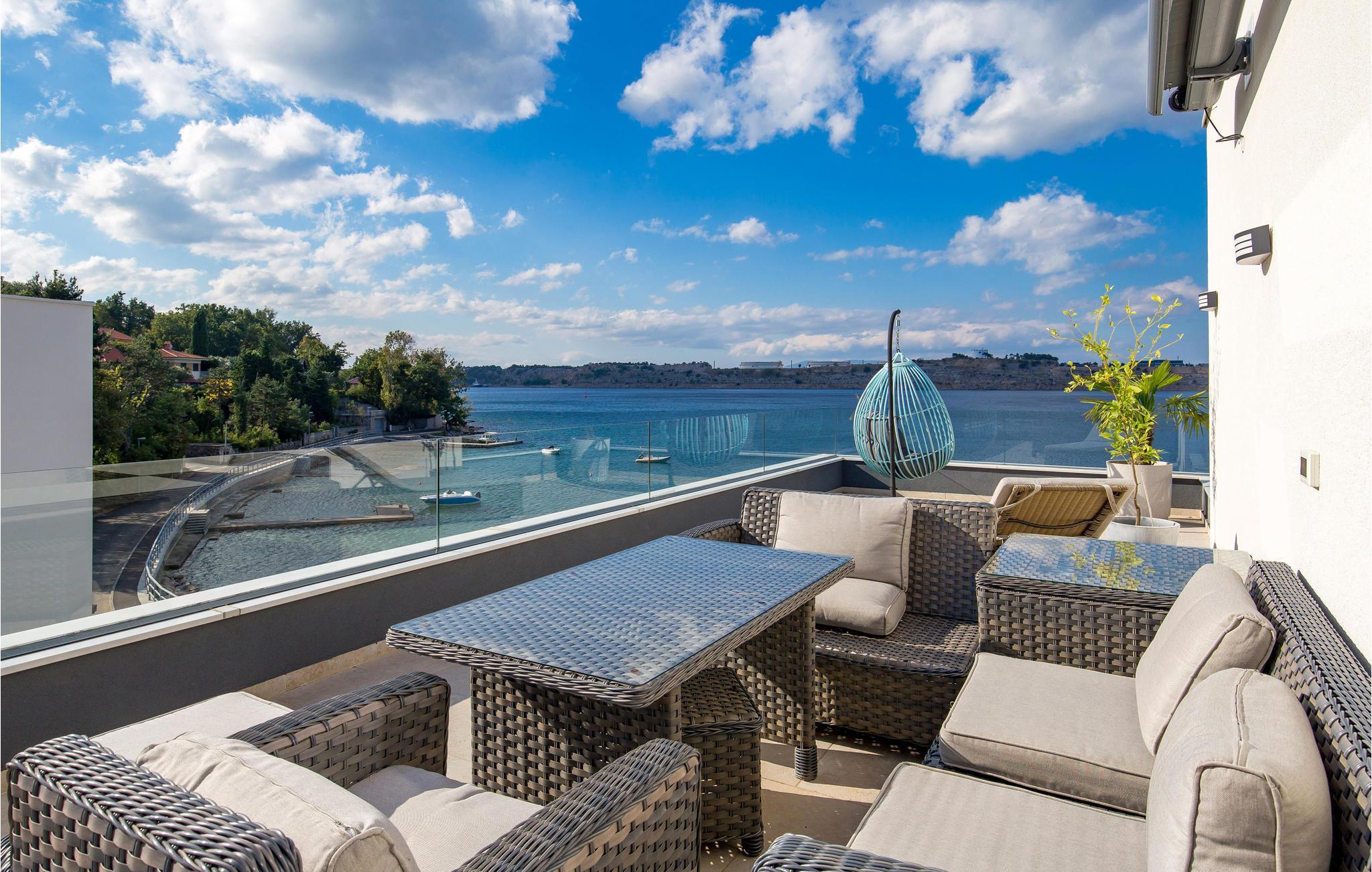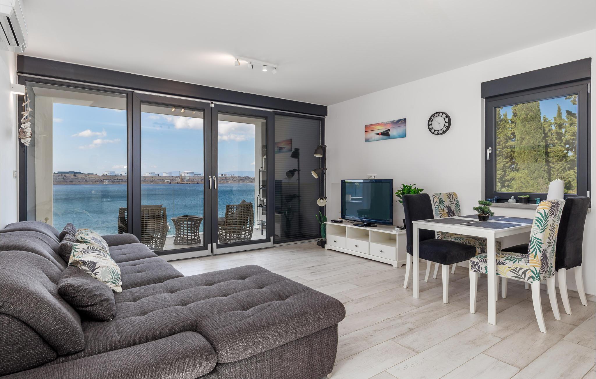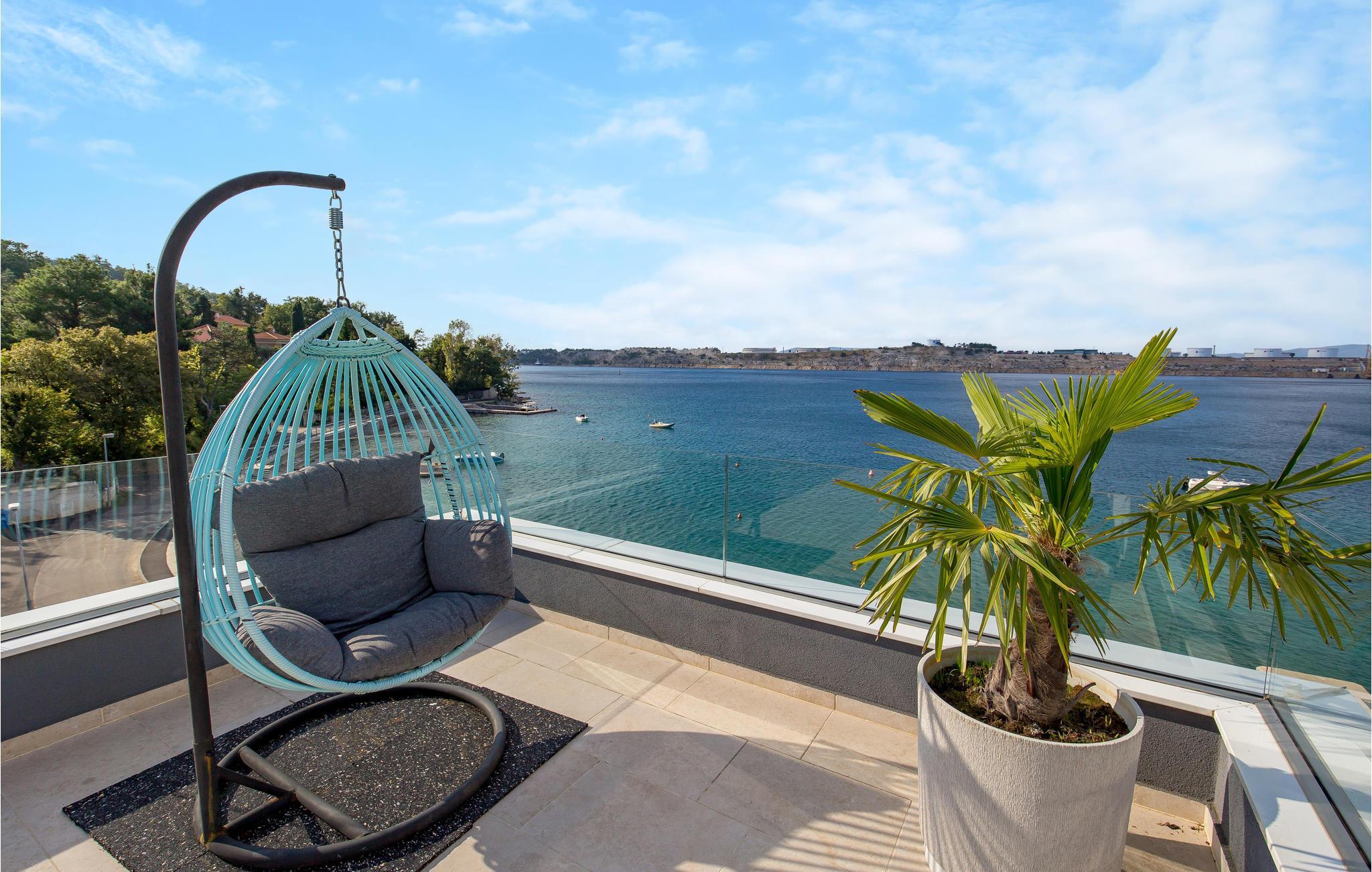 Denna vackra semesterlägenhet ligger i Omialj på ön Krk och kommer att glädja dig med sin moderna inredning och hisnande utsikt över det soldränkta havet. Semesterhuset har ett funktionellt kök och vardagsrum, två sovrum och ett badrum. Koppla av på den rymliga terrassen och balkongen med en god bok eller på kvällen med ett glas vin tillsammans med dina nära och kära. Utforska Omialj med sina slingrande stengränder. Besök Lapidarium, en liten samling stenmonument och njut av det rika gastronomiska utbudet på någon av de restauranger och tavernor som finns här.
