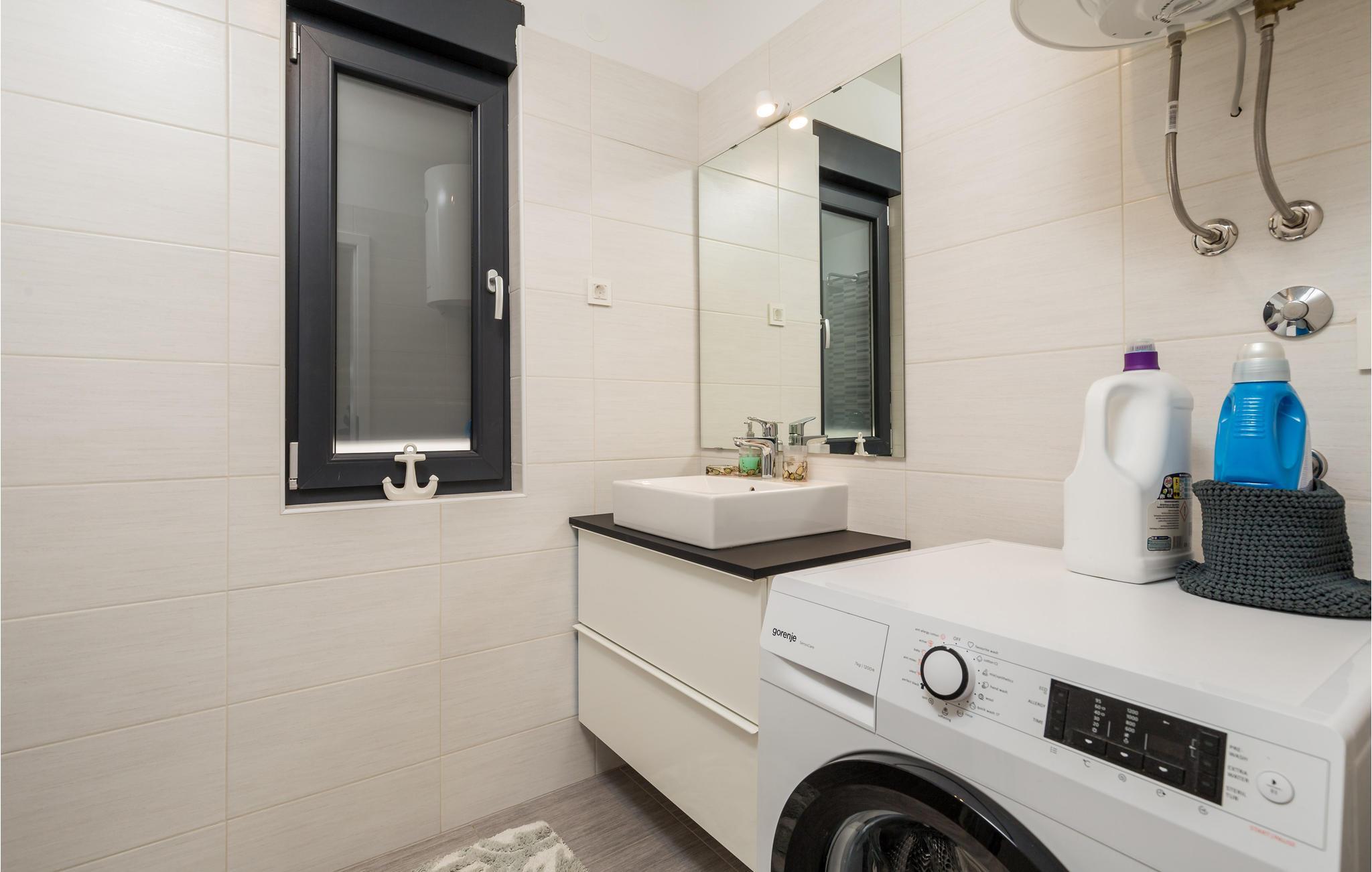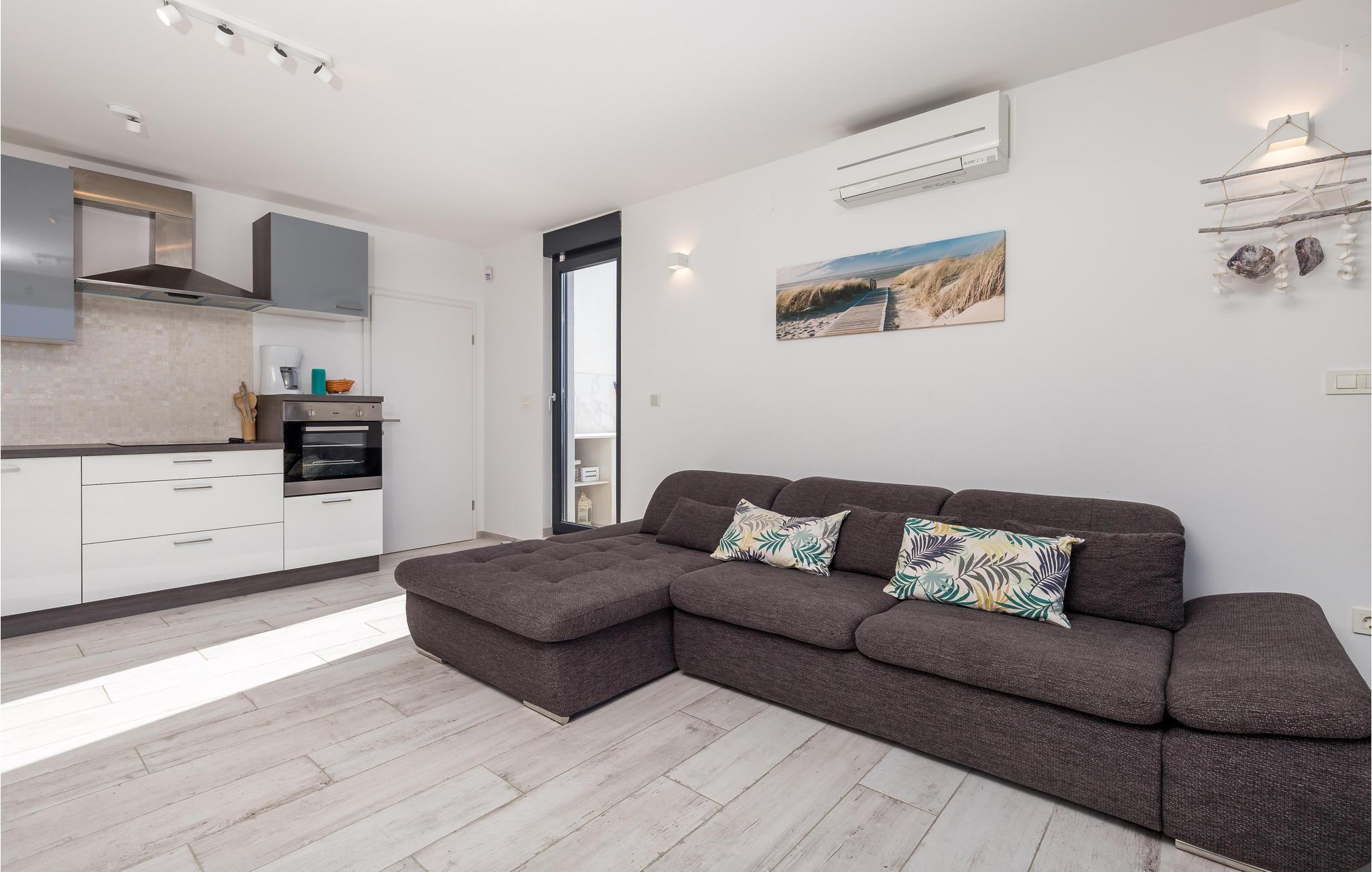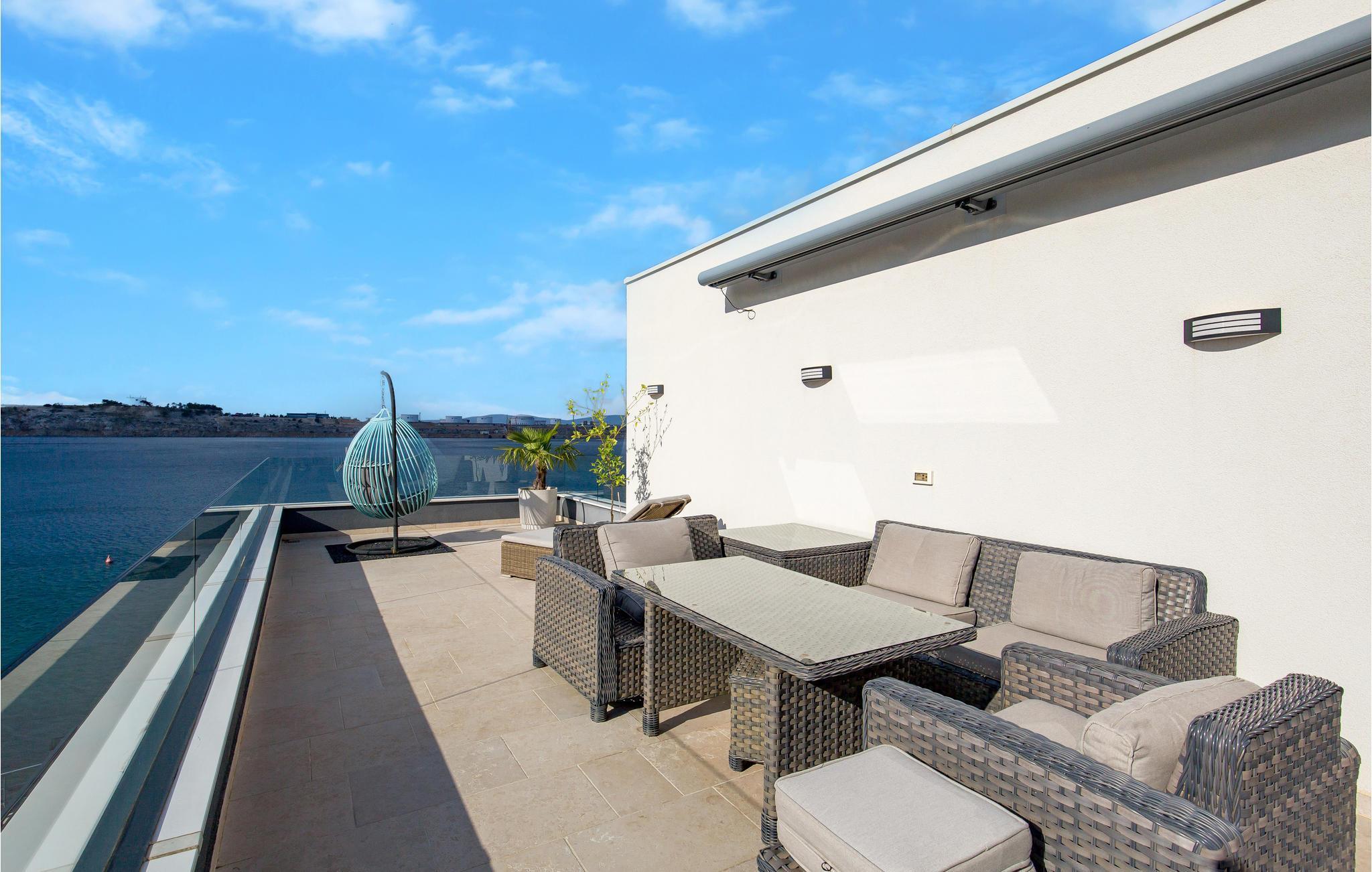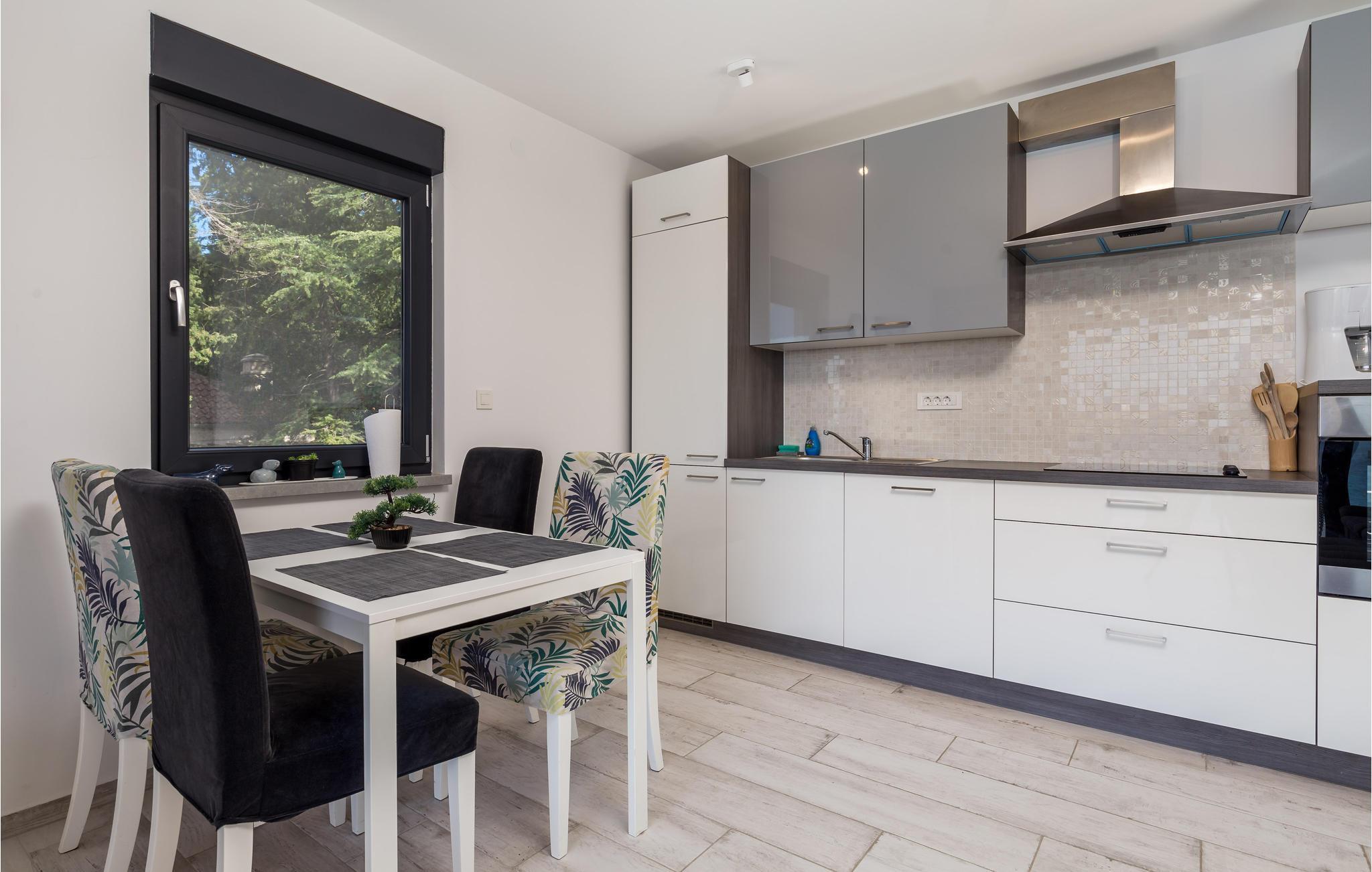 Denna vackra semesterlägenhet ligger i Omialj på ön Krk och kommer att glädja dig med sin moderna inredning och hisnande utsikt över det soldränkta havet. Semesterhuset har ett funktionellt kök och vardagsrum, två sovrum och ett badrum. Koppla av på den rymliga terrassen och balkongen med en god bok eller på kvällen med ett glas vin tillsammans med dina nära och kära. Utforska Omialj med sina slingrande stengränder. Besök Lapidarium, en liten samling stenmonument och njut av det rika gastronomiska utbudet på någon av de restauranger och tavernor som finns här.