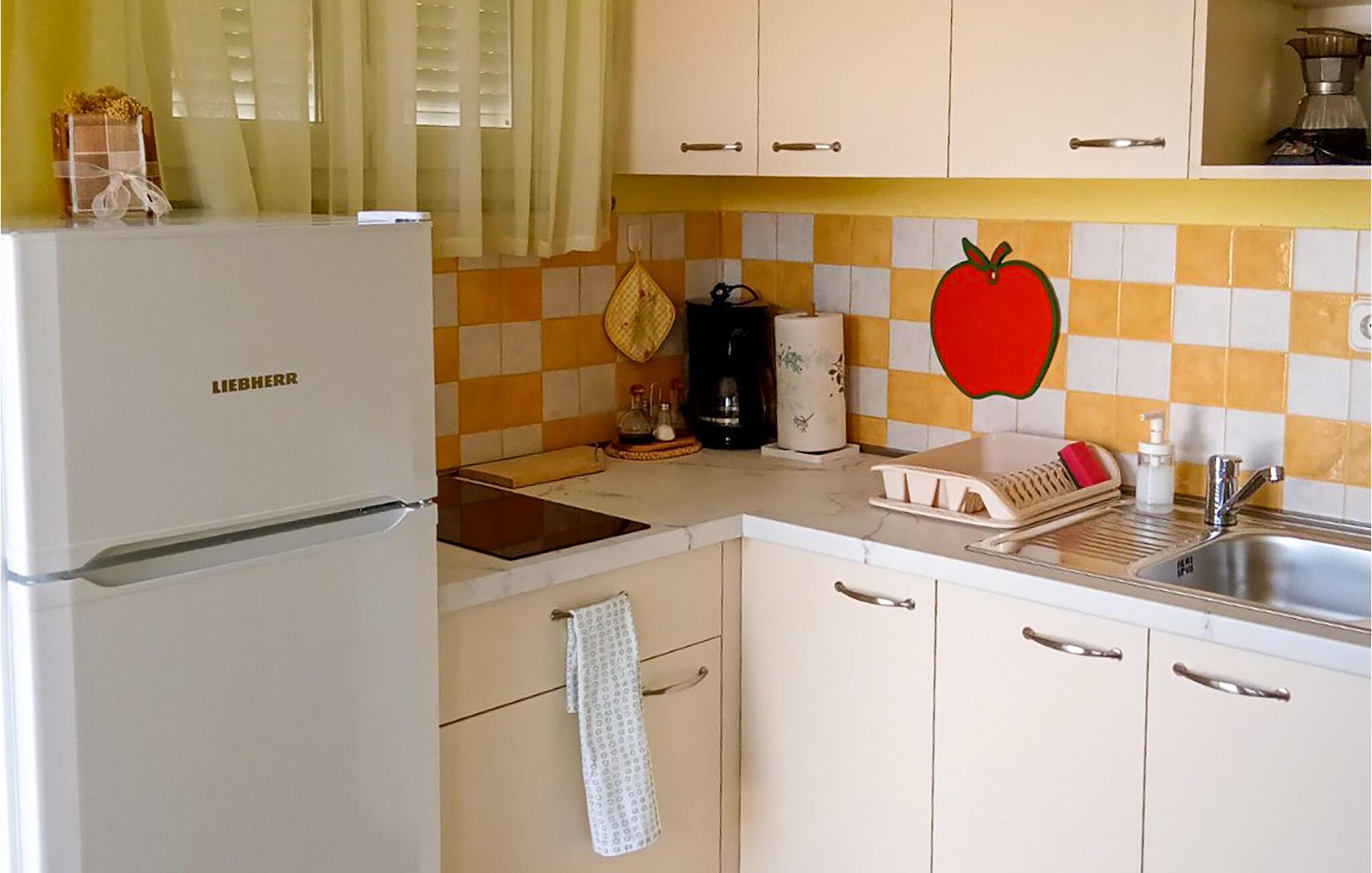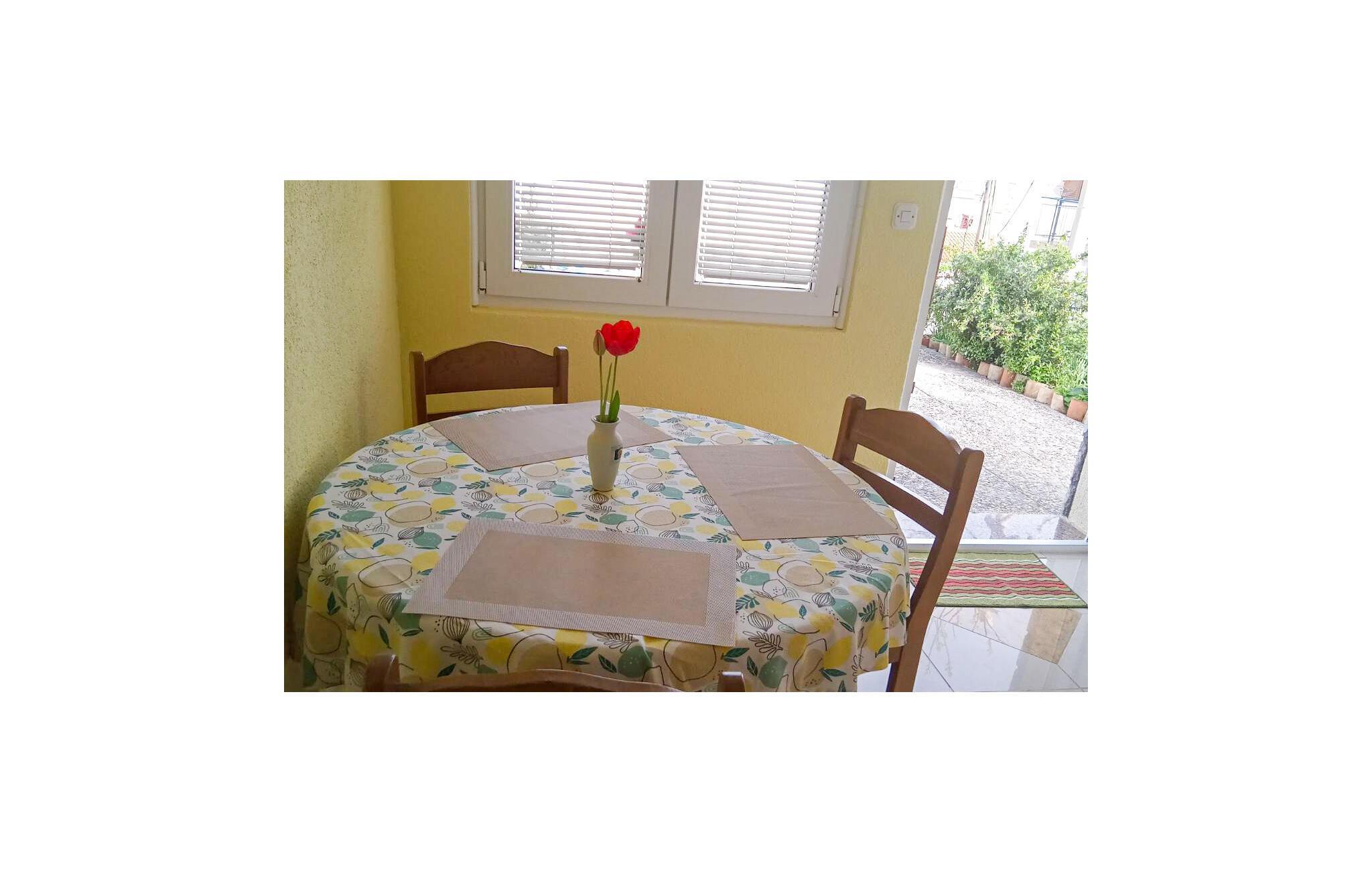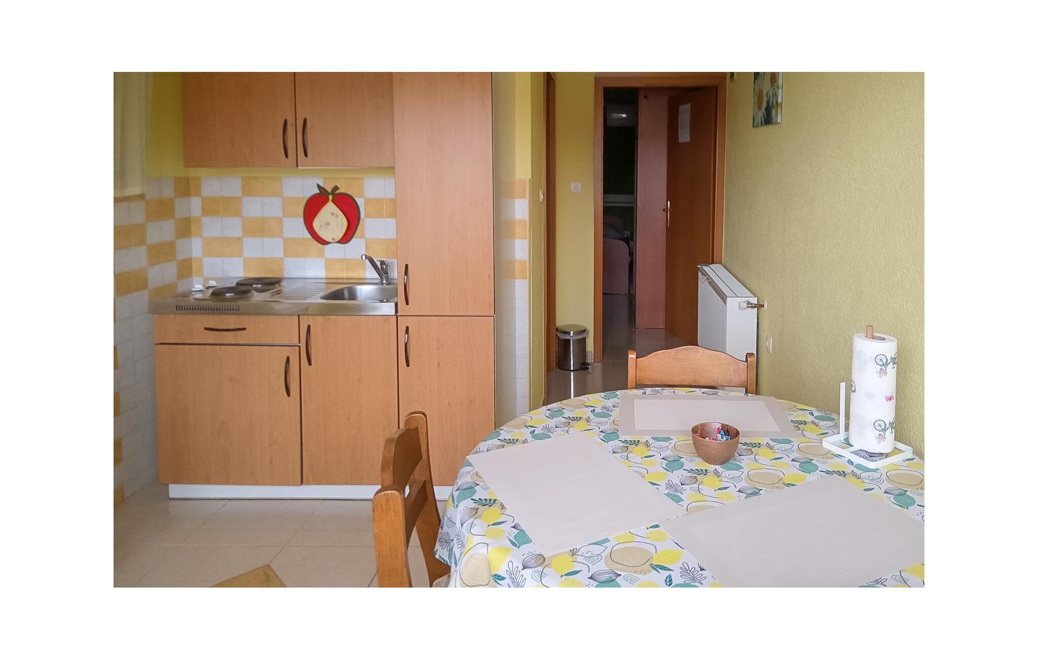Denna ljusa och funktionellt inredda semesterlägenhet erbjuder dig den perfekta basen för att komma bort från allt på en strandsemester på den kroatiska kusten. Använd det välutrustade köket för att förbereda dina måltider och planera dina aktiviteter vid det inbjudande matbordet.