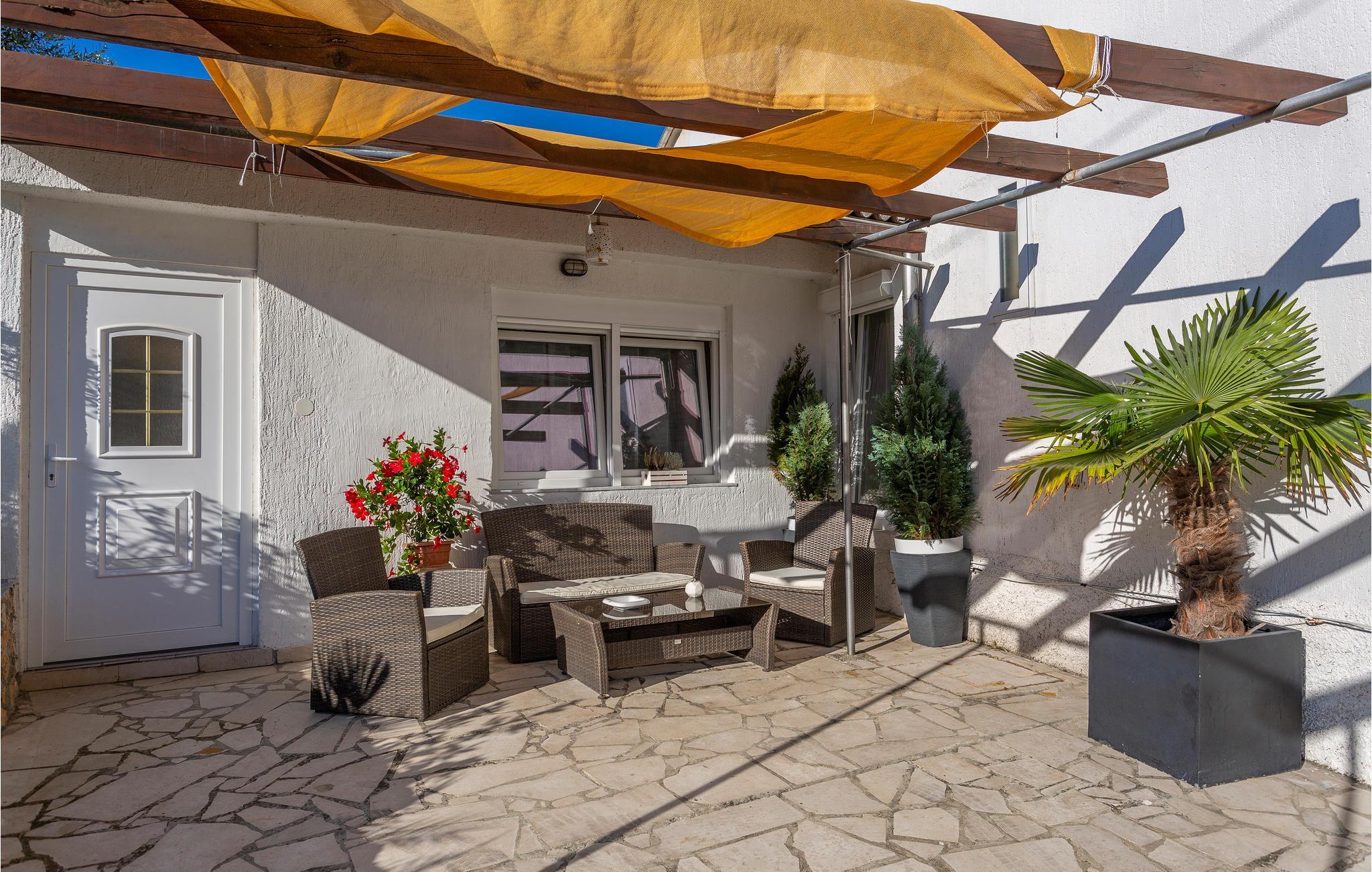 Denna charmiga semesterlägenhet ligger i den historiska byn Vrbnik och erbjuder allt du behöver för en trevlig semester. Husägaren bor i huset, men semesterlägenheten ligger utanför vägen, med separat ingång och parkeringsplats från andra sidan huset. Vid ingången finns den stora terrassen, som endast är till för ditt bruk. Vrbnik är ett välkänt turistmål med ett unikt historiskt kulturarv. Under sommarmånaderna har du möjlighet att delta i många underhållande evenemang. På bara några minuters promenad når du havet och olika möjligheter till en aktiv semester. Du kan också njuta av det utmärkta gastronomiska och oenologiska utbudet. Lokalbefolkningen är känd för sitt vin "Vrbni?ka ?lahtina".