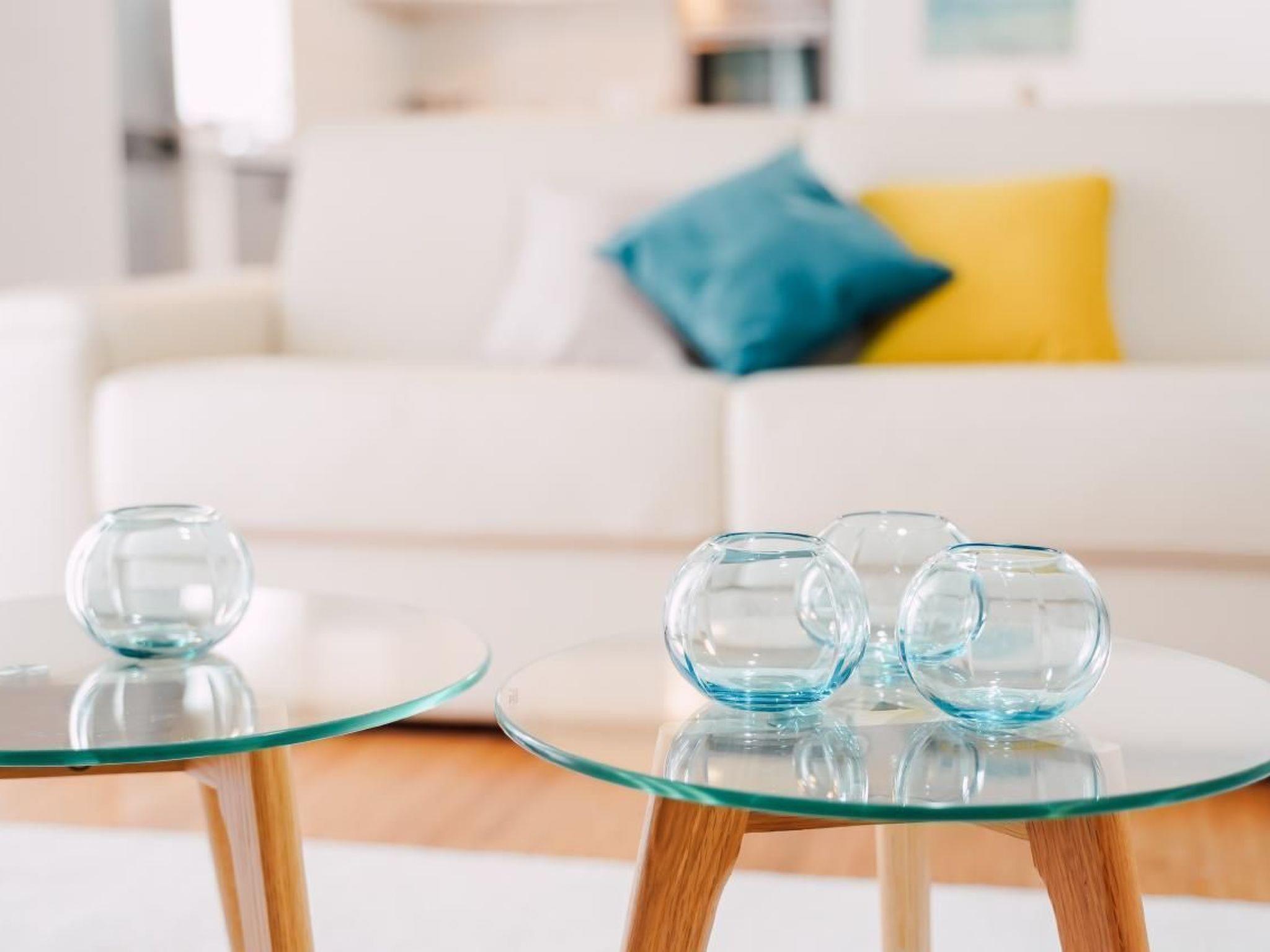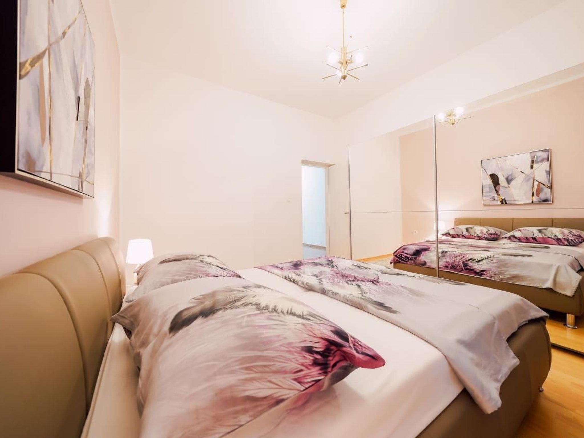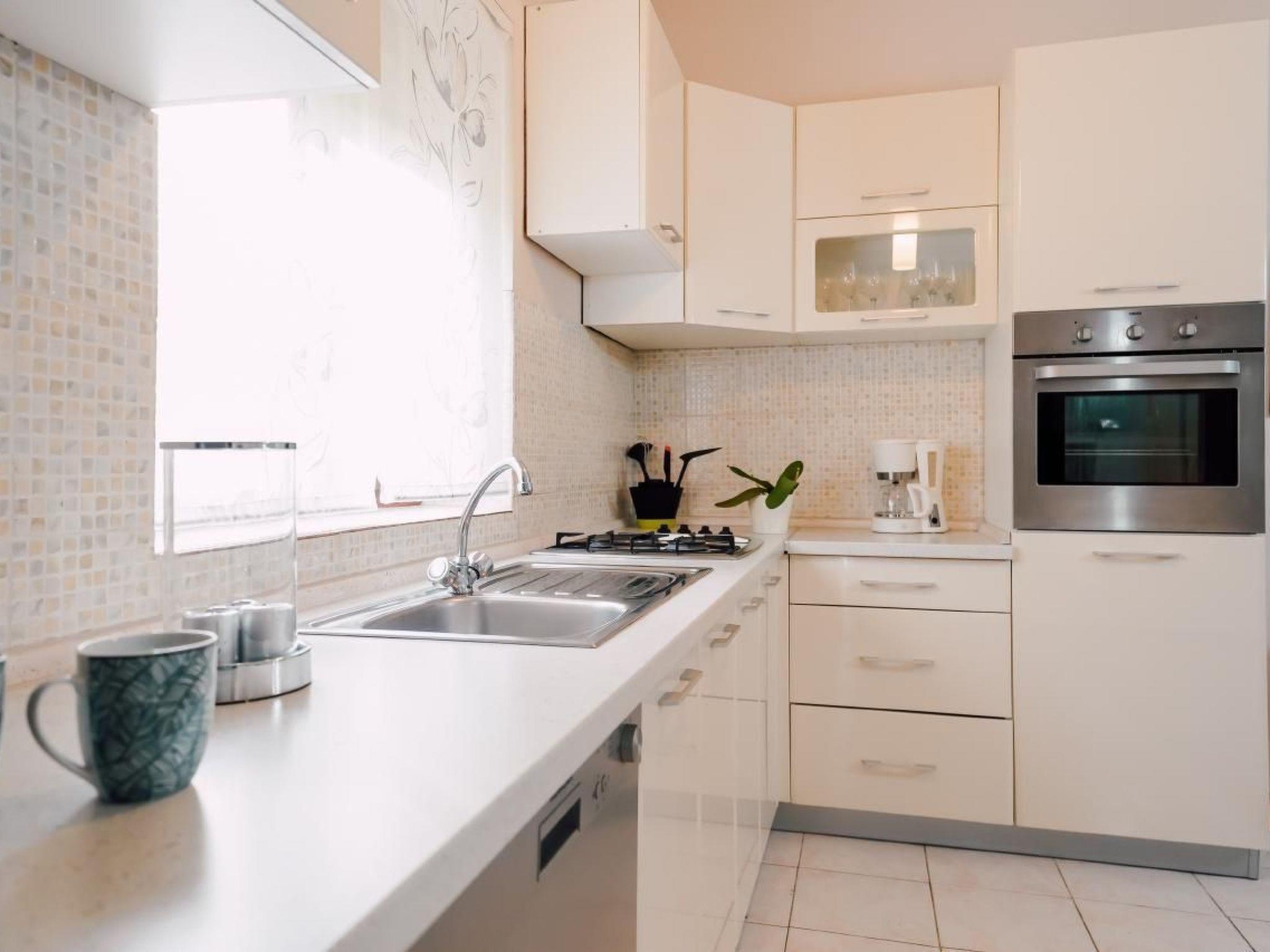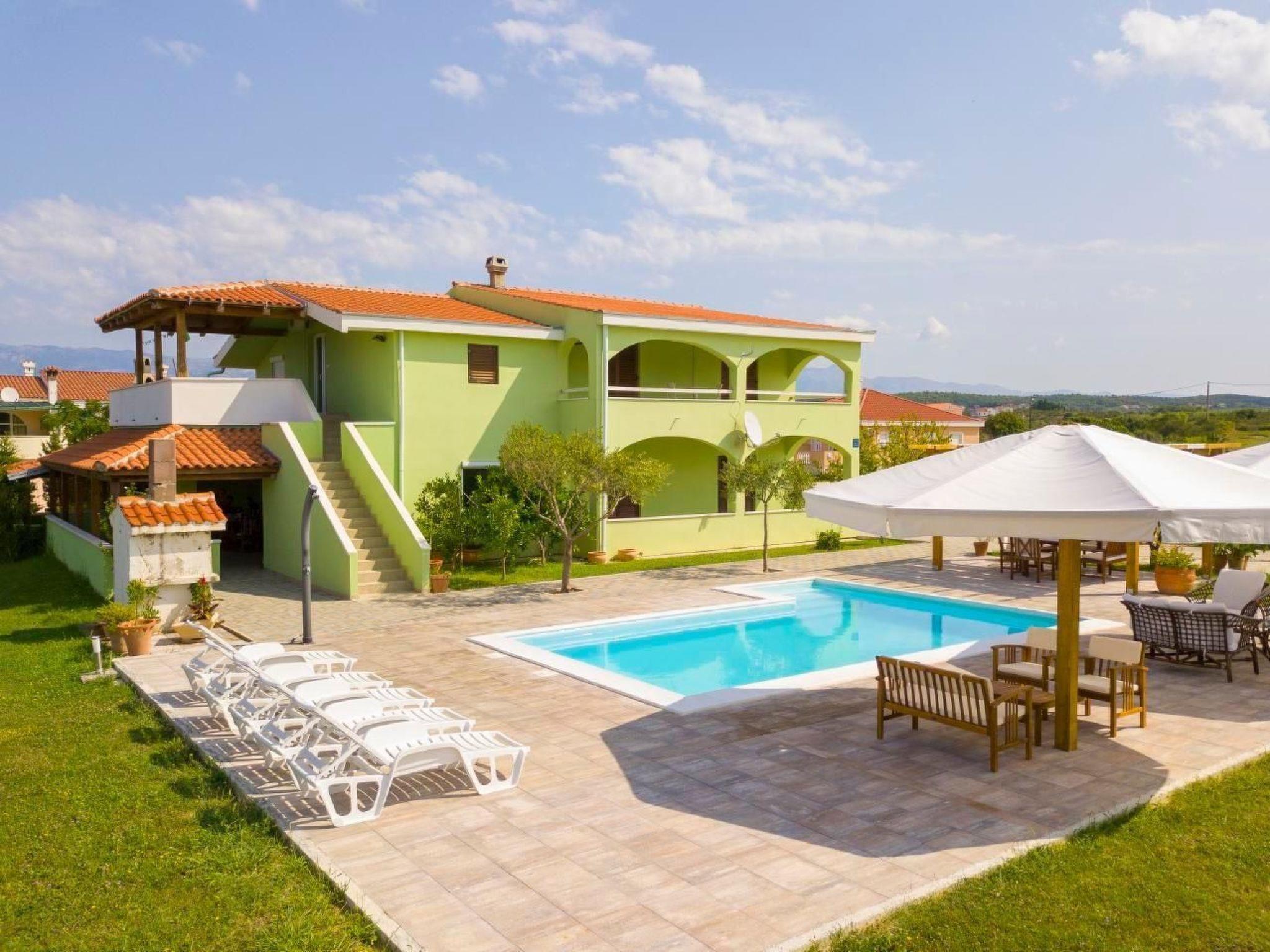 Apartment has three bedrooms; three bedrooms with double bed (160x2) each, and sofa in the living room, 2 bathrooms (both with showers), kitchen fully equipped with kitchen hood, dishwasher, oven, kettle, coffee machine, microwave, fridge with freezer and everything you need. Apartment is situated on the ground floor and it actually takes whole ground floor, it has big terrace (60 sqm) with an amazing sea view. Apartment has its own grill, too. Pool (33 sqm), separated Whirpool (up to 5 persons) and sunbathing place (with loungers and parasols) are shared with one more apartment.
